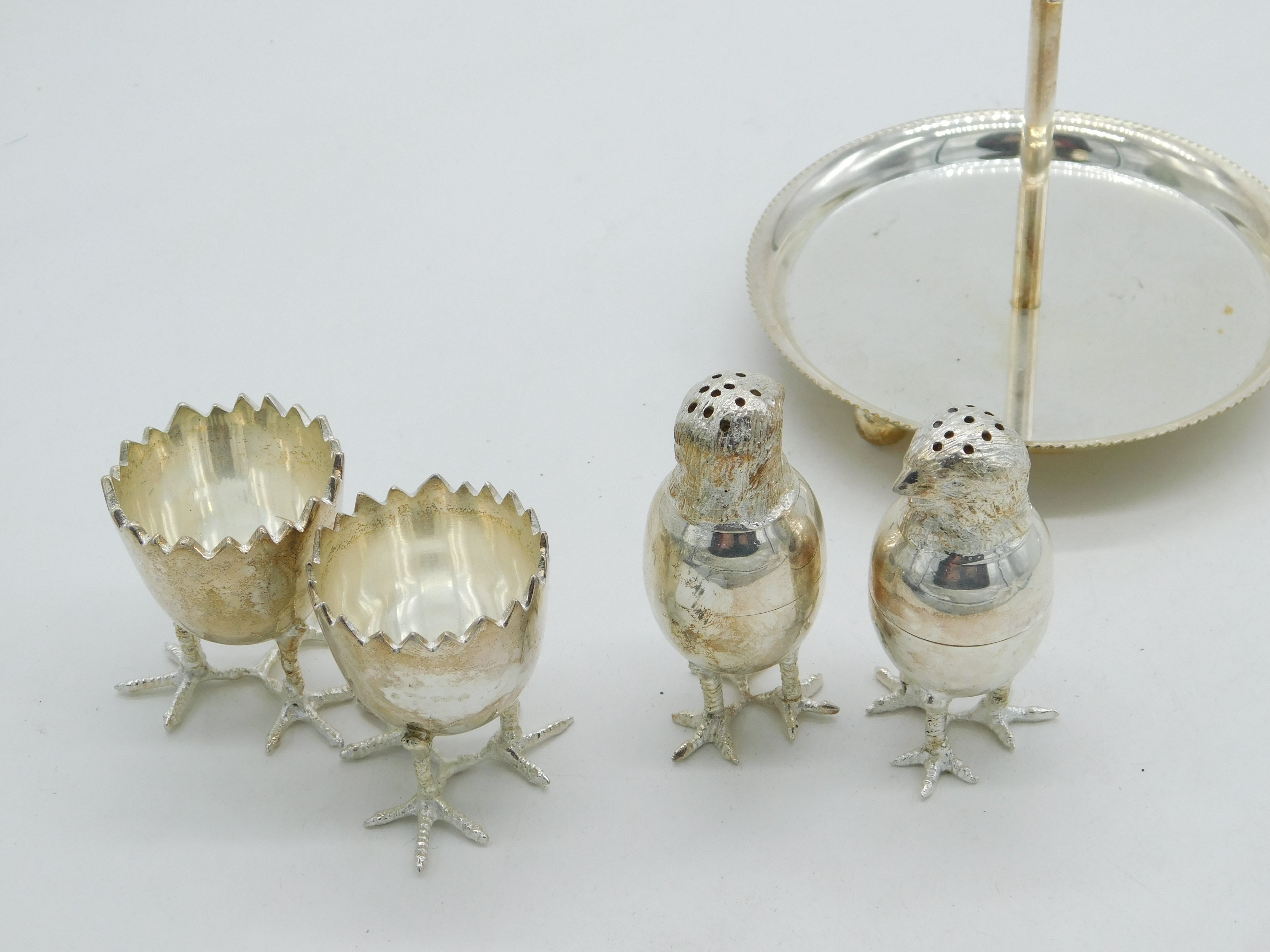 Silver Plated Novelty Boiled Egg Breakfast Set Antique c1930 Art Deco