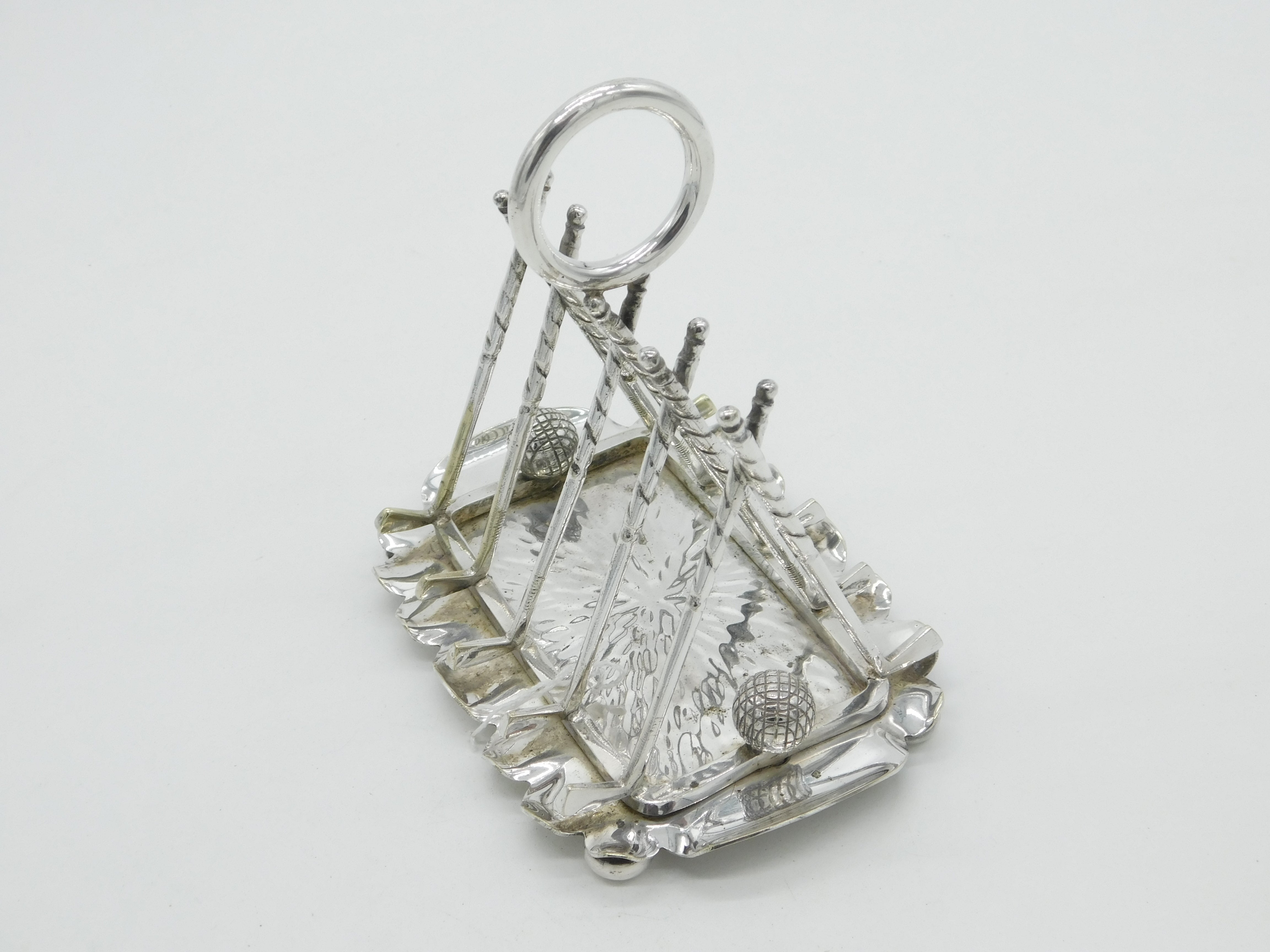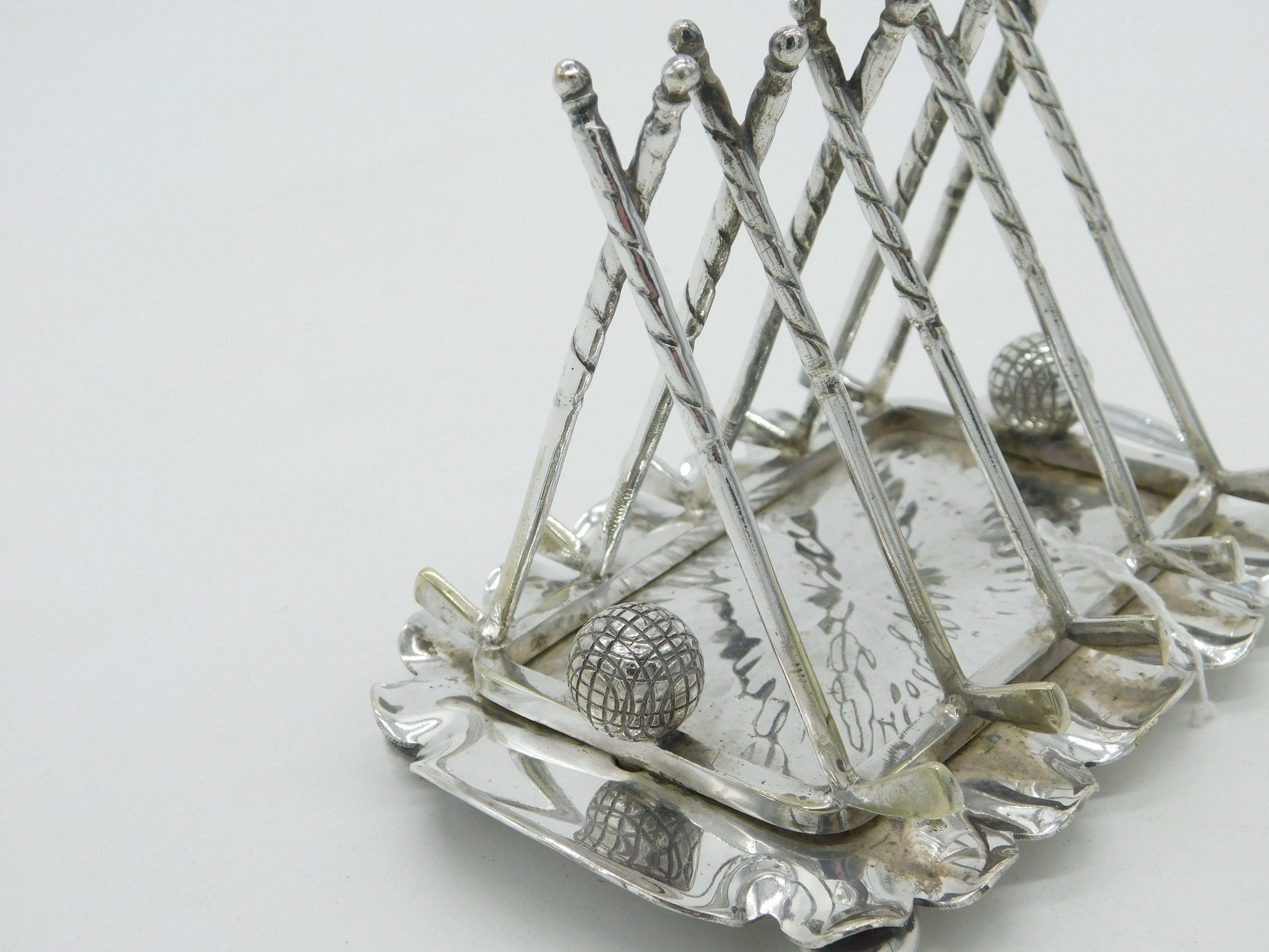 Silver Plated Novelty Golf Clubs & Balls Four Bar Toast Rack Antique c1920 Deco