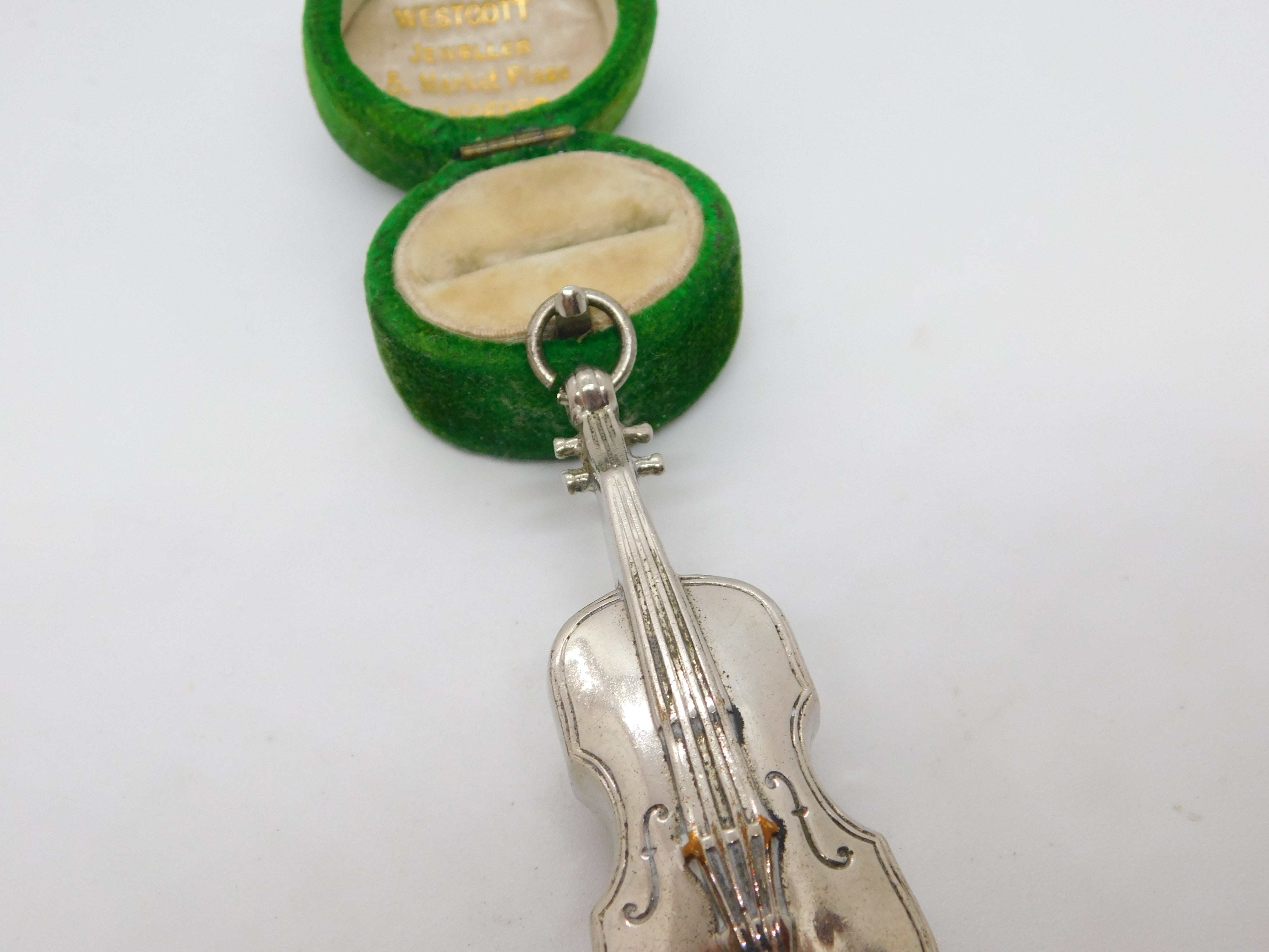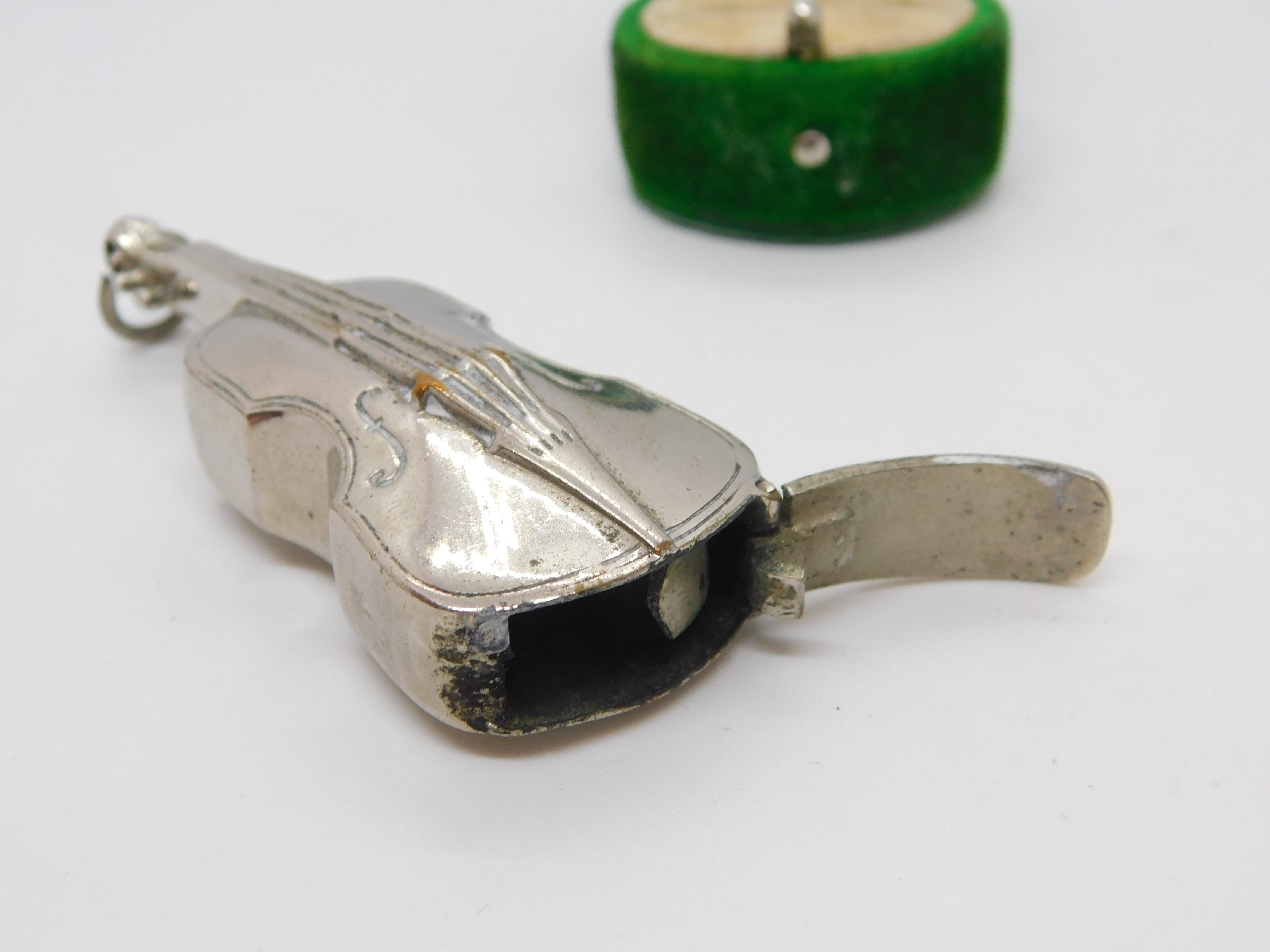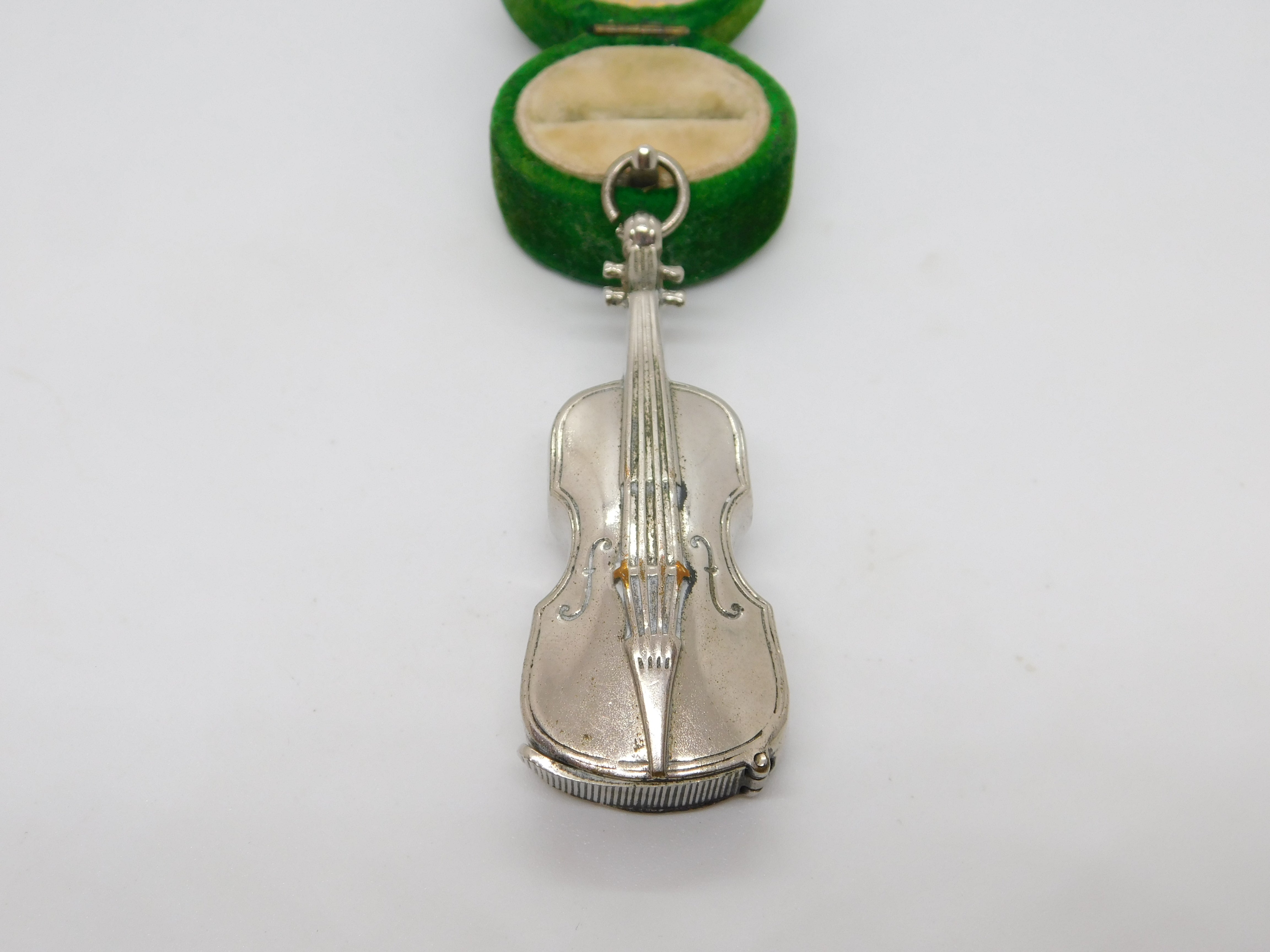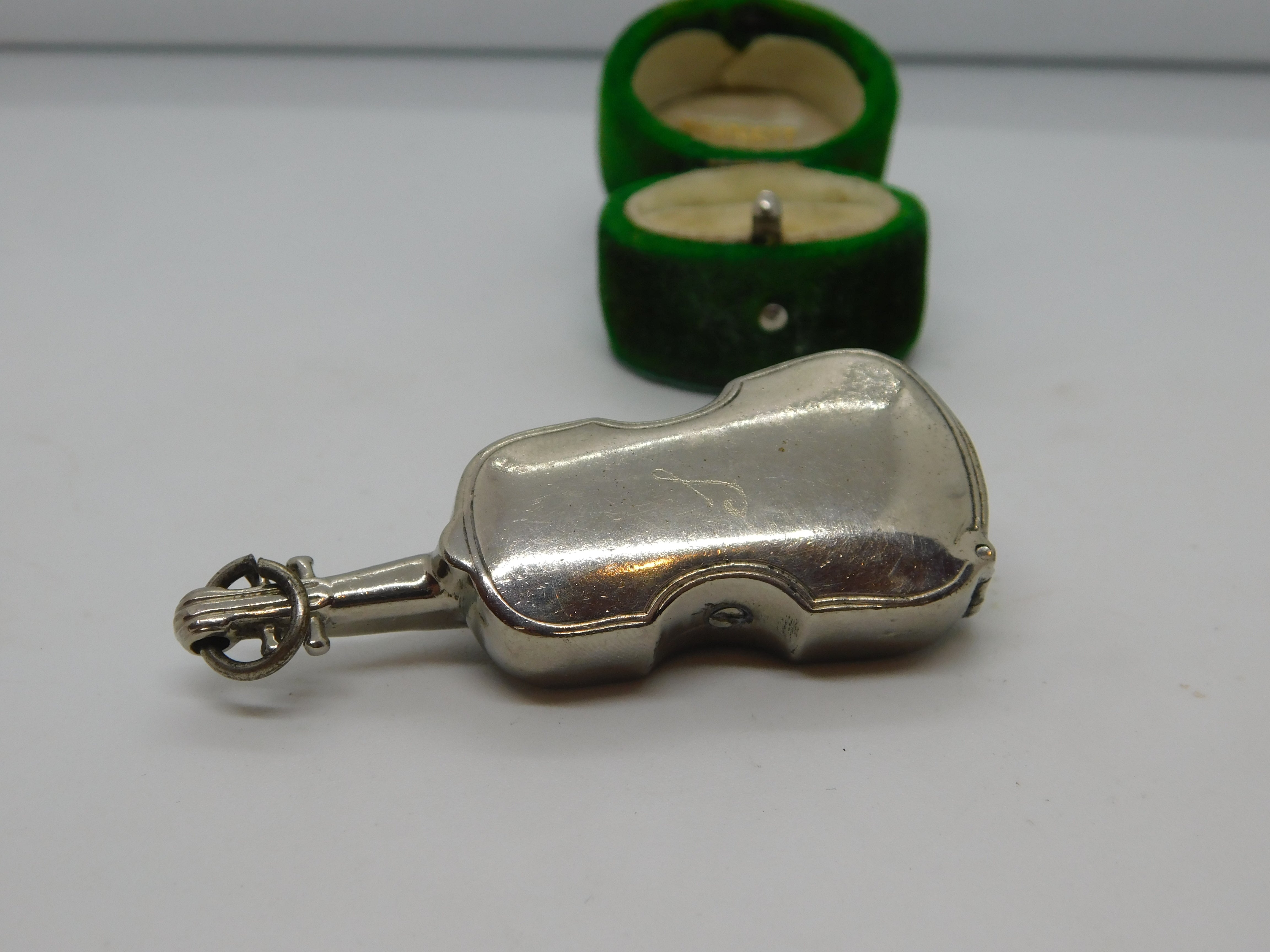 Silver Plated Novelty Violin Musical Vesta Case Antique c1920 Art Deco