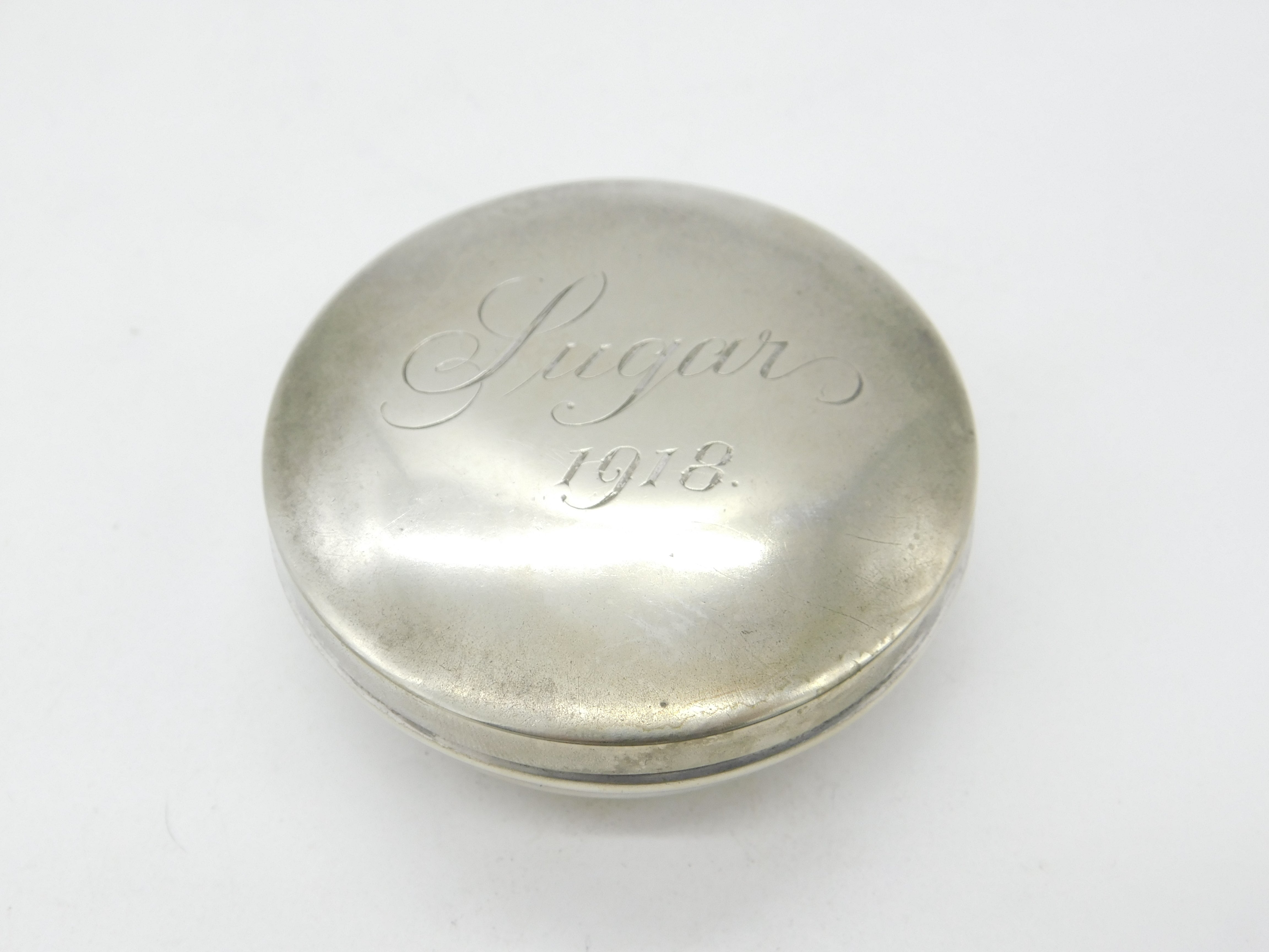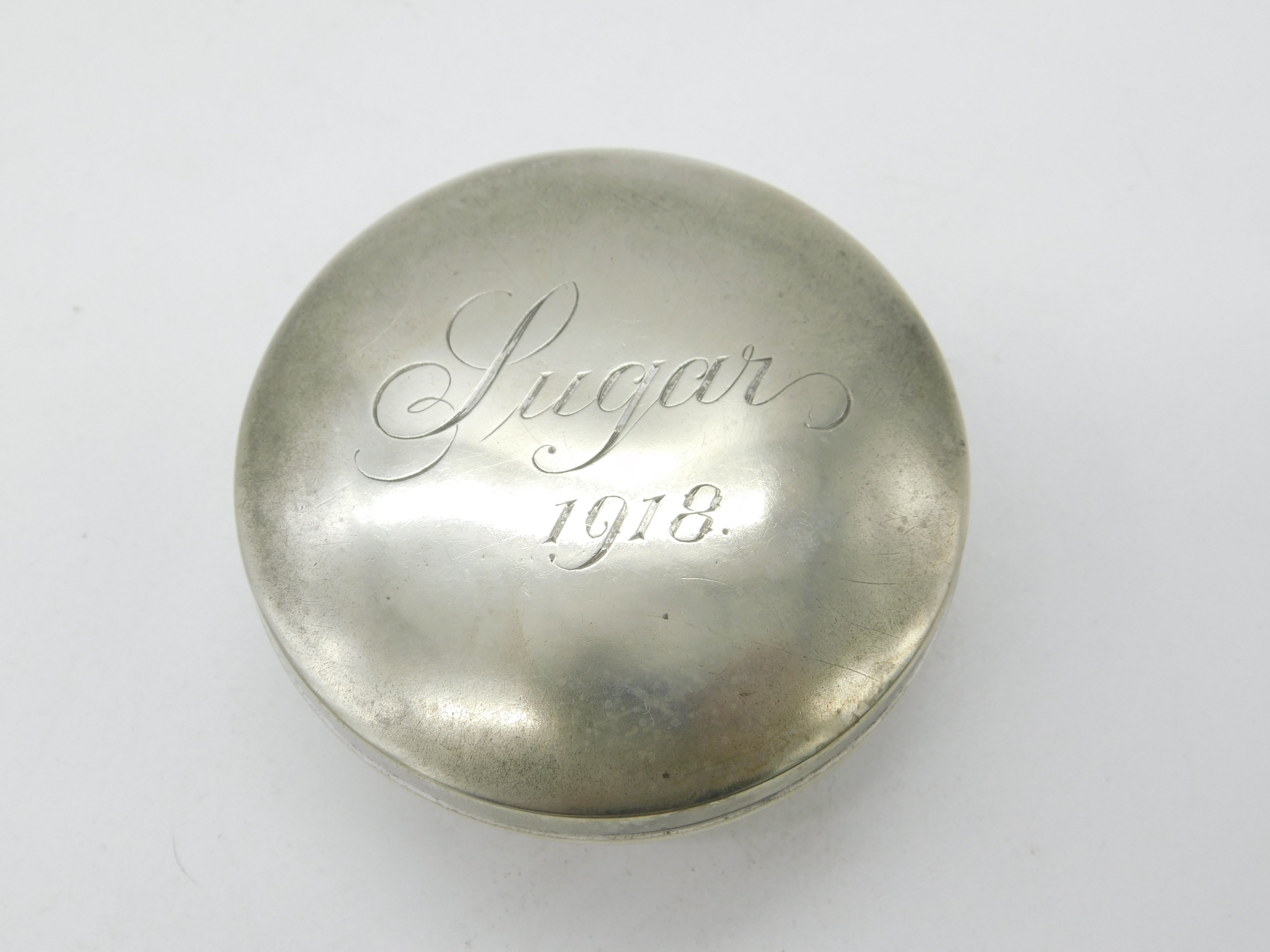 Silver Plated 'Sugar, 1918' Snuff or Tobacco Box Antique Art Deco EPNS