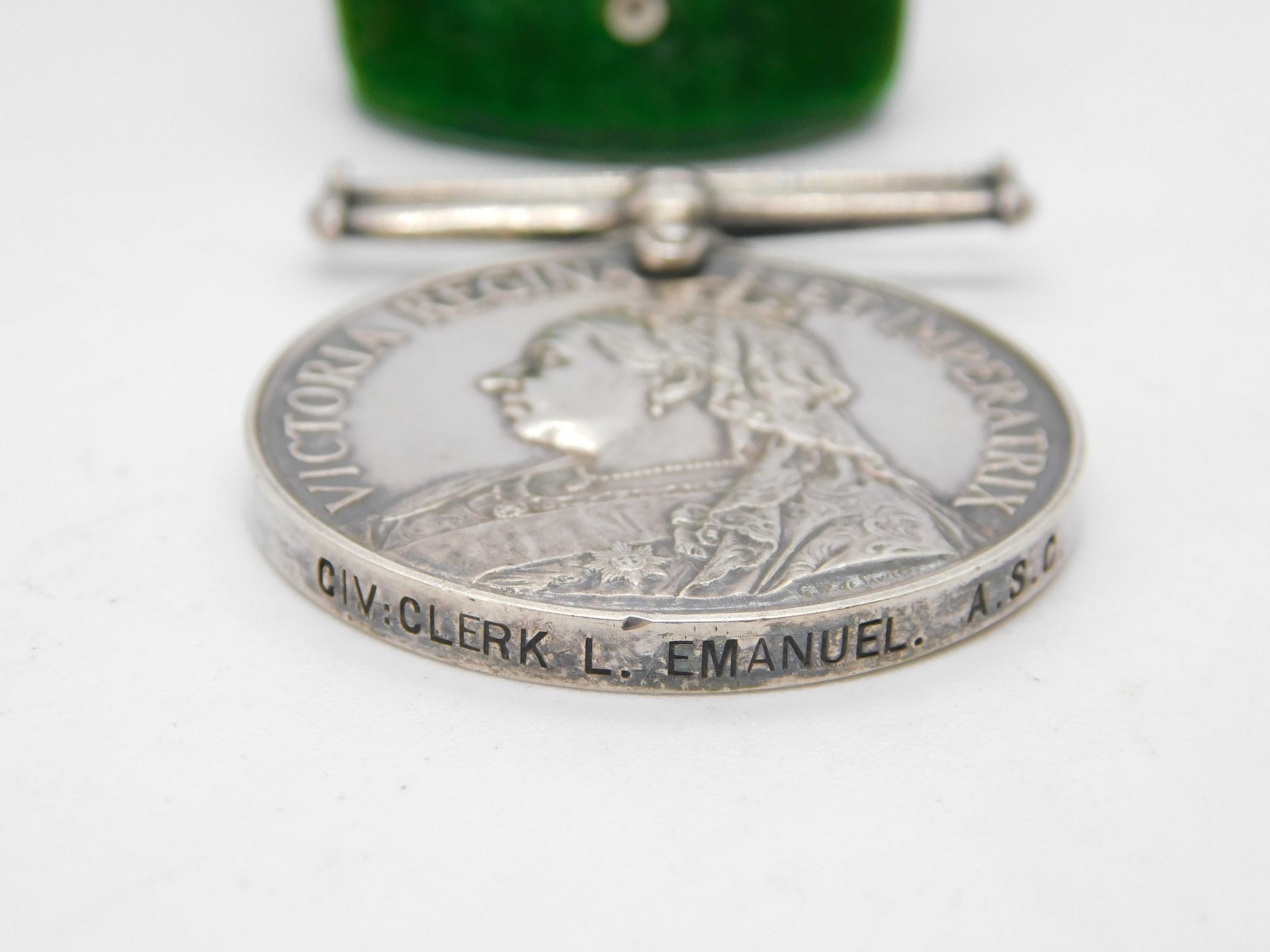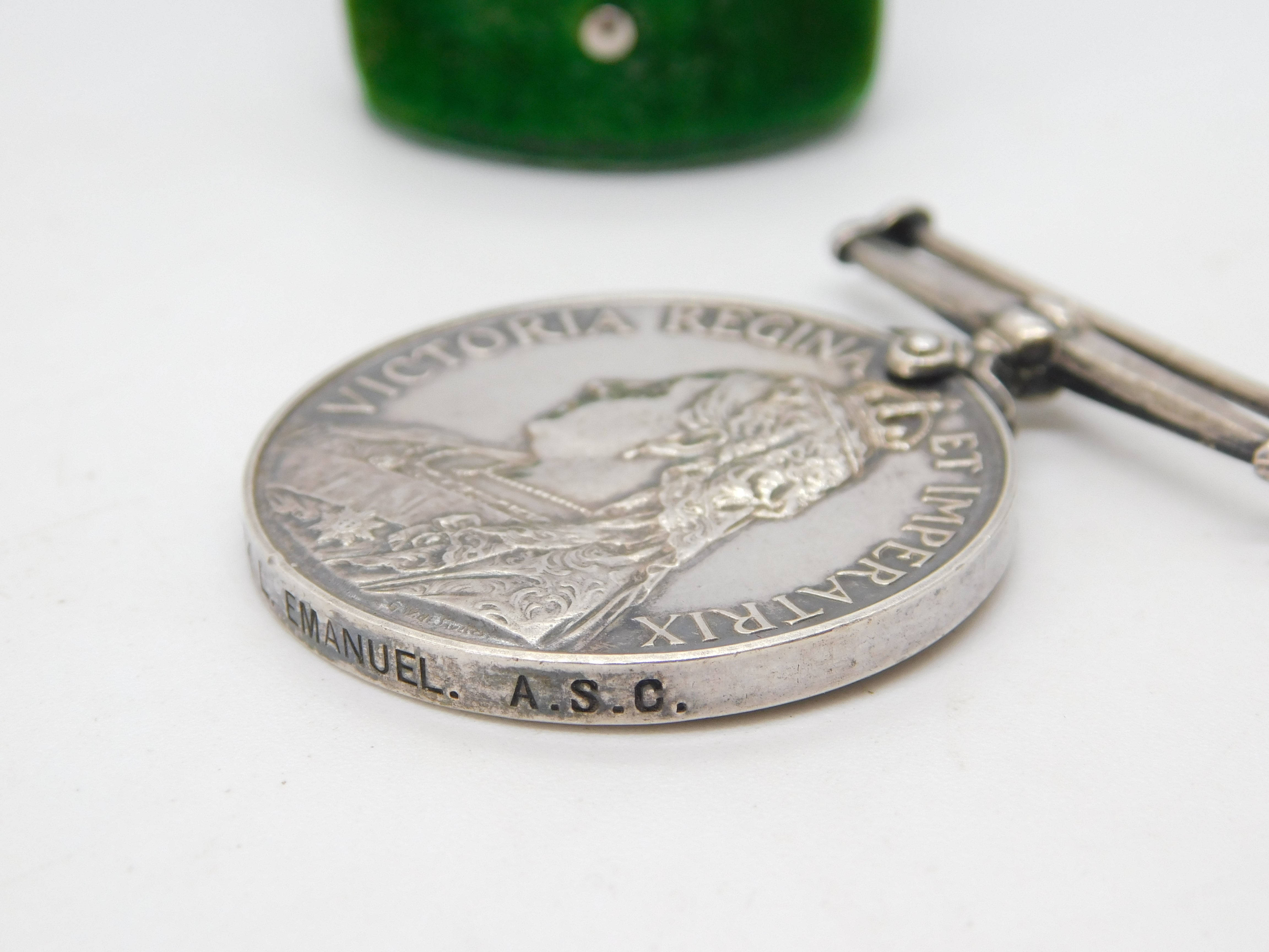 Silver Queen's South Africa Boer War Service Medal Clerk L Emanuel A.S.C c1900