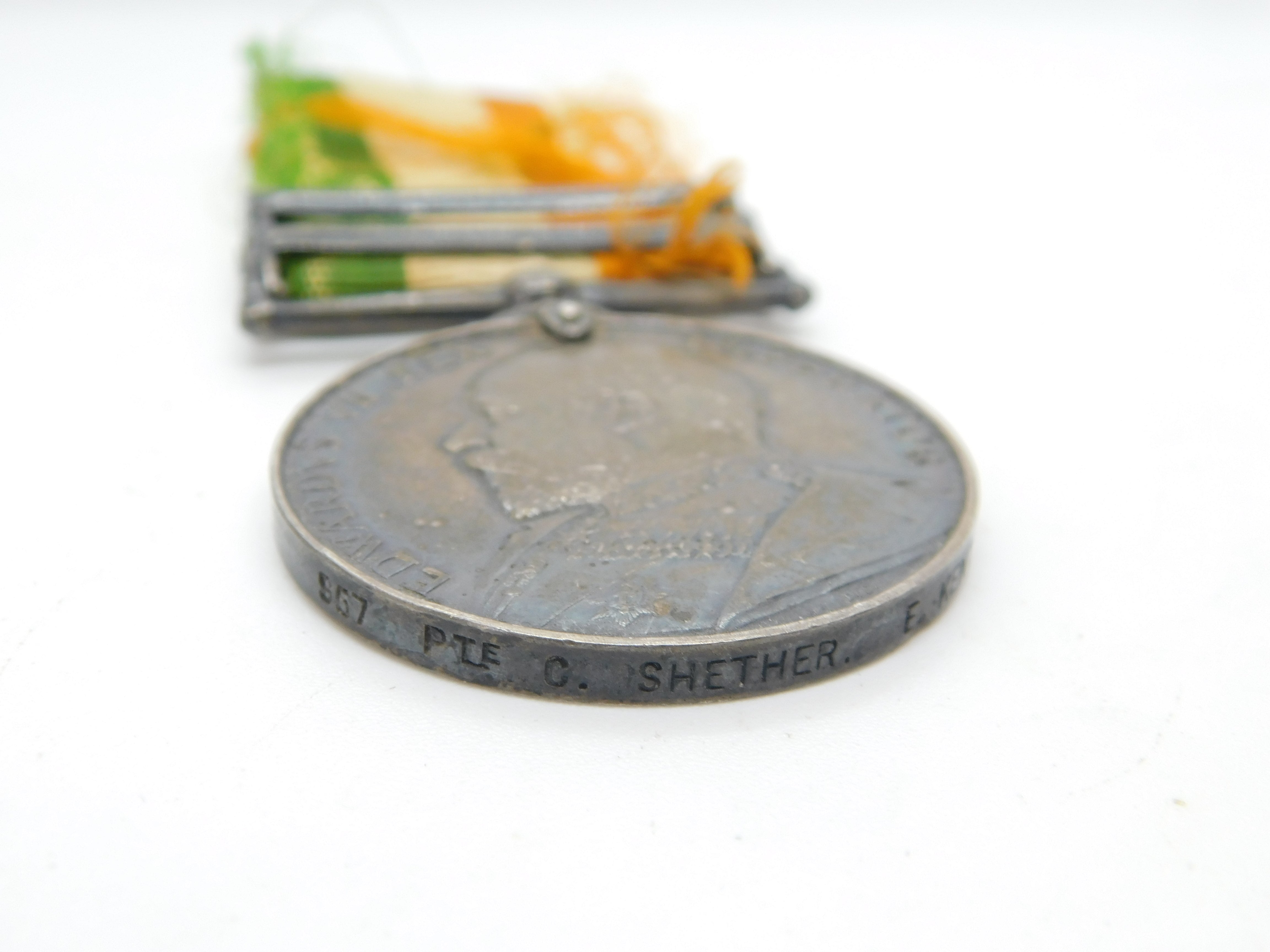 Silver Two Bar King's South Africa Medal Boer War PTE C Shether Antique c1901