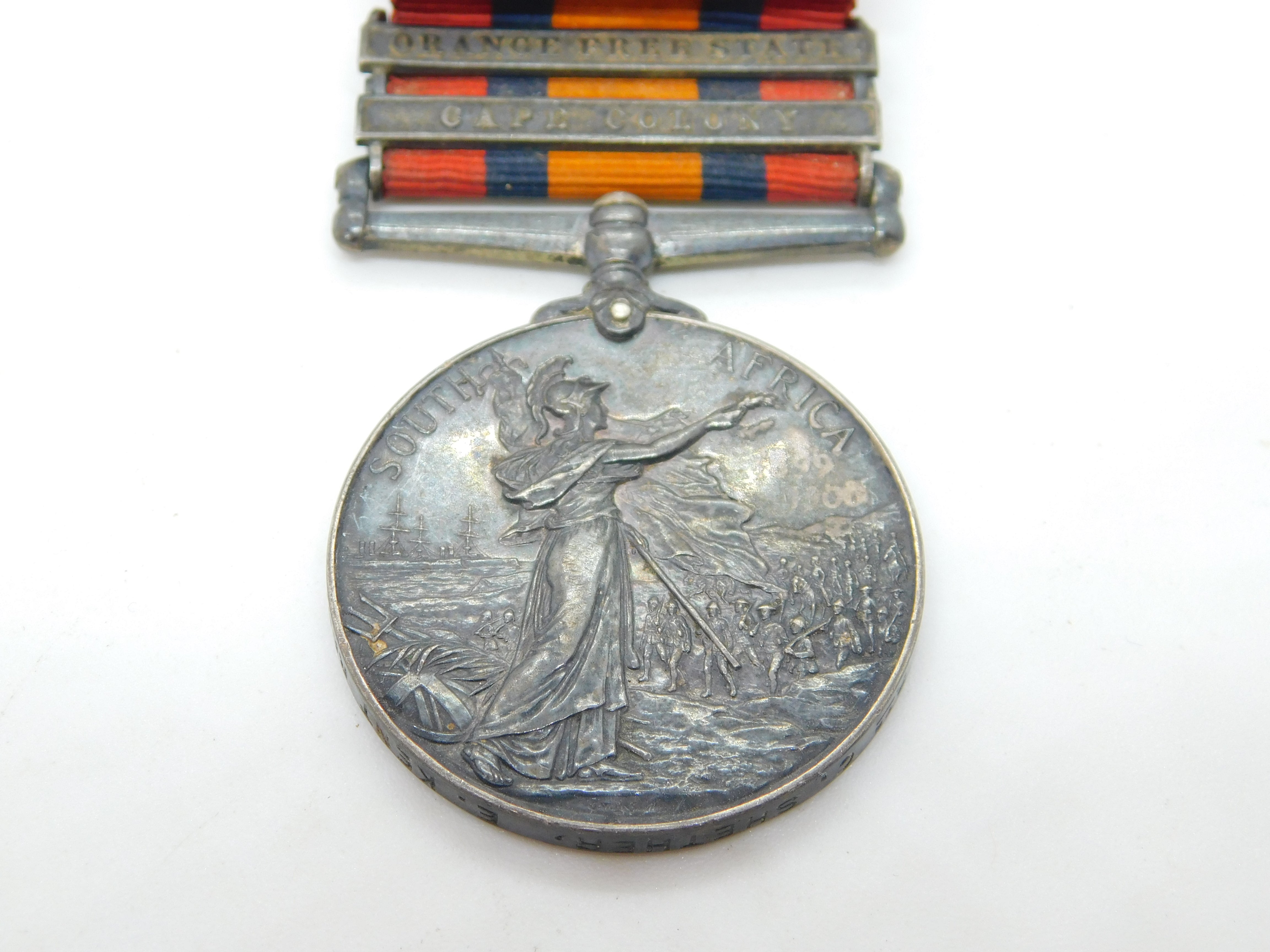 Details: A fantastic and wonderfully designed antique Victorian silver Queens South Africa Boer War medal issued to PTE C Shether of the East Kent Regiment with two bars - Cape Colony & Orange Free State c1900. This is a wonderful item that would make a perfect gift or addition to any collection. The BOX pictured is for PRESENTATION ONLY and is NOT included in the listings but used to frame the pictures unless specifically stated otherwise.