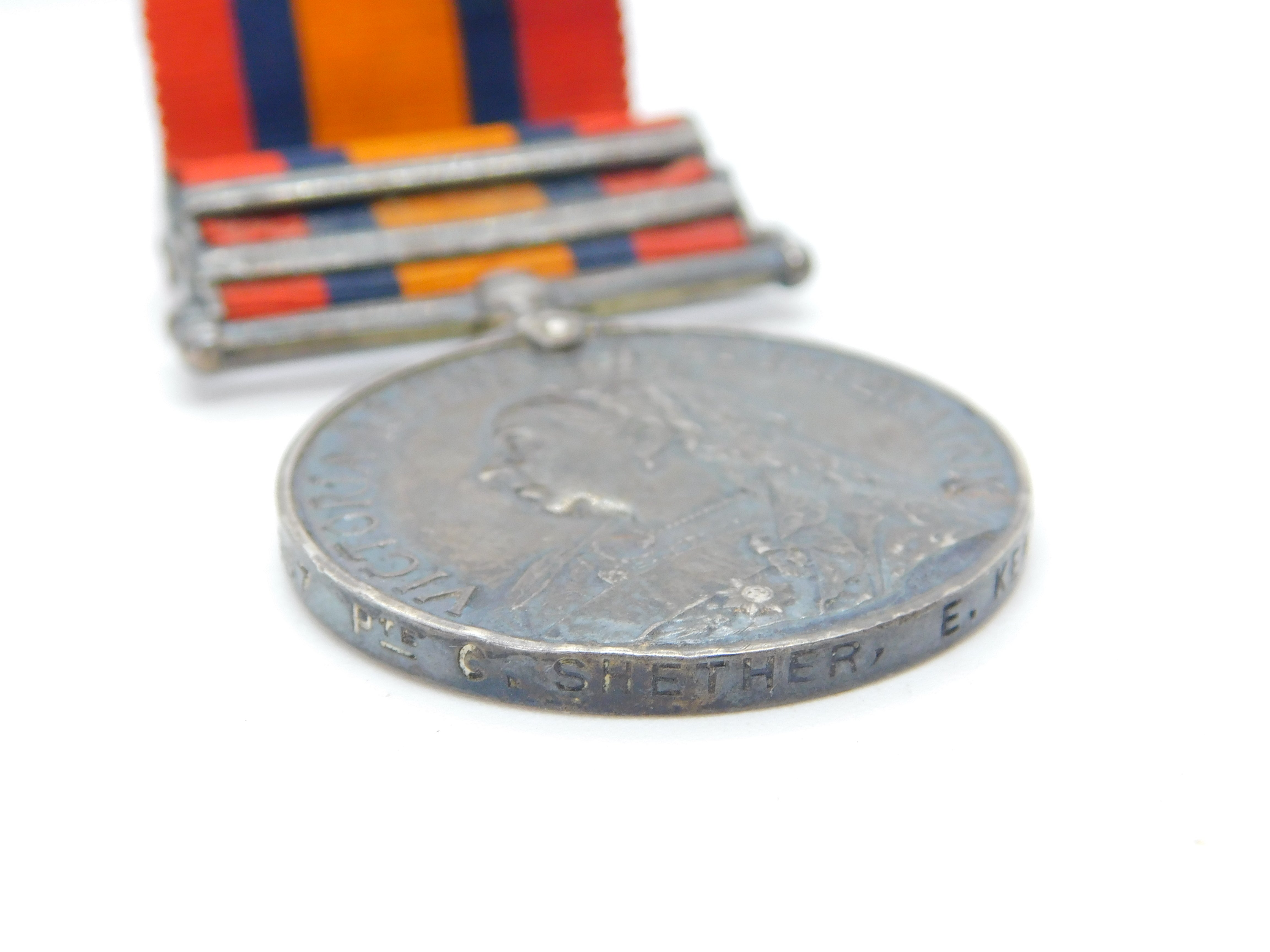 Silver Two Bar Queen's South Africa Boer War Medal PTE C Shether Antique 1900