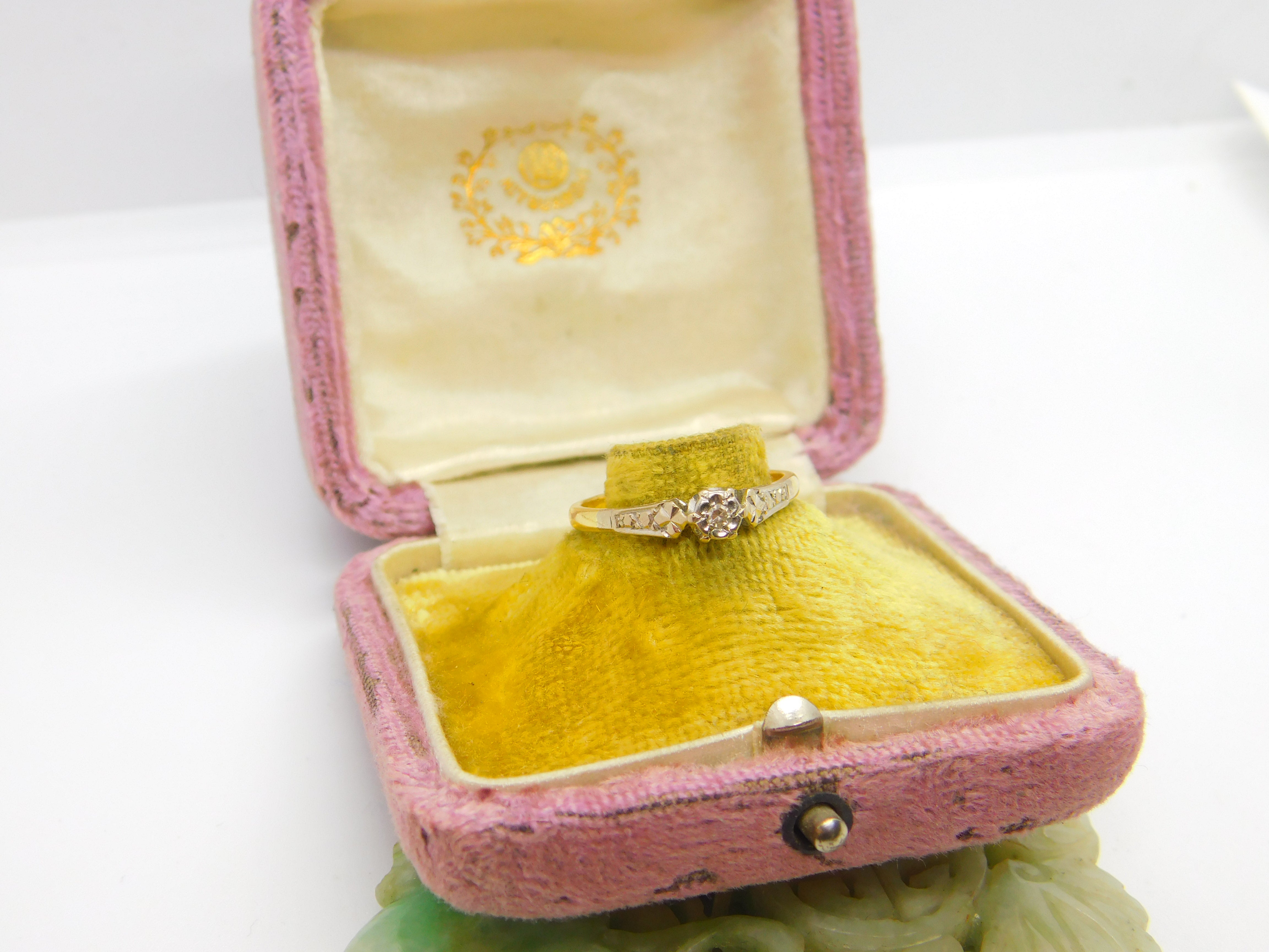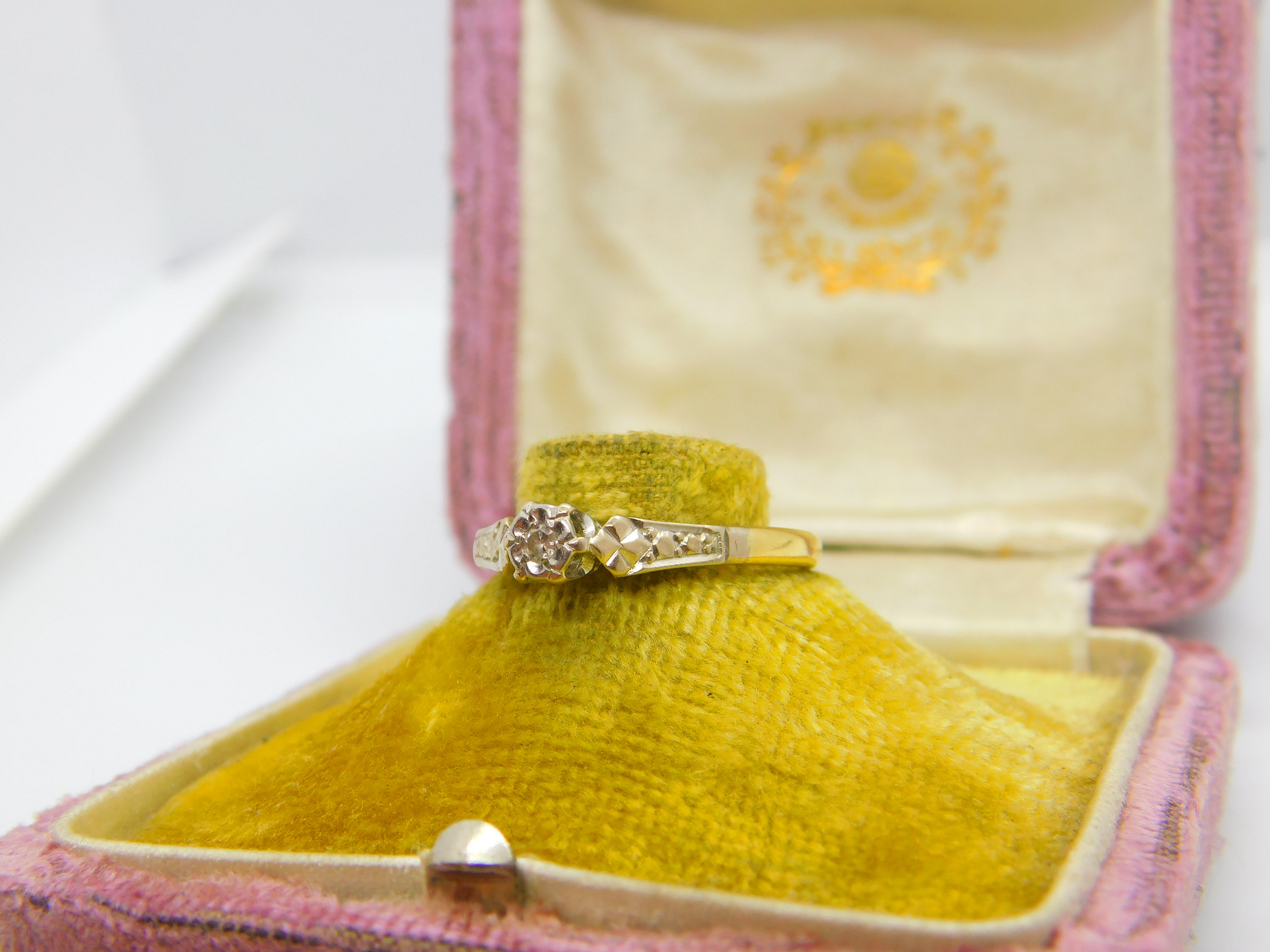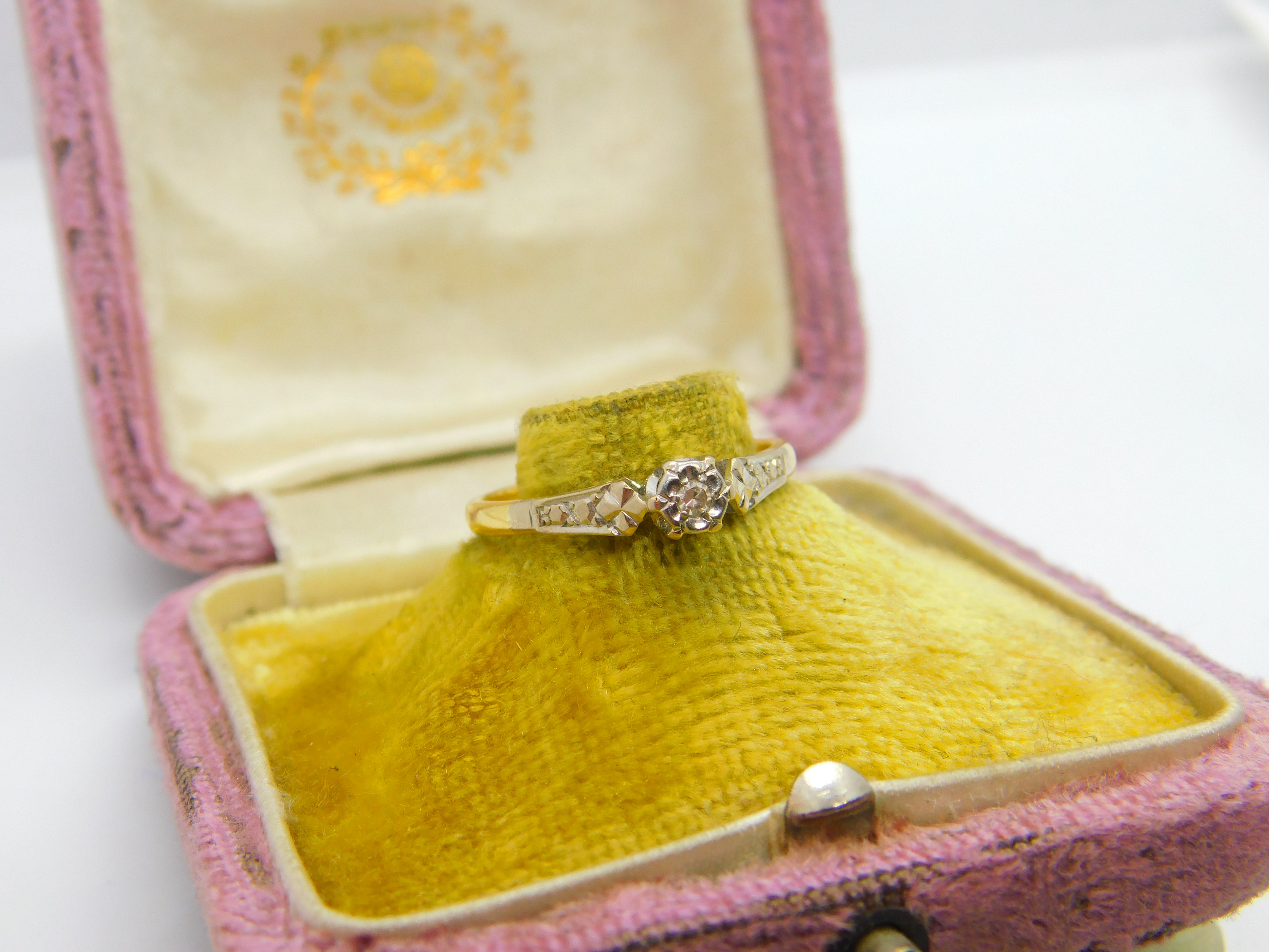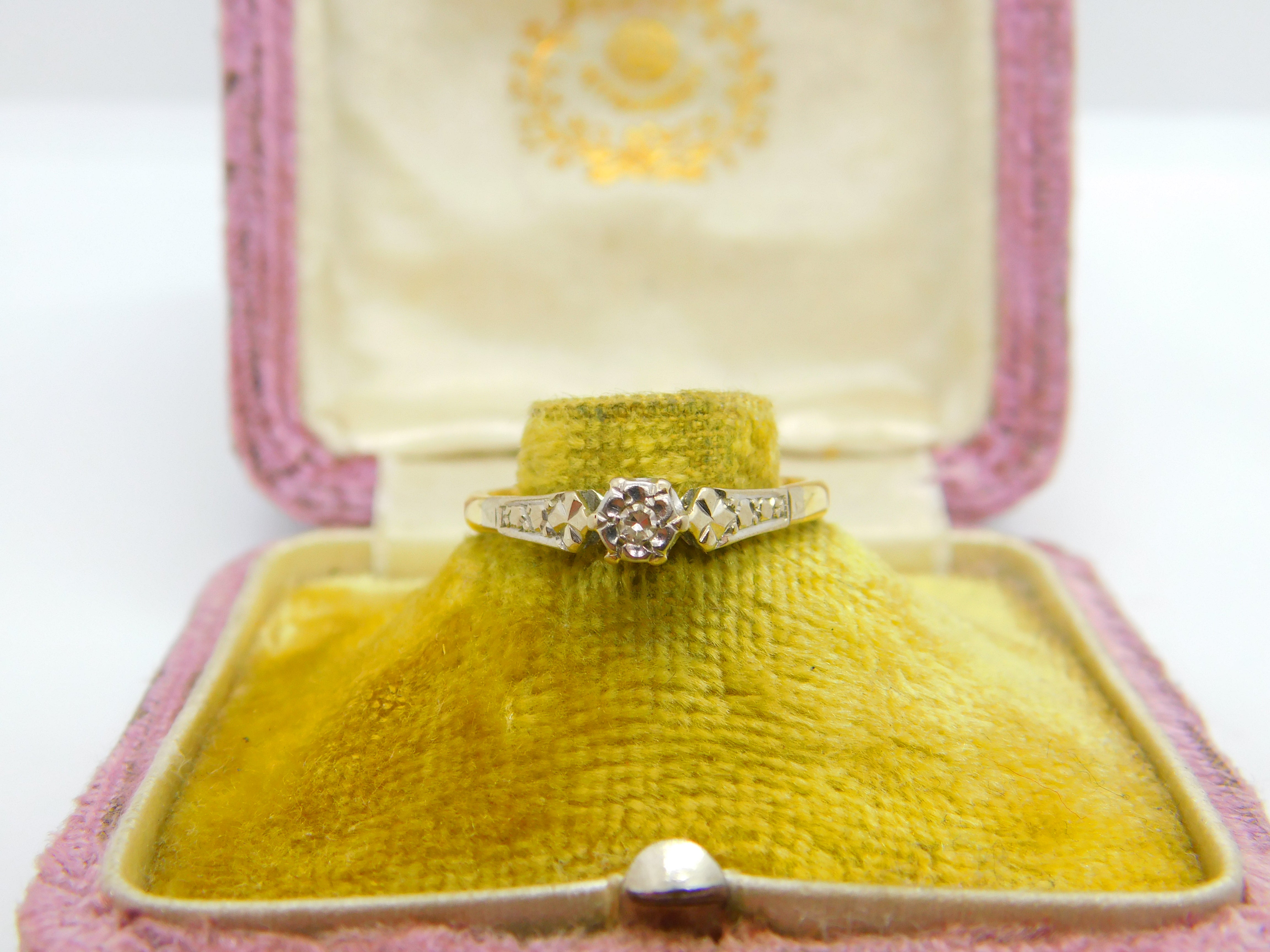 Solitaire Diamond 18ct Yellow Gold and Platinum Ring Antique Victorian c1890