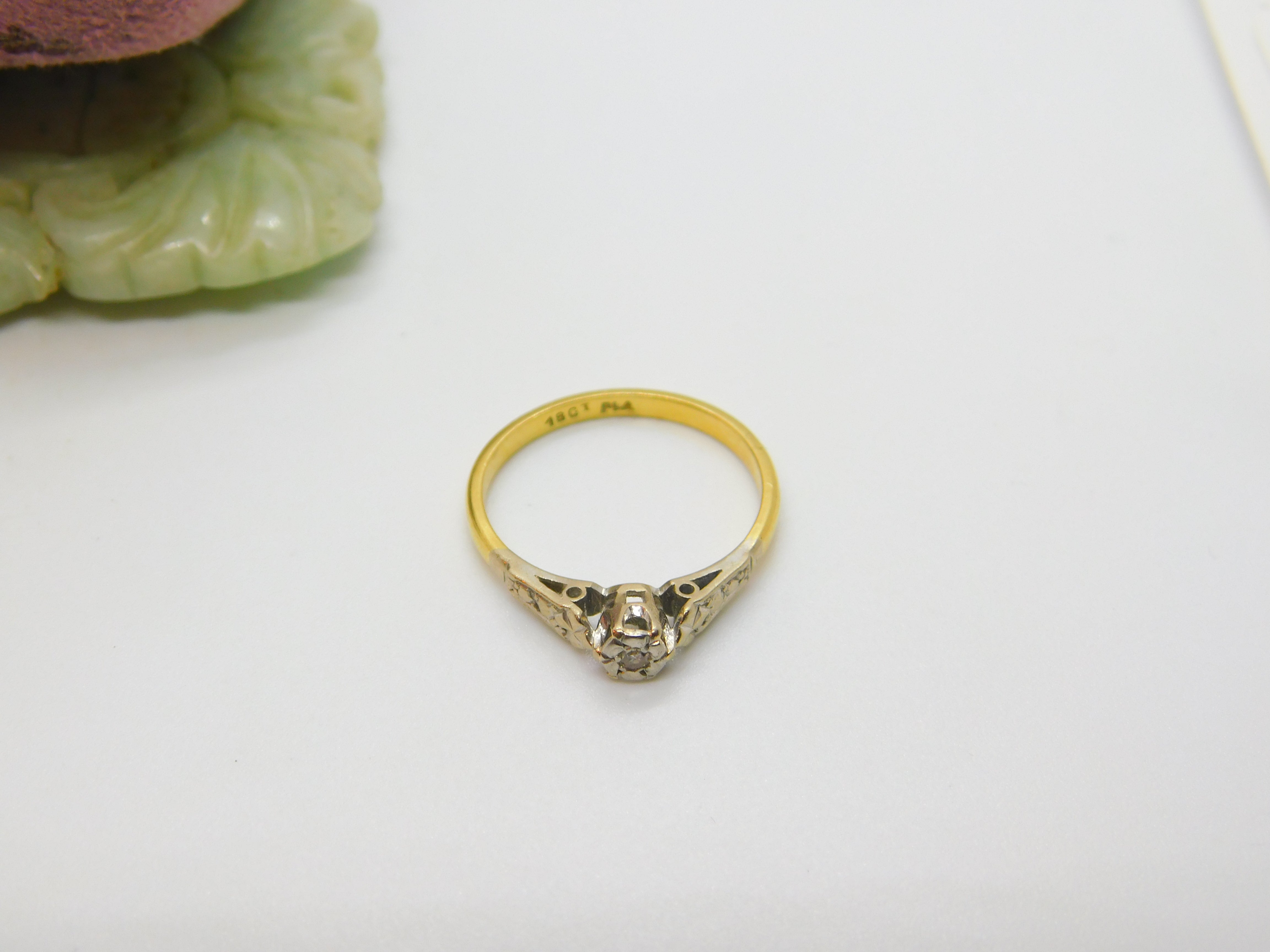 Stunning antique 18ct yellow gold and platinum solitaire diamond ring dating from the late Victorian period. The diamond is approx. 0.2 carats in size, has been tested and is in good order please see the pictures. The gold and platinum are marked to the inside of the band. A wonderful antique solitaire diamond ring.