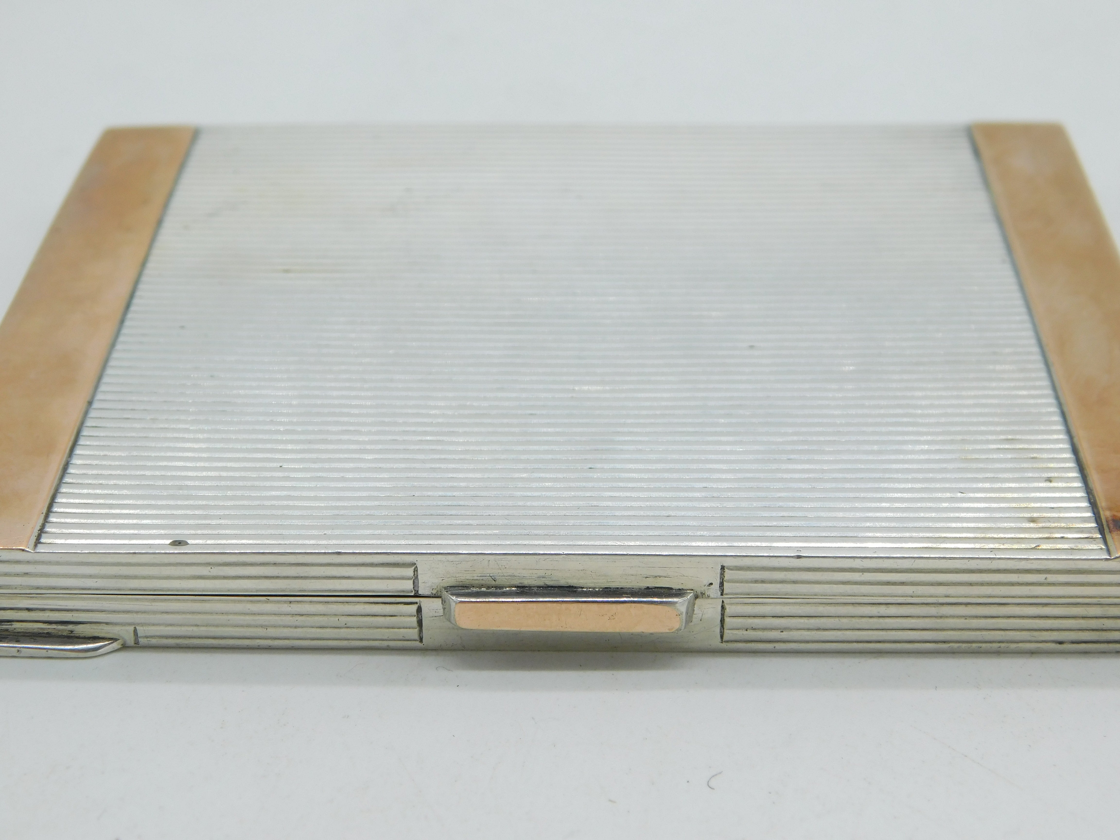 Sterling Silver & 9ct Rose Gold Cigarette Case Antique 1942 London Art Deco