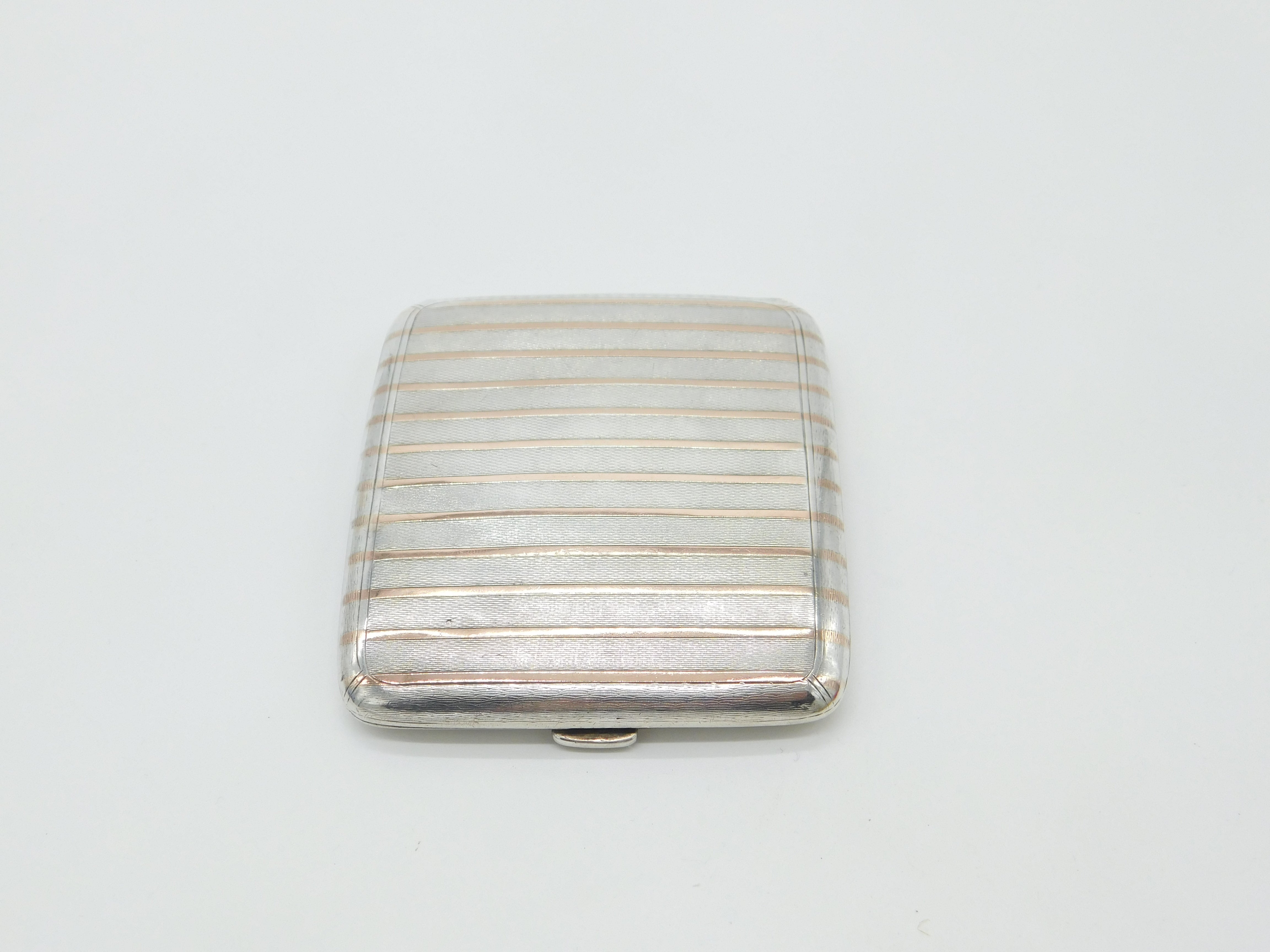 Sterling Silver & 9ct Rose Gold Lined Cigarette Case Antique 1924 Birmingham