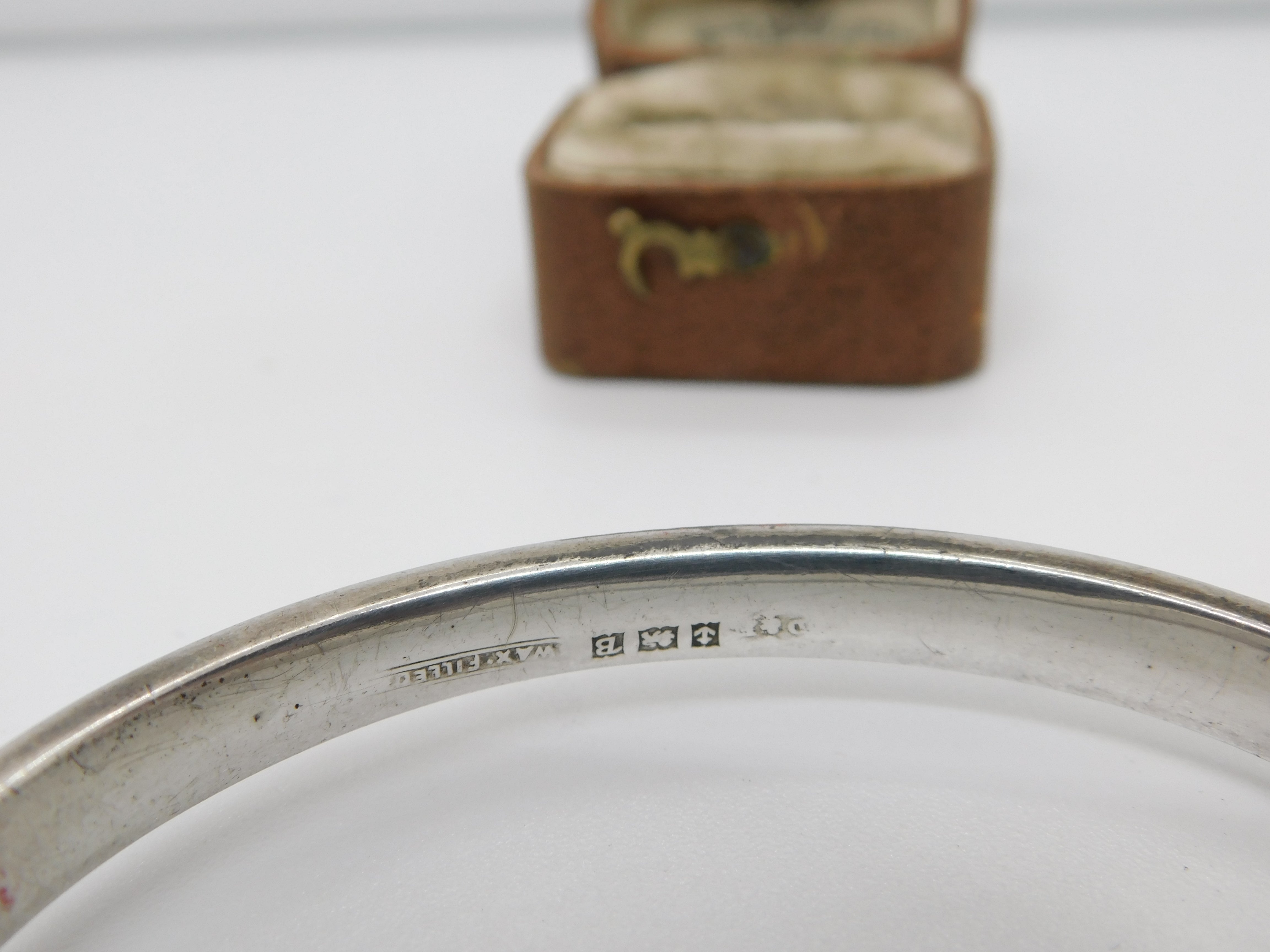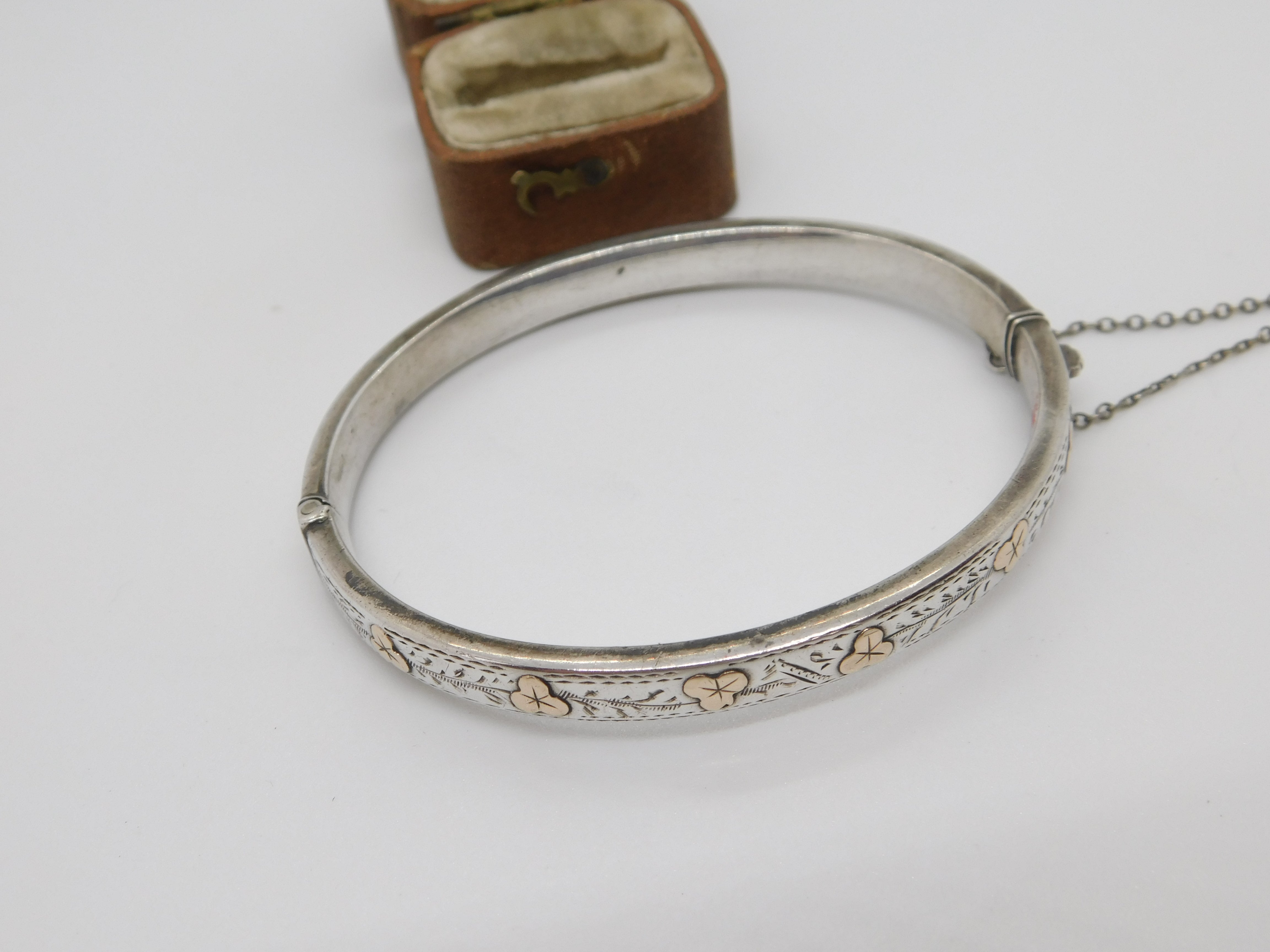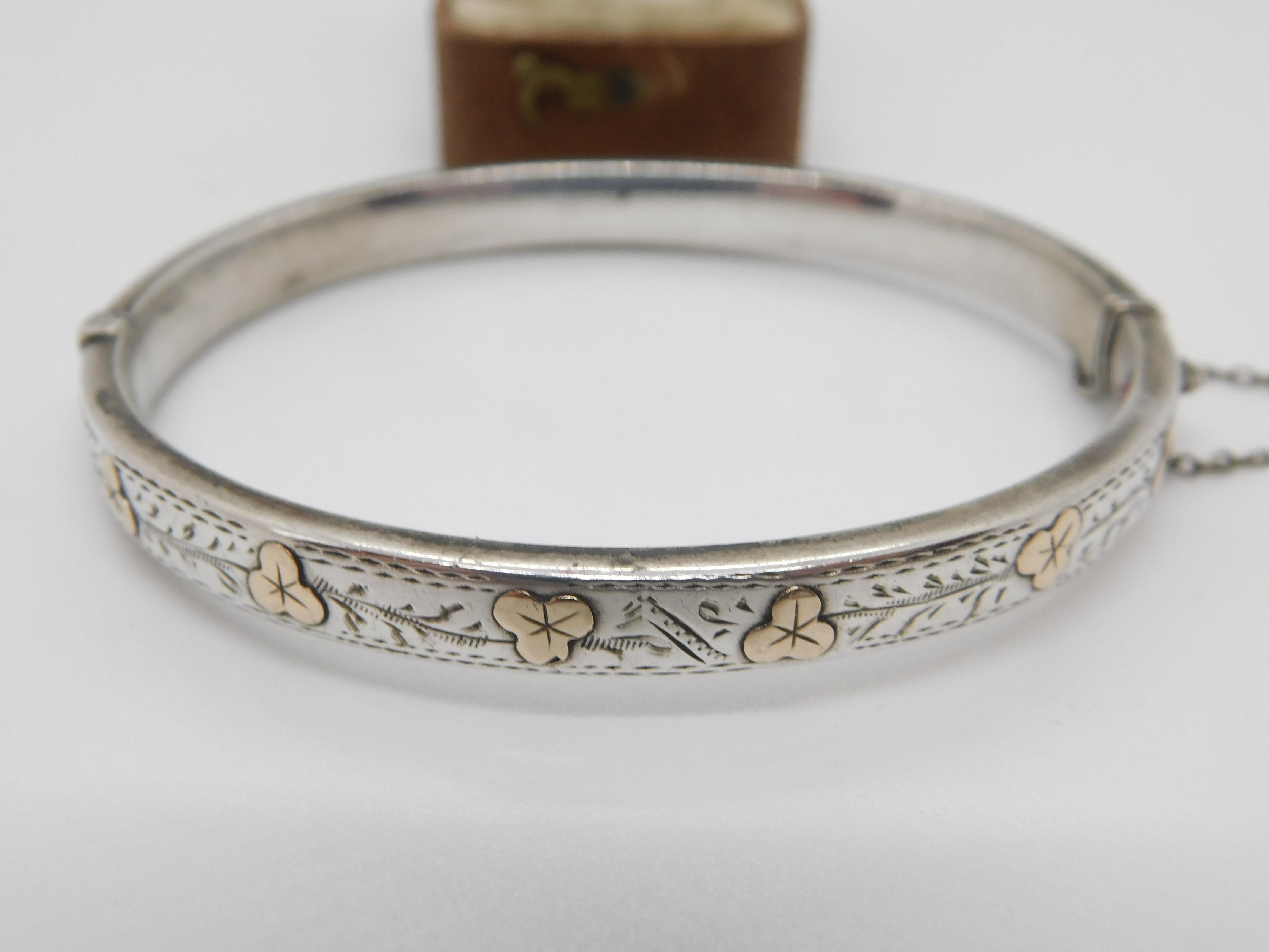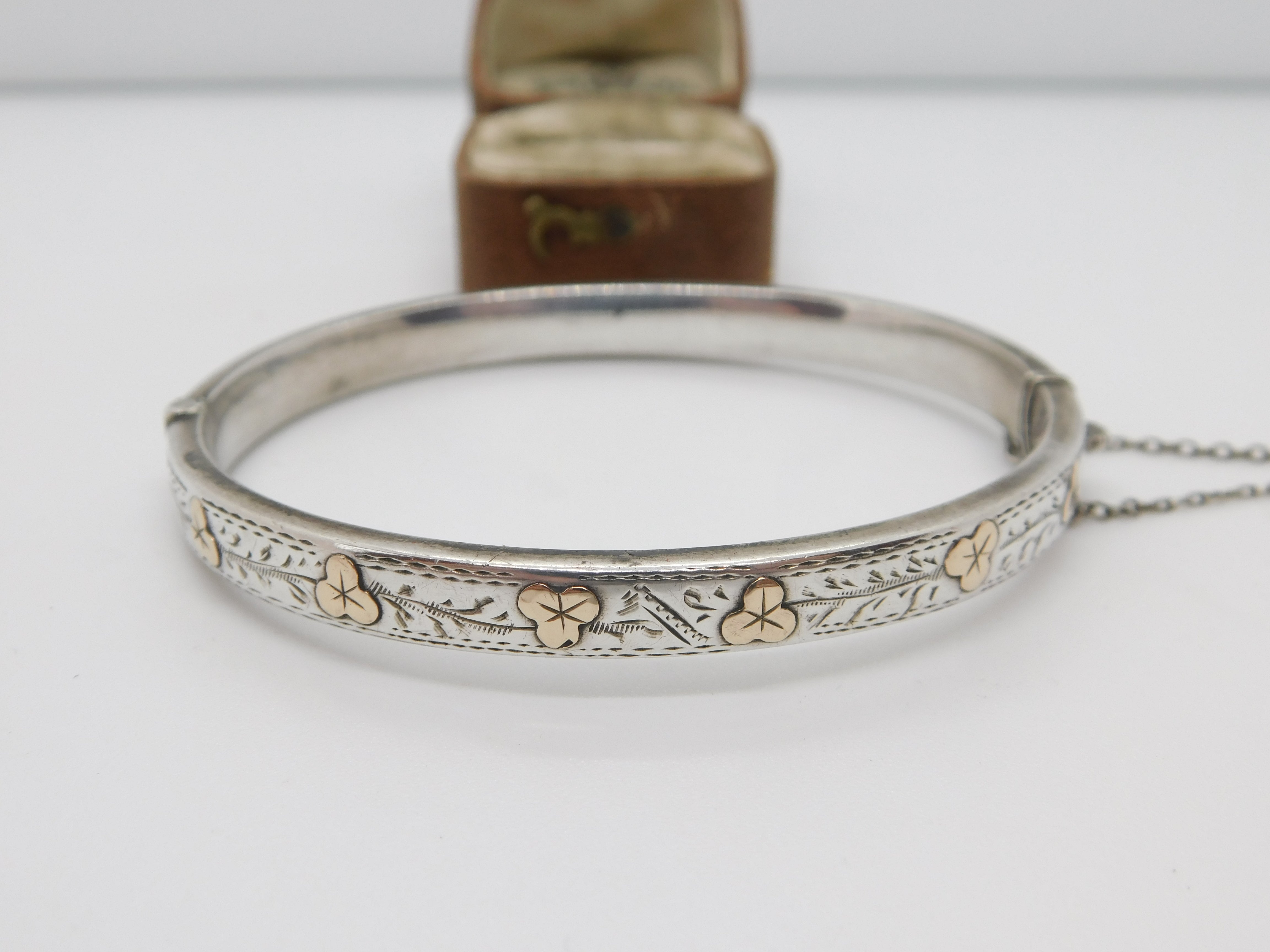 Sterling Silver 9ct Rose Gold Shamrock Cuff Bangle Bracelet 1951 Birmingham