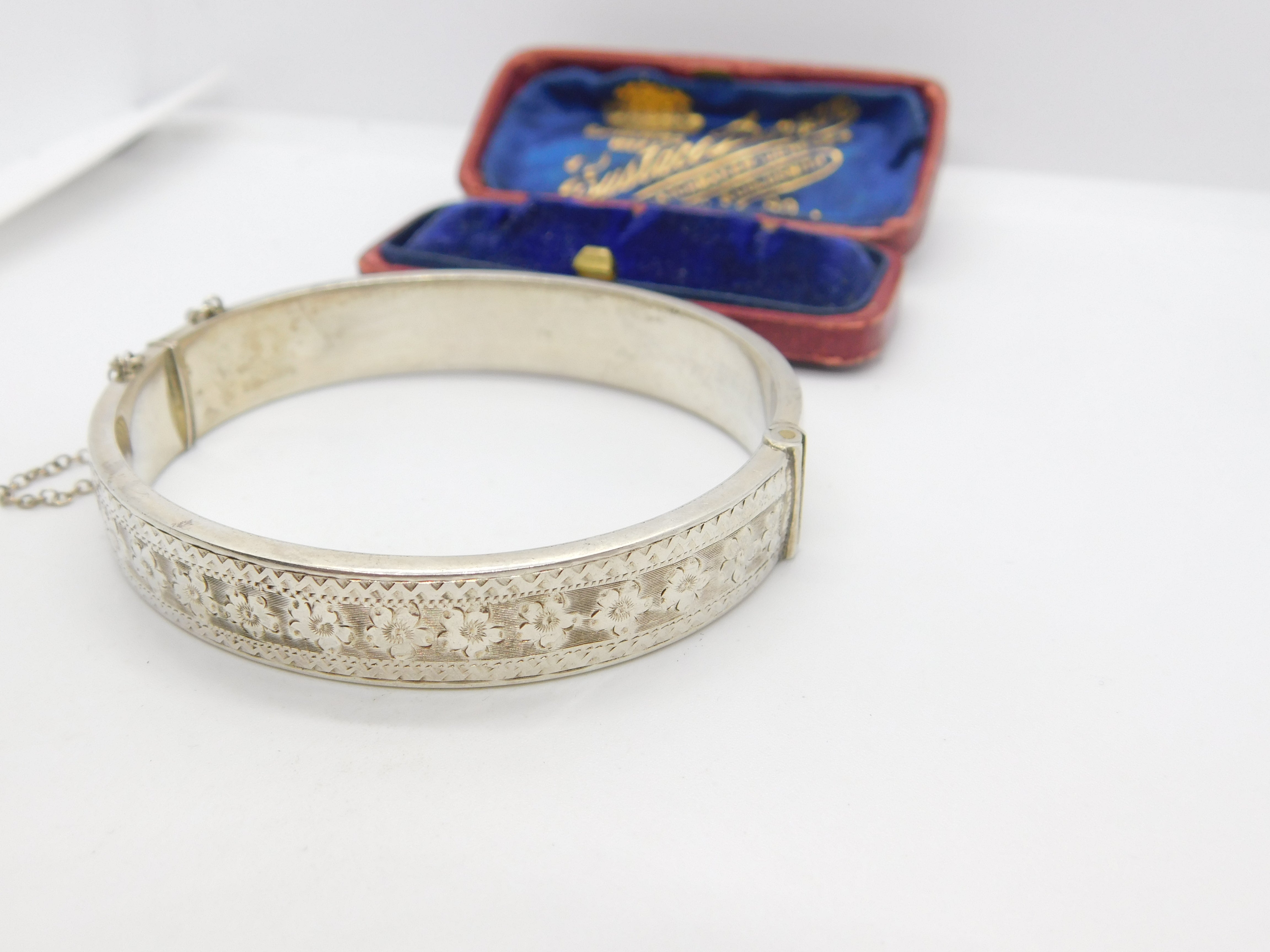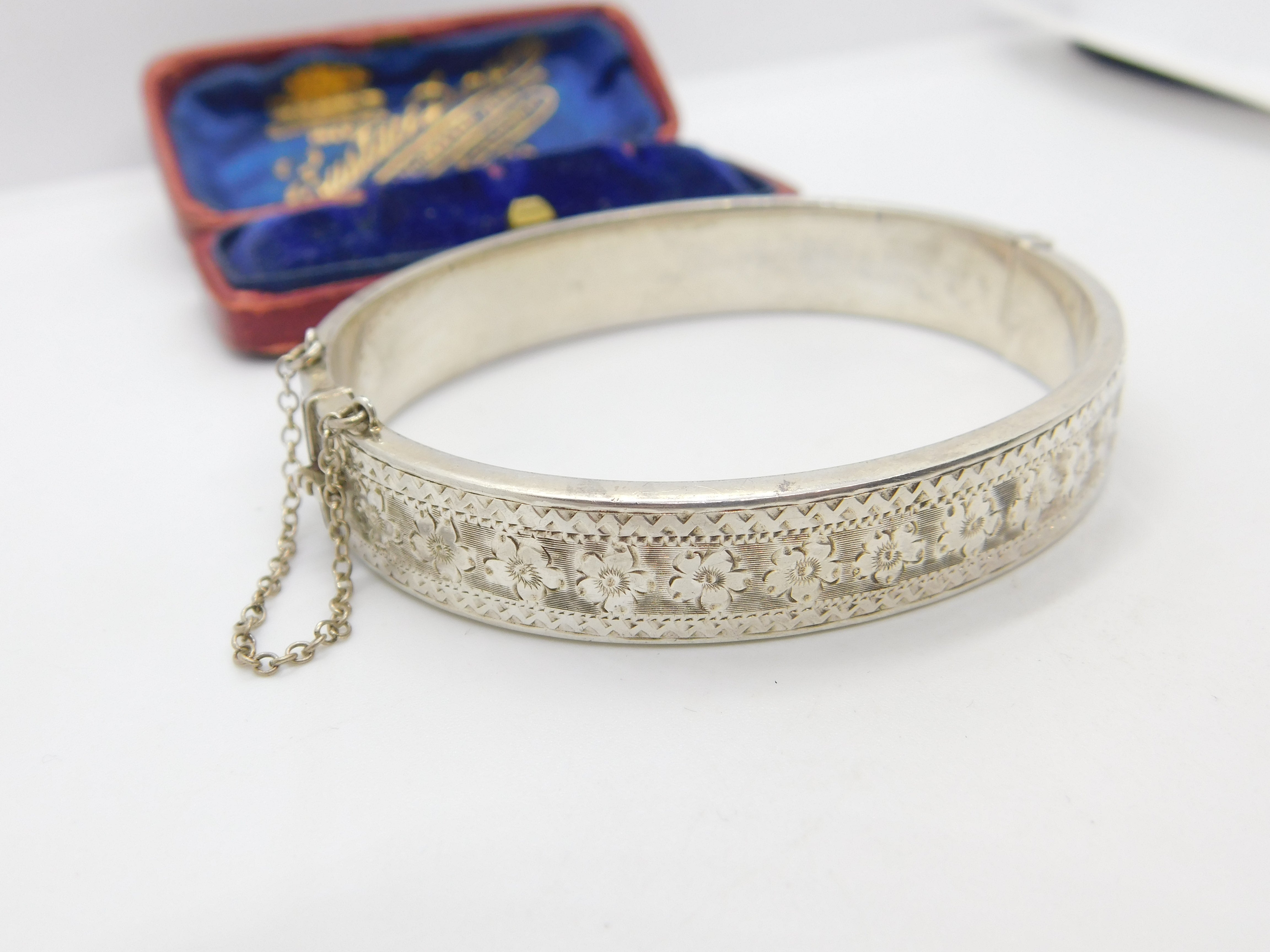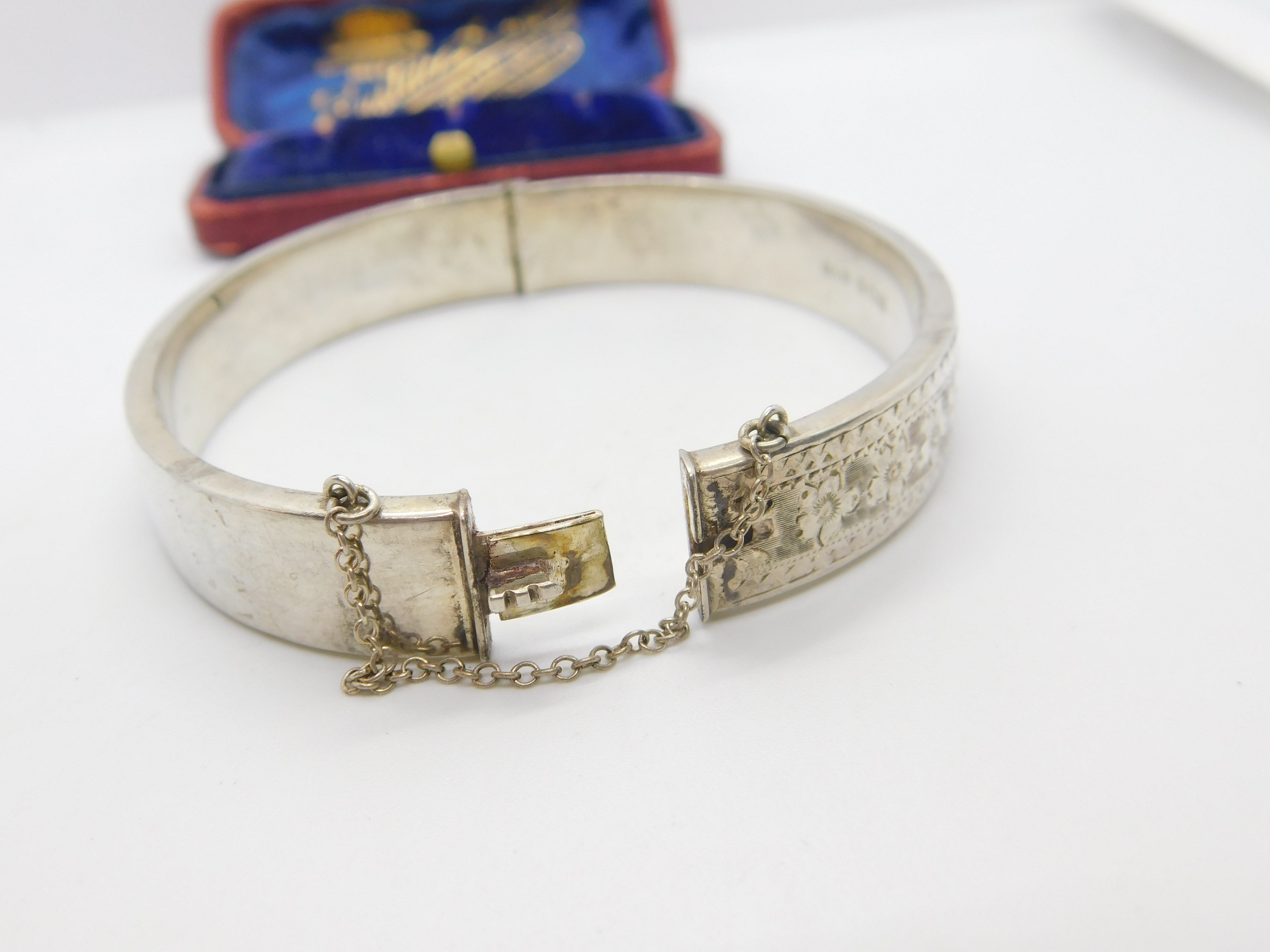 Sterling Silver Aesthetic Floral Cuff Bangle 1939 Antique Birmingham Deco