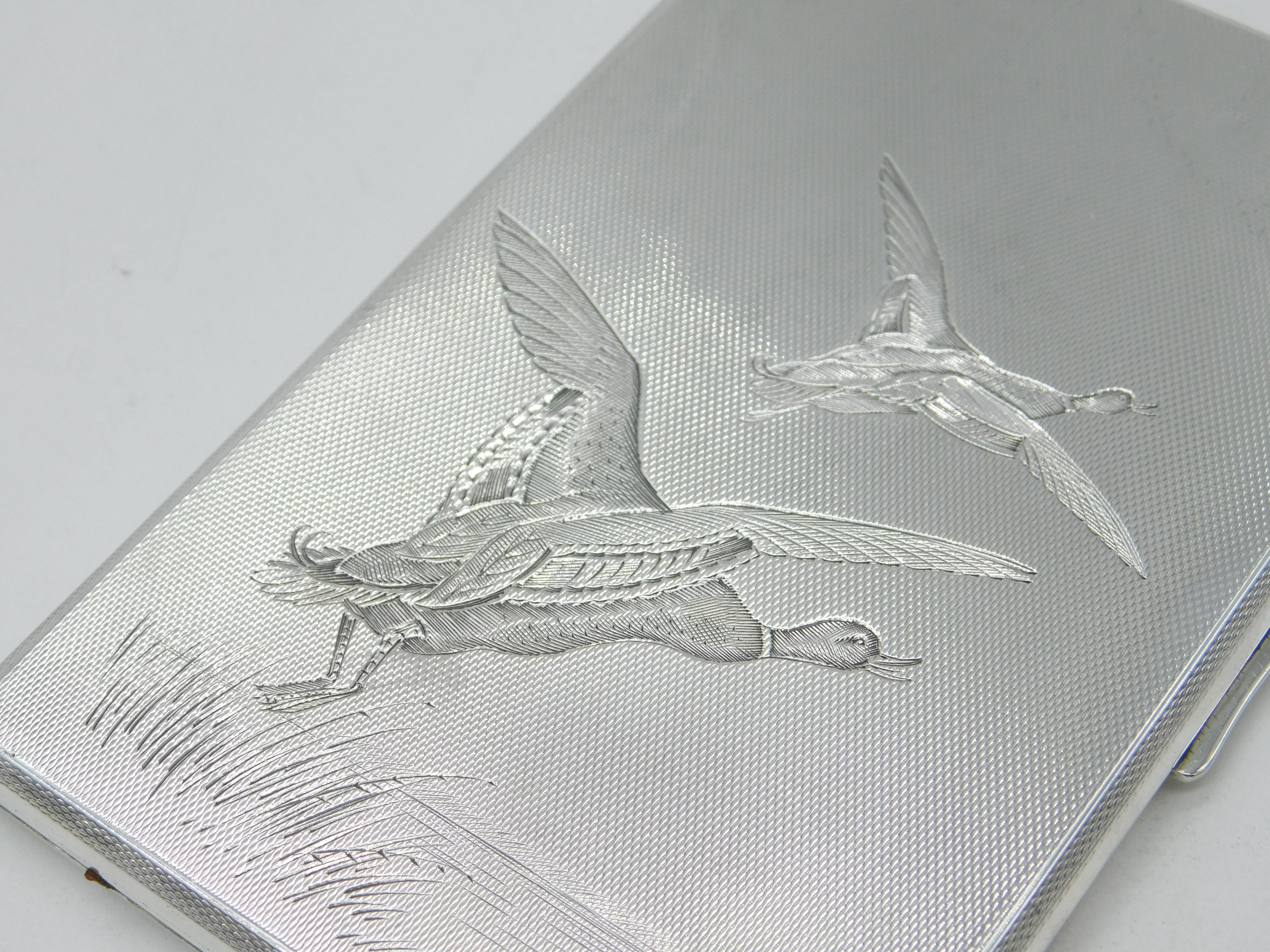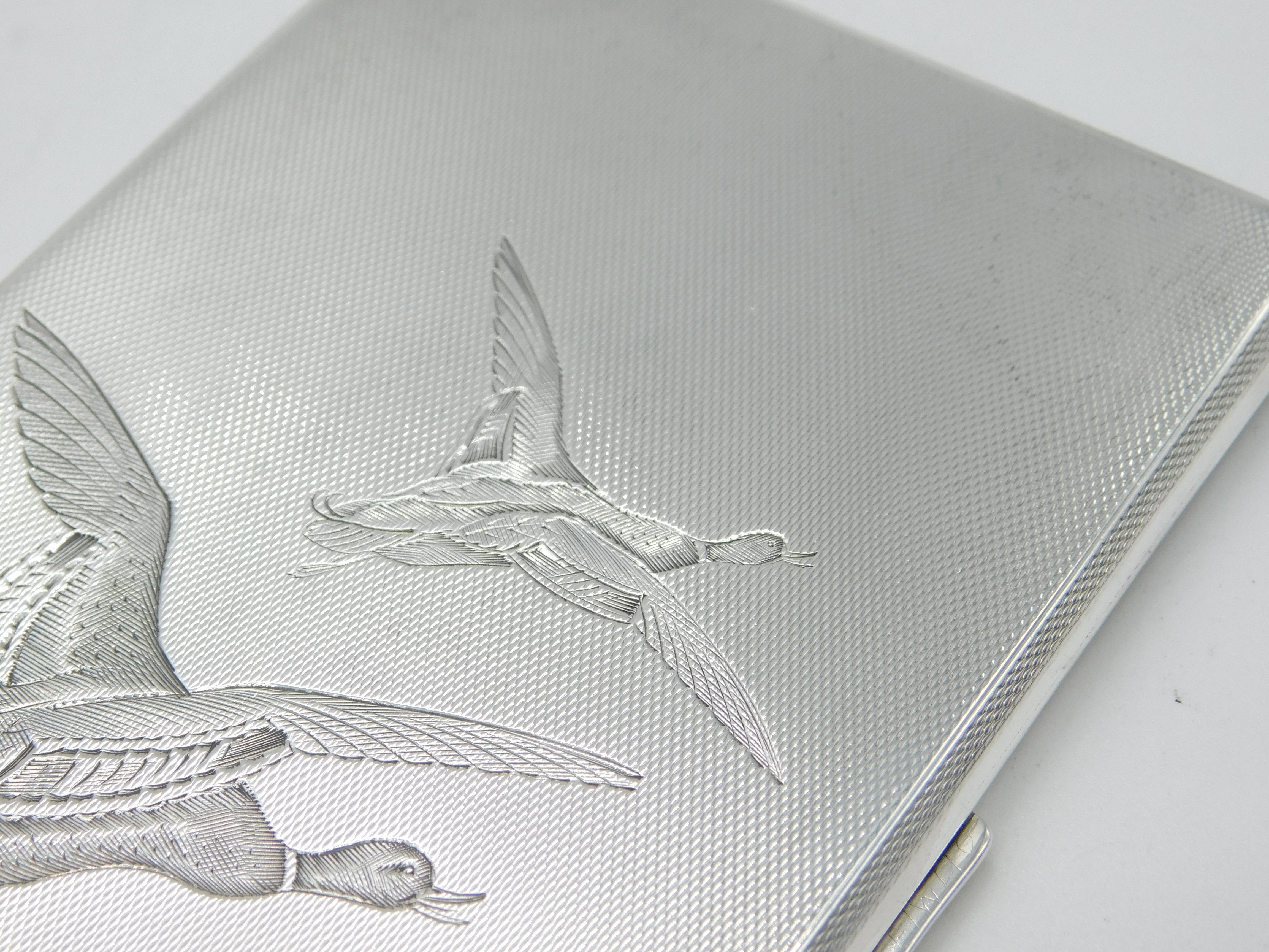 Sterling Silver Aesthetic Flying Duck Pattern Cigarette Case 1938 Birmingham