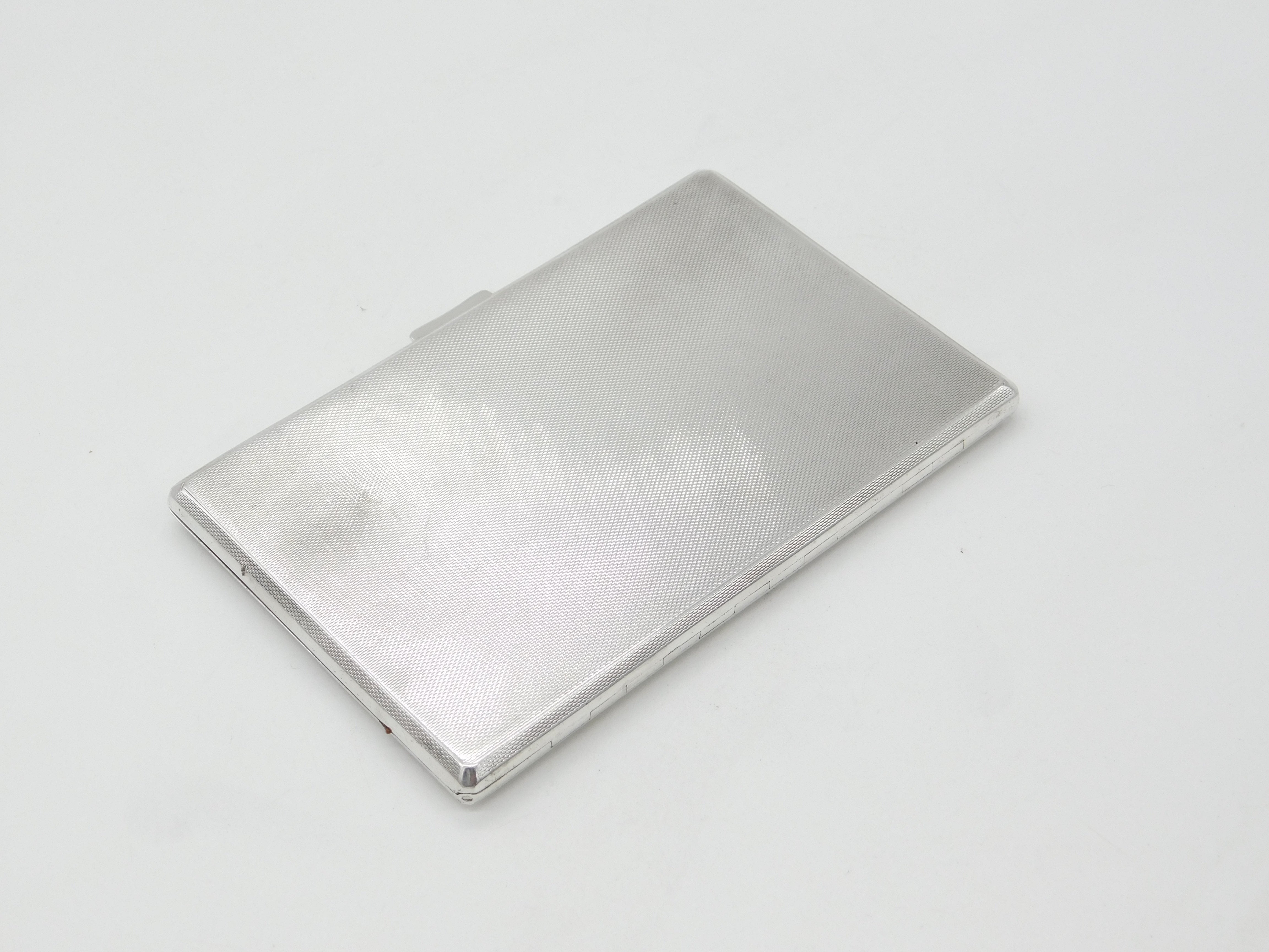 Details: A fantastic and wonderfully designed antique art deco large sterling silver cigarette case with charming flying mallard duck aesthetic scene to the front hallmarked Birmingham, 1938 by Andrew Wilkie. Date engraved to the interior, a lovely example. This is a wonderful item that would make a perfect gift or addition to any collection. The BOX pictured is for PRESENTATION ONLY and is NOT included in the listings but used to frame the pictures unless specifically stated otherwise.