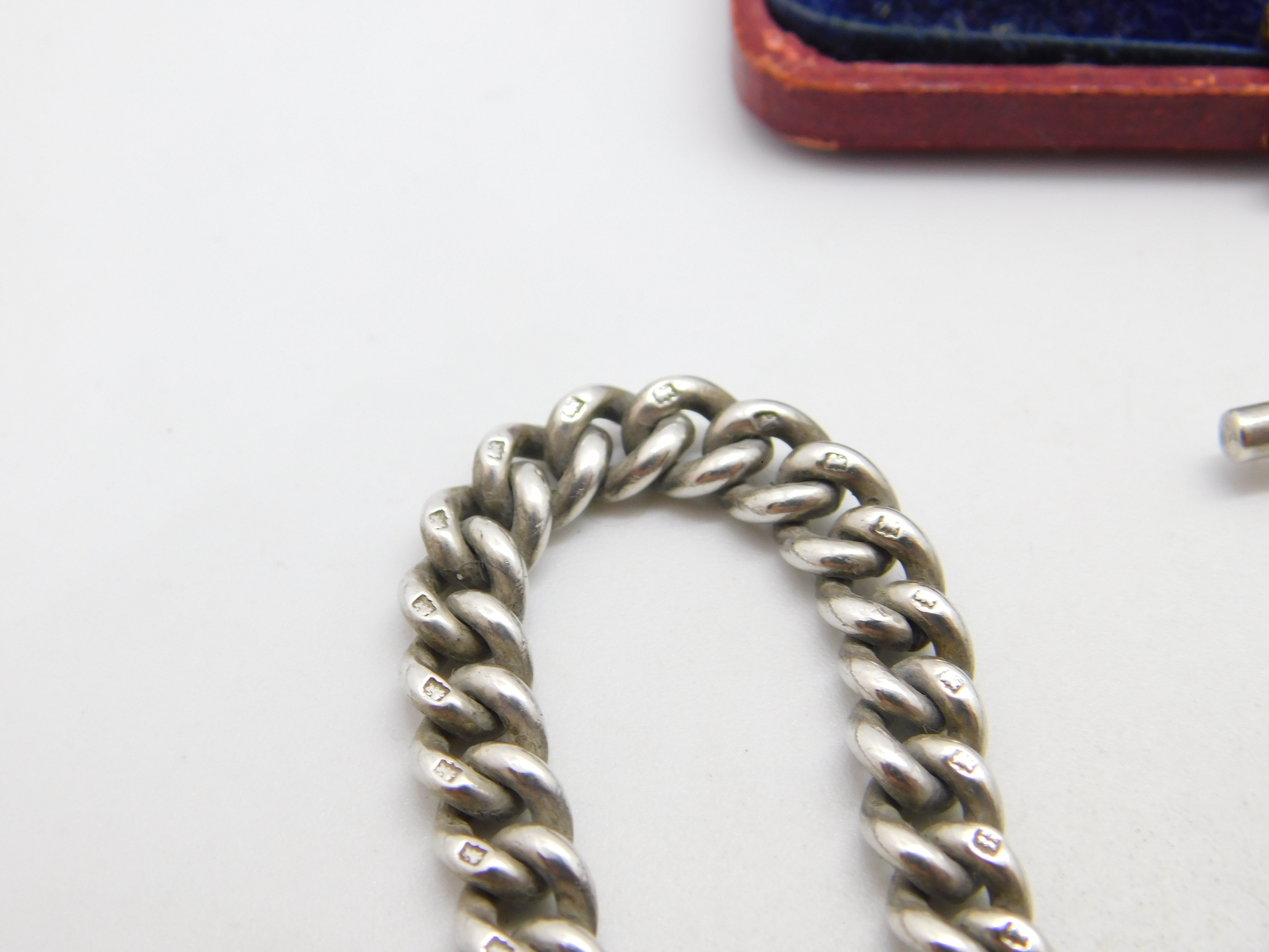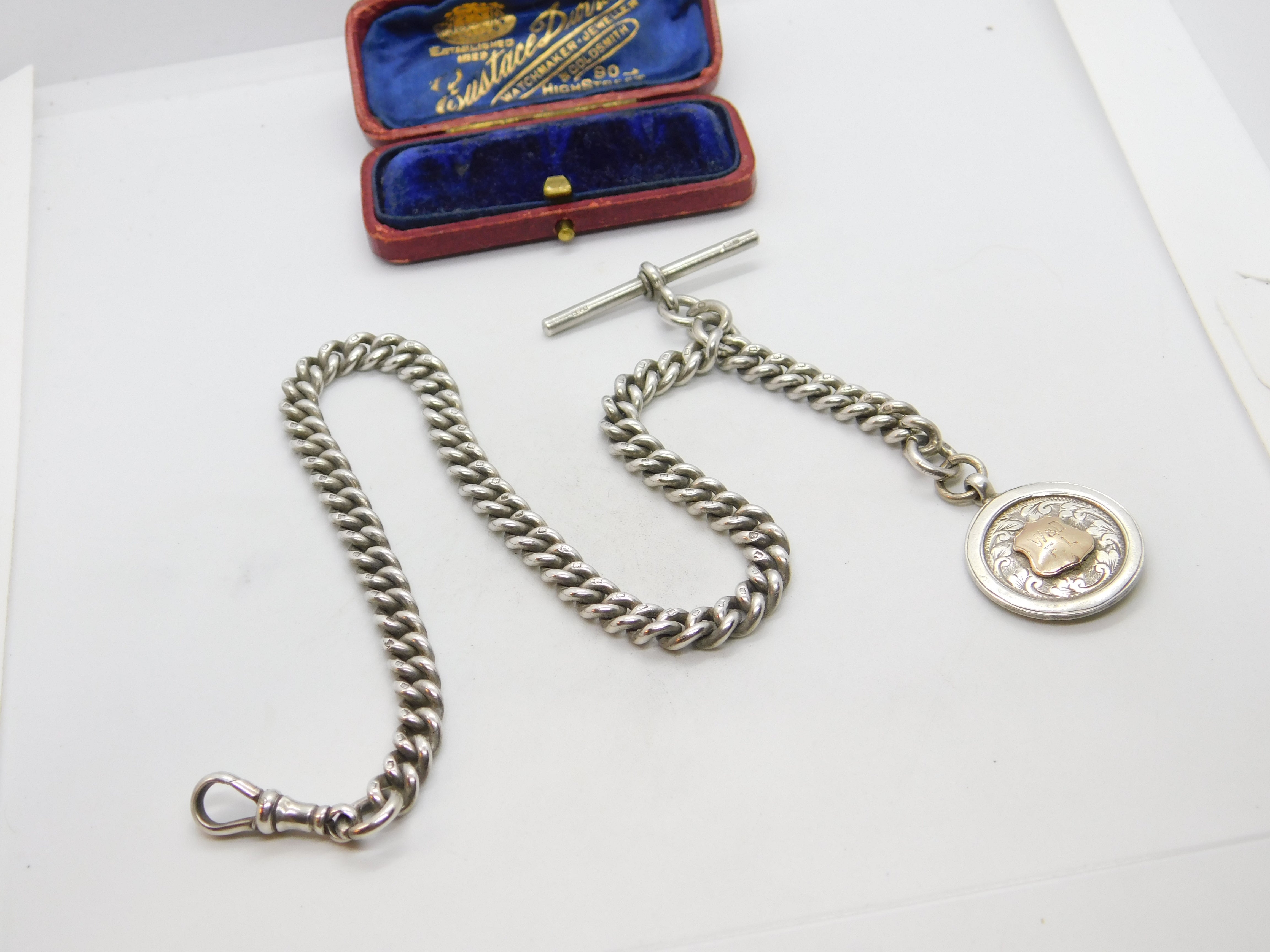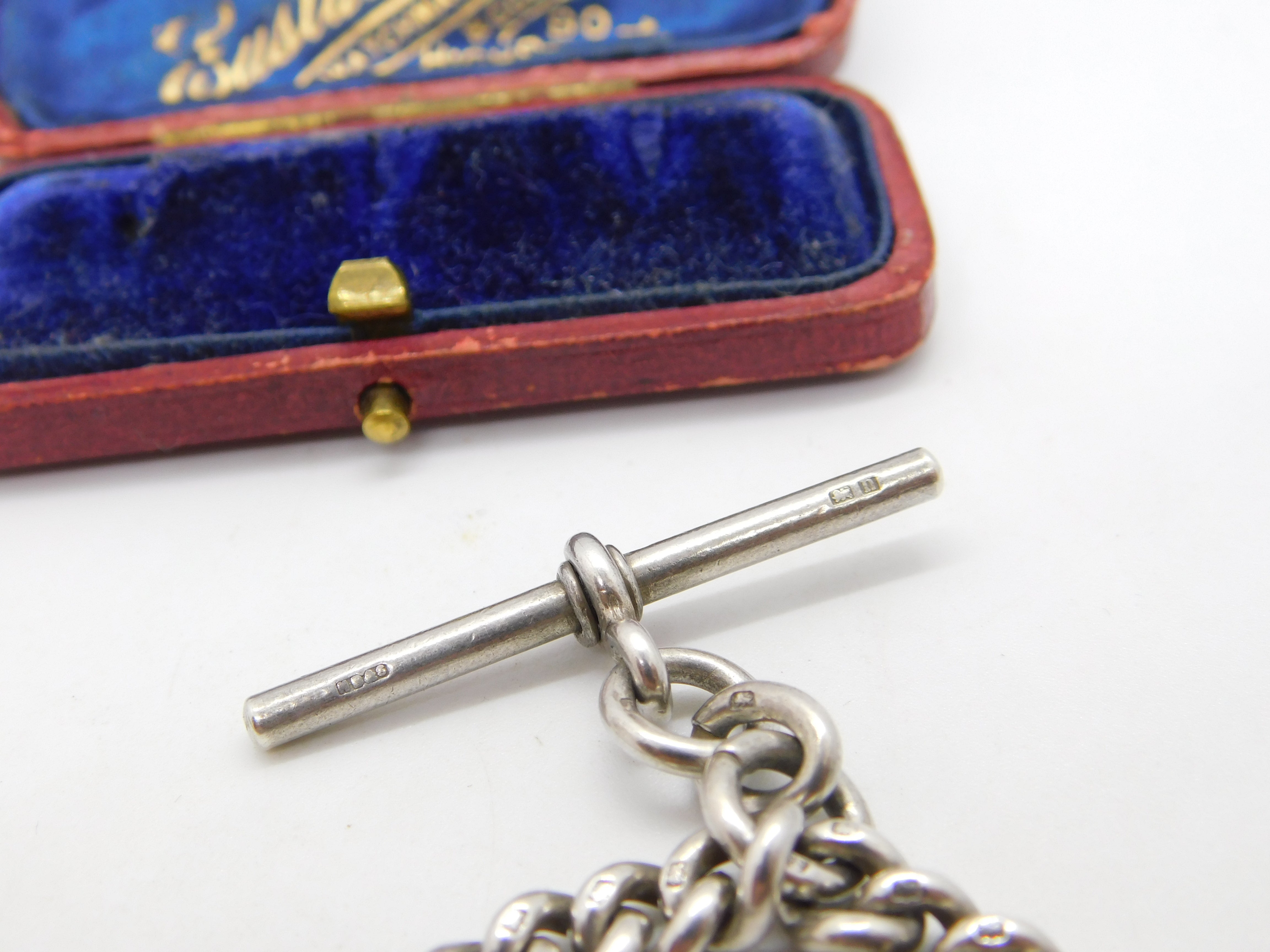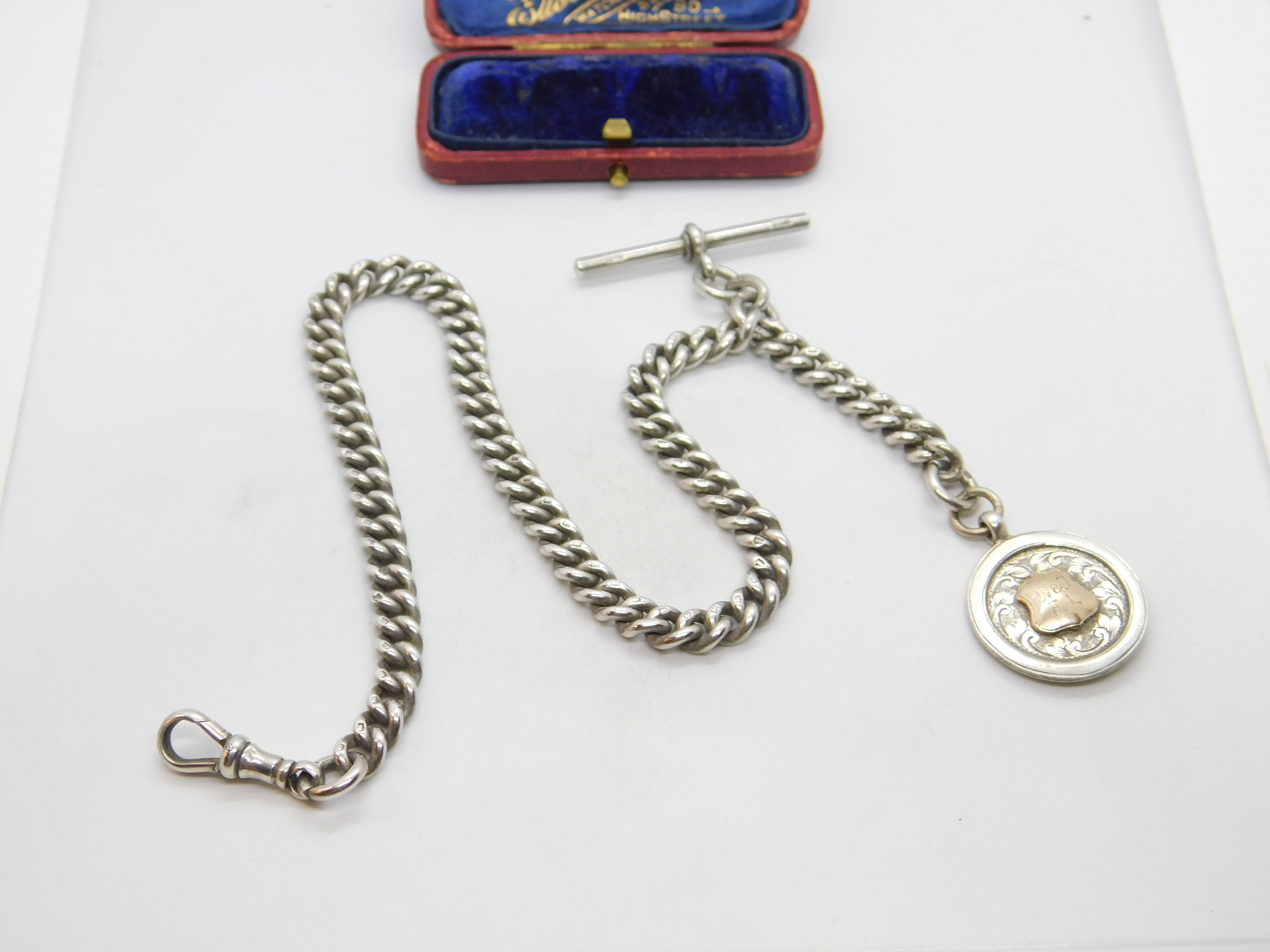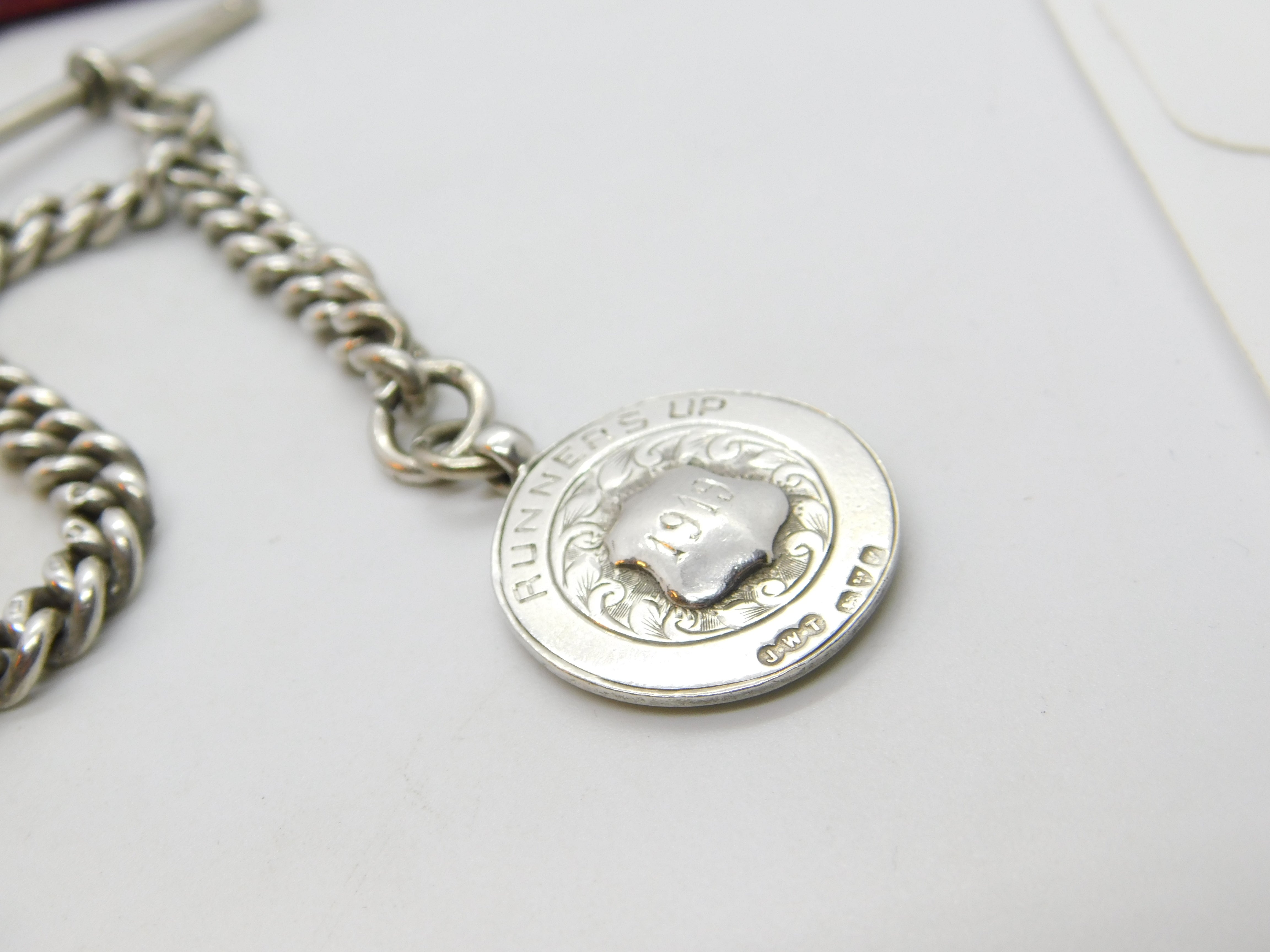 Sterling Silver Albert Watch Chain with Fob Antique 1911 Birmingham Art Deco