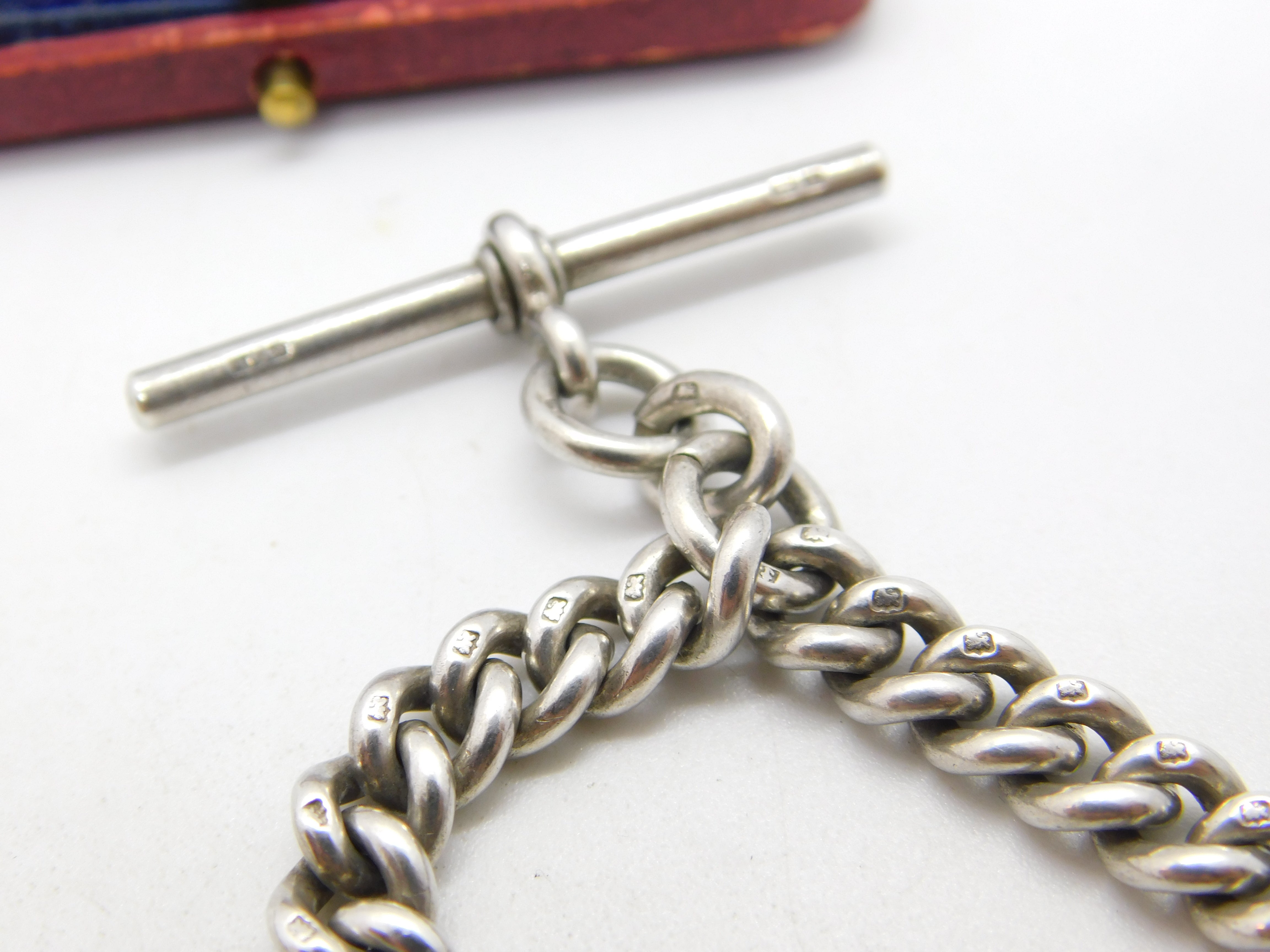 Details: A fantastic and wonderfully designed antique sterling silver curb link watch chain with fob and t-bar hallmarked to every link of the watch chain and to the dog clip Birmingham 1911. This is a wonderful item that would make a perfect gift or addition to any collection. The BOX pictured is for PRESENTATION ONLY and is NOT included in the listings but used to frame the pictures unless specifically stated otherwise.