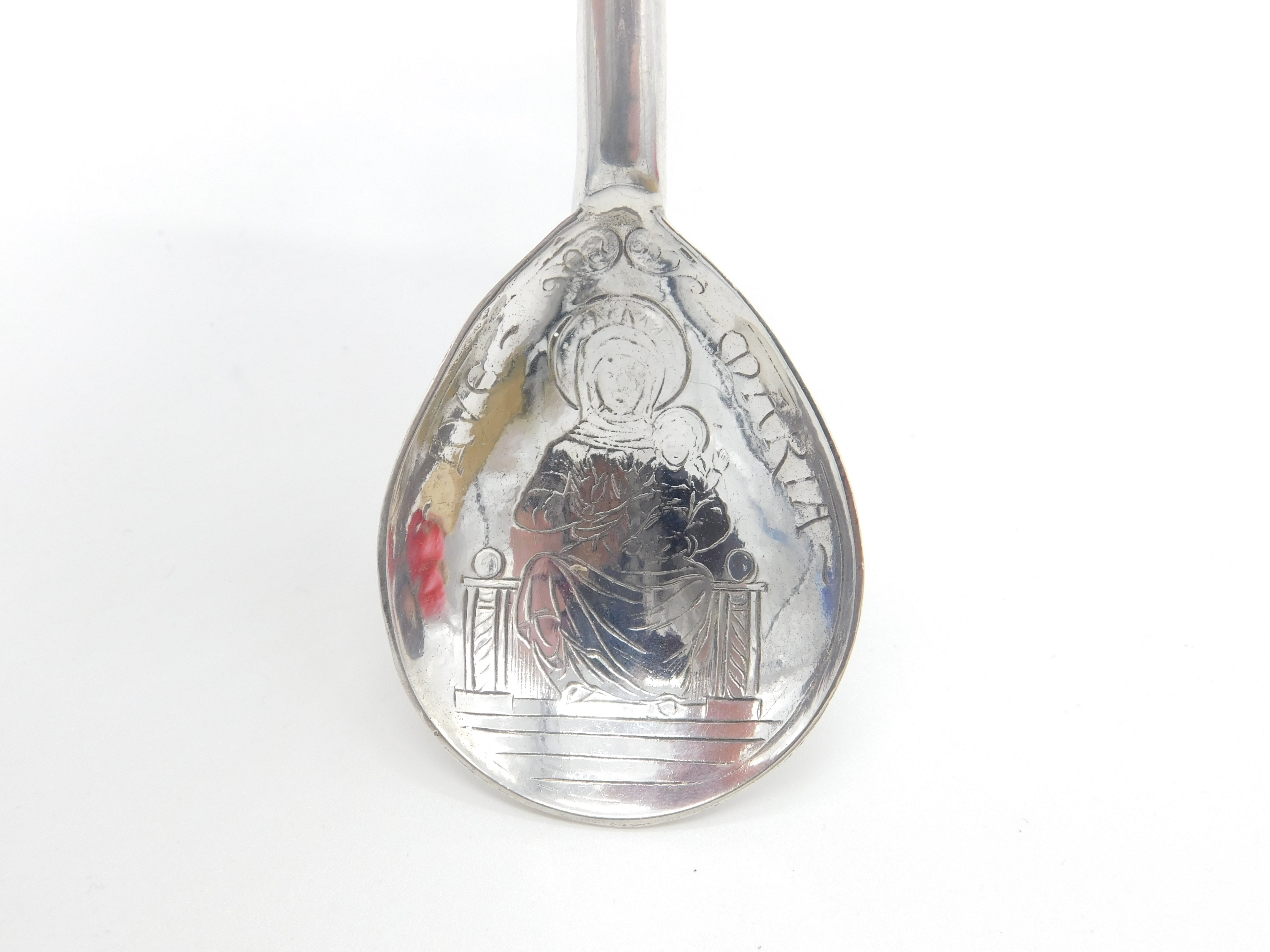 Sterling Silver 'Ave Maria' Apostle Picture Bowl Spoon Antique 1902 Chester