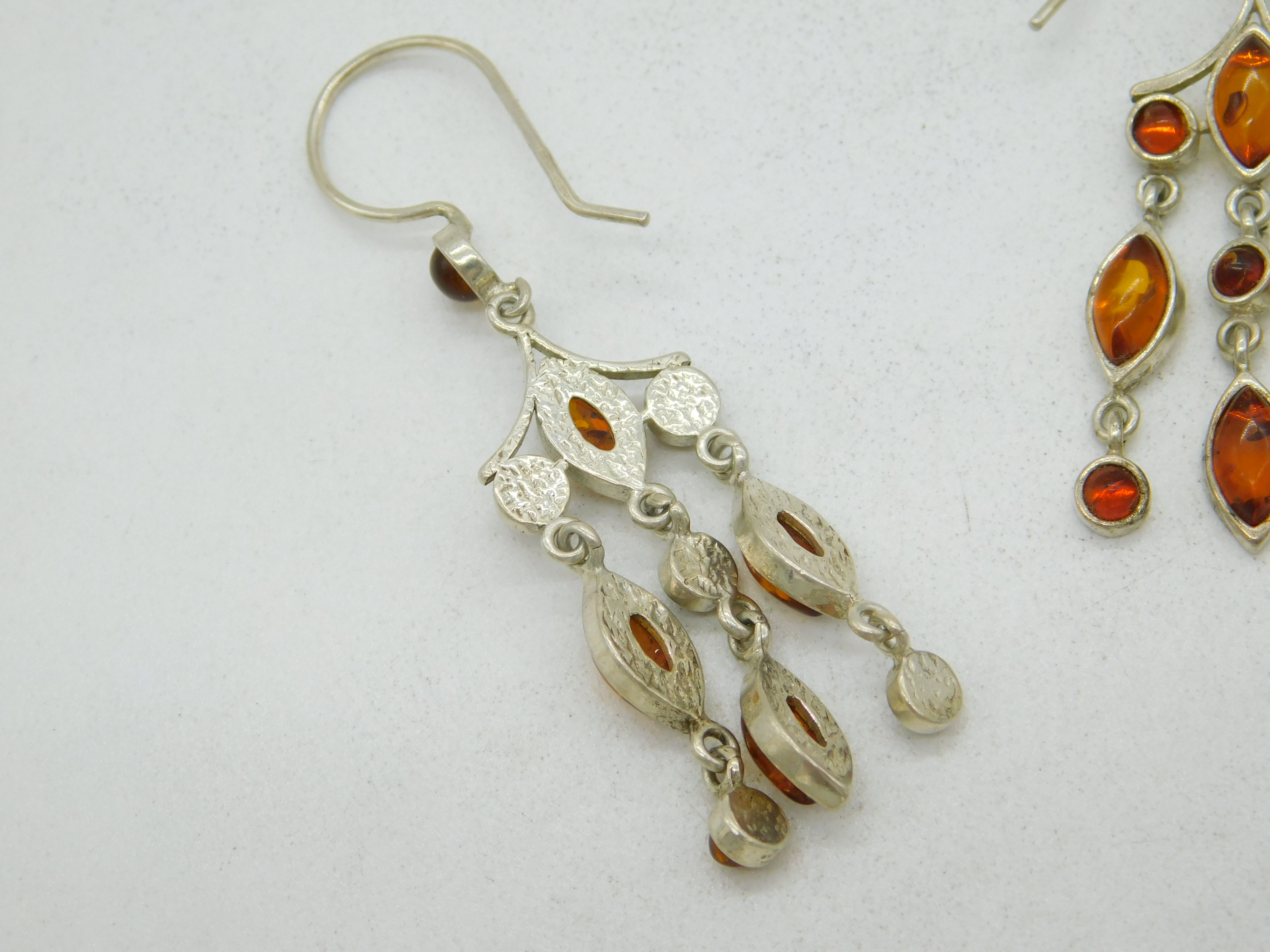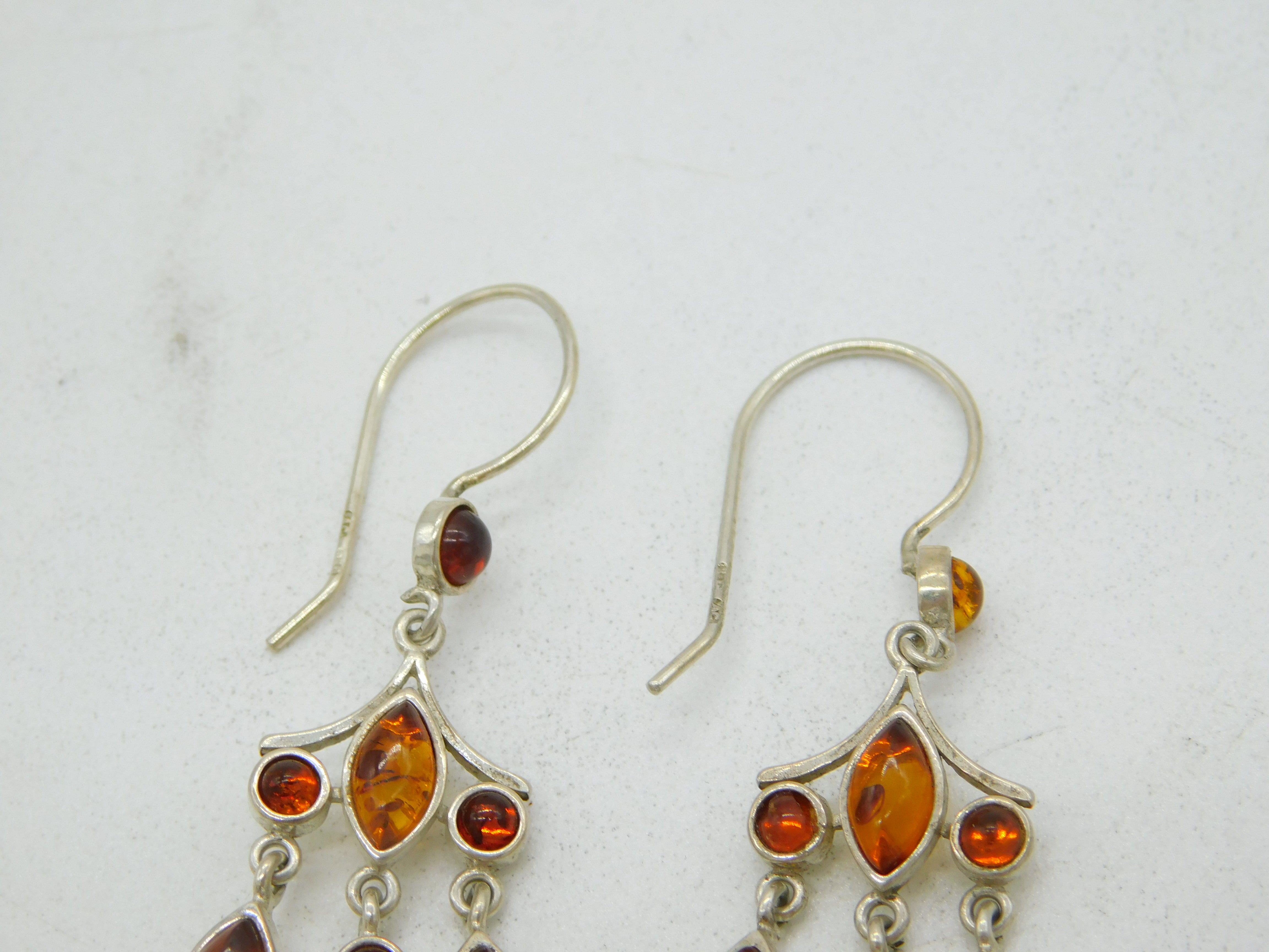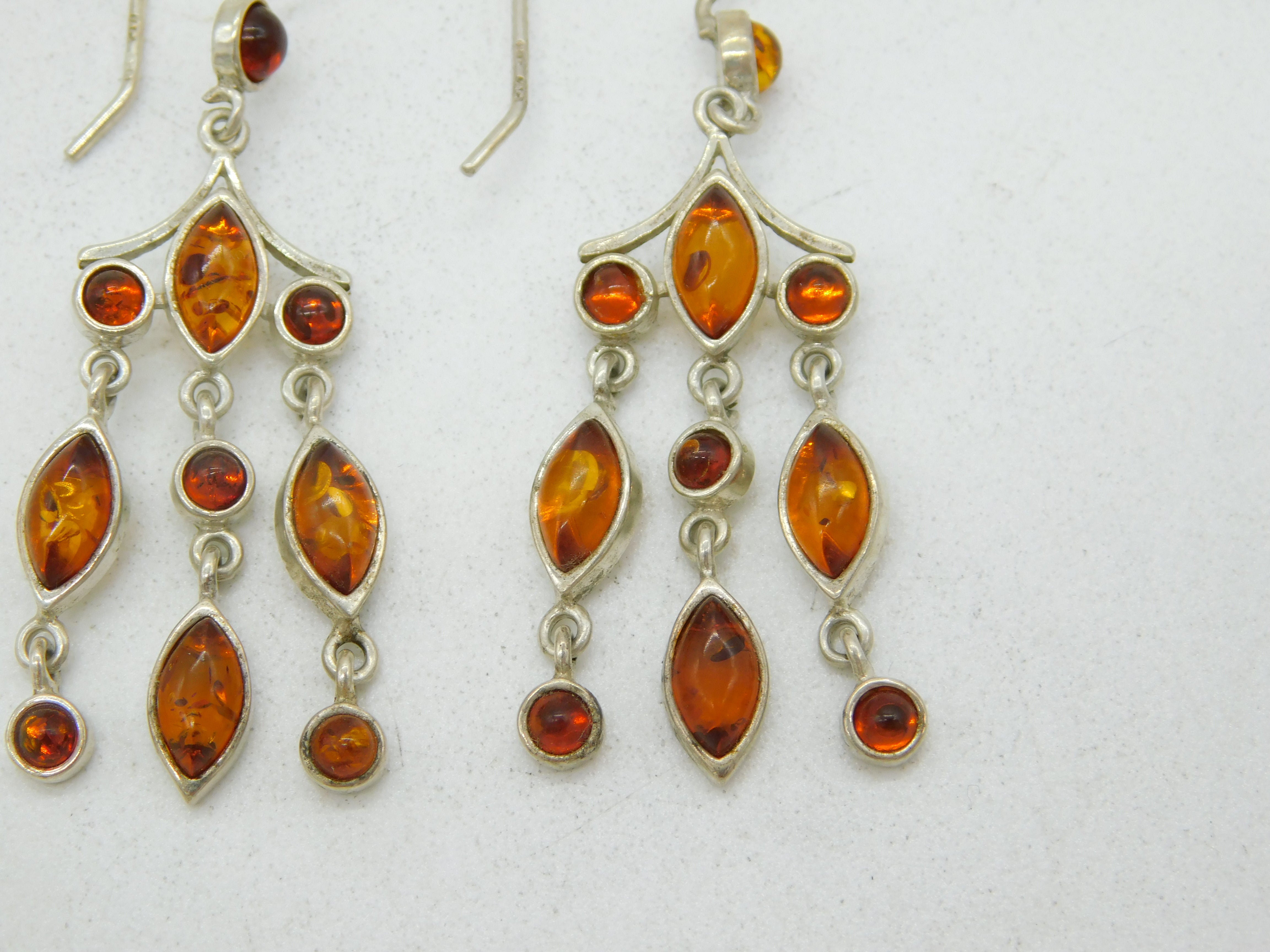 Details: A fantastic and wonderfully designed vintage sterling silver & baltic amber set dangling drop earrings with super detailing hallmarked fully to the hooks c1970. This is a wonderful item that would make a perfect gift or addition to any collection.