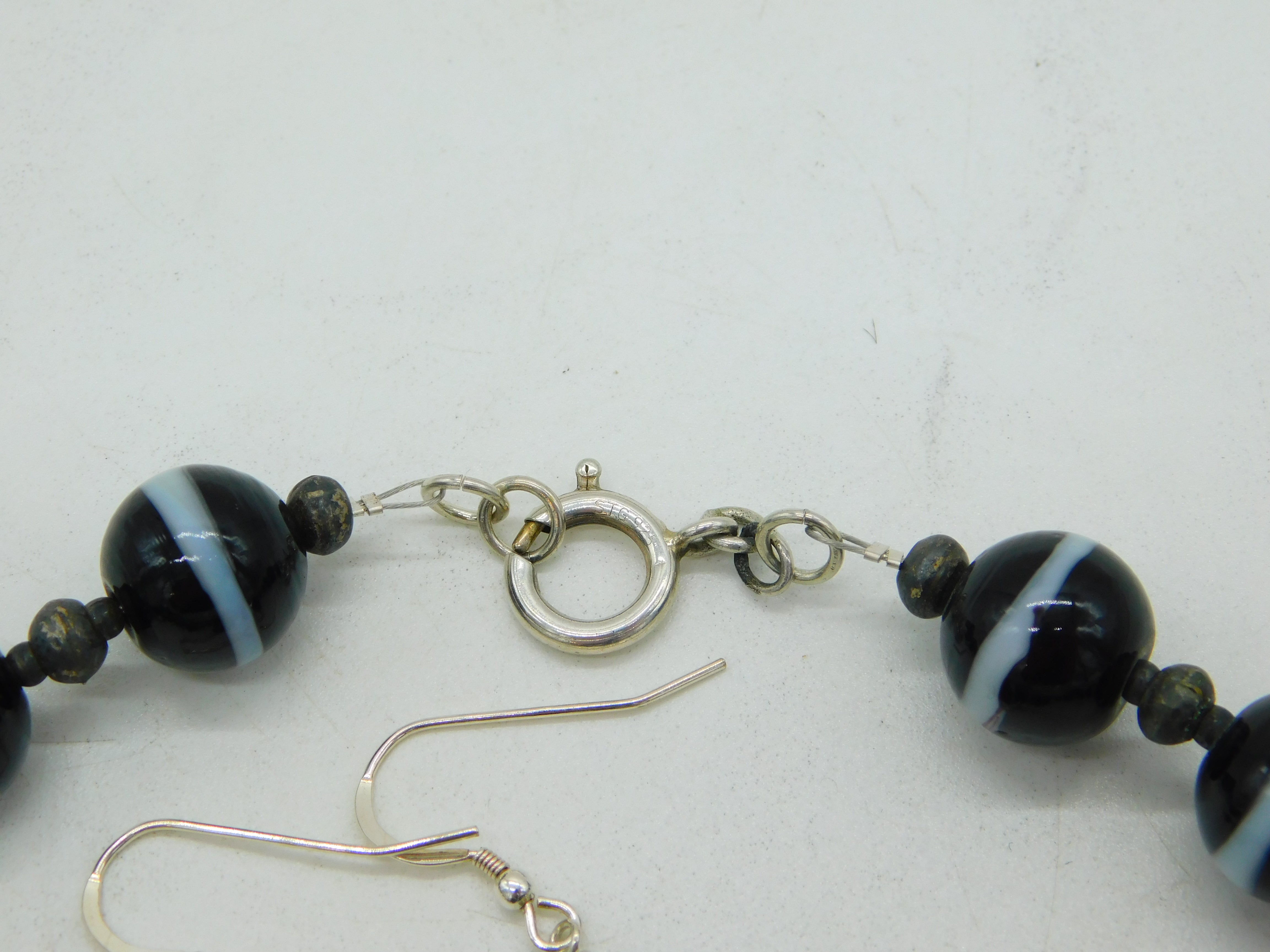 Sterling Silver Banded Agate 3-Part Jewellery Suite Necklace, Bracelet, Earrings c1970