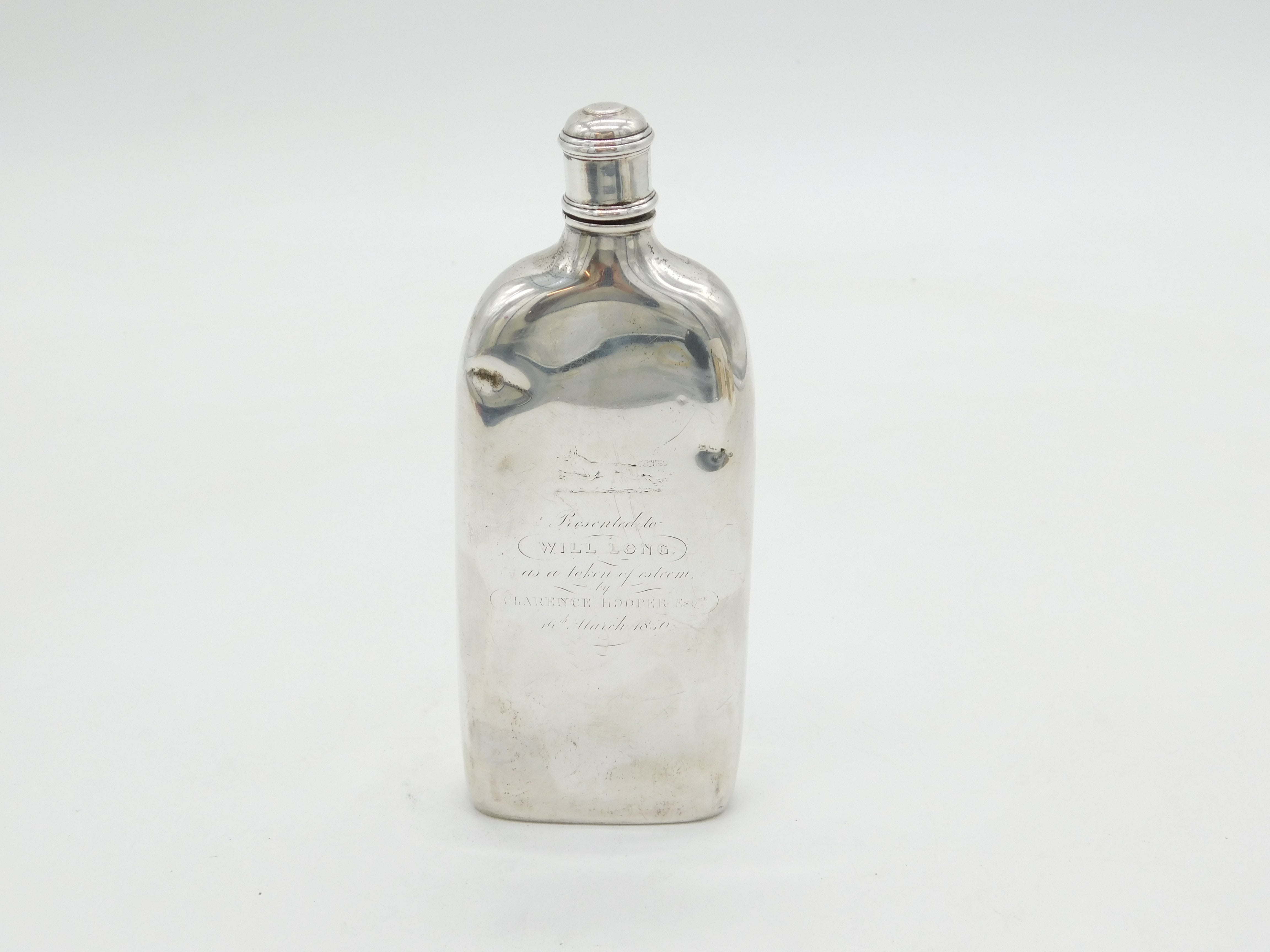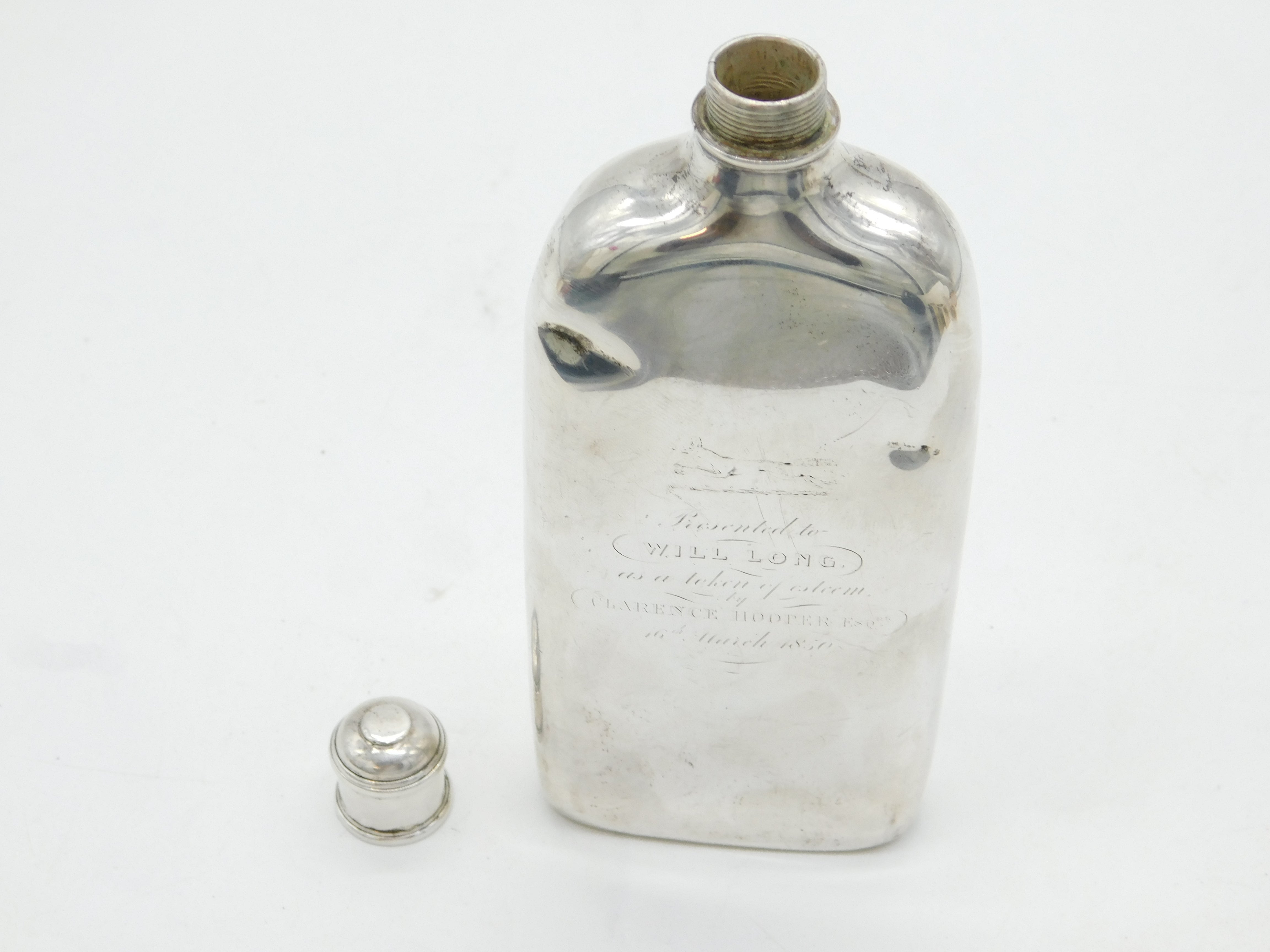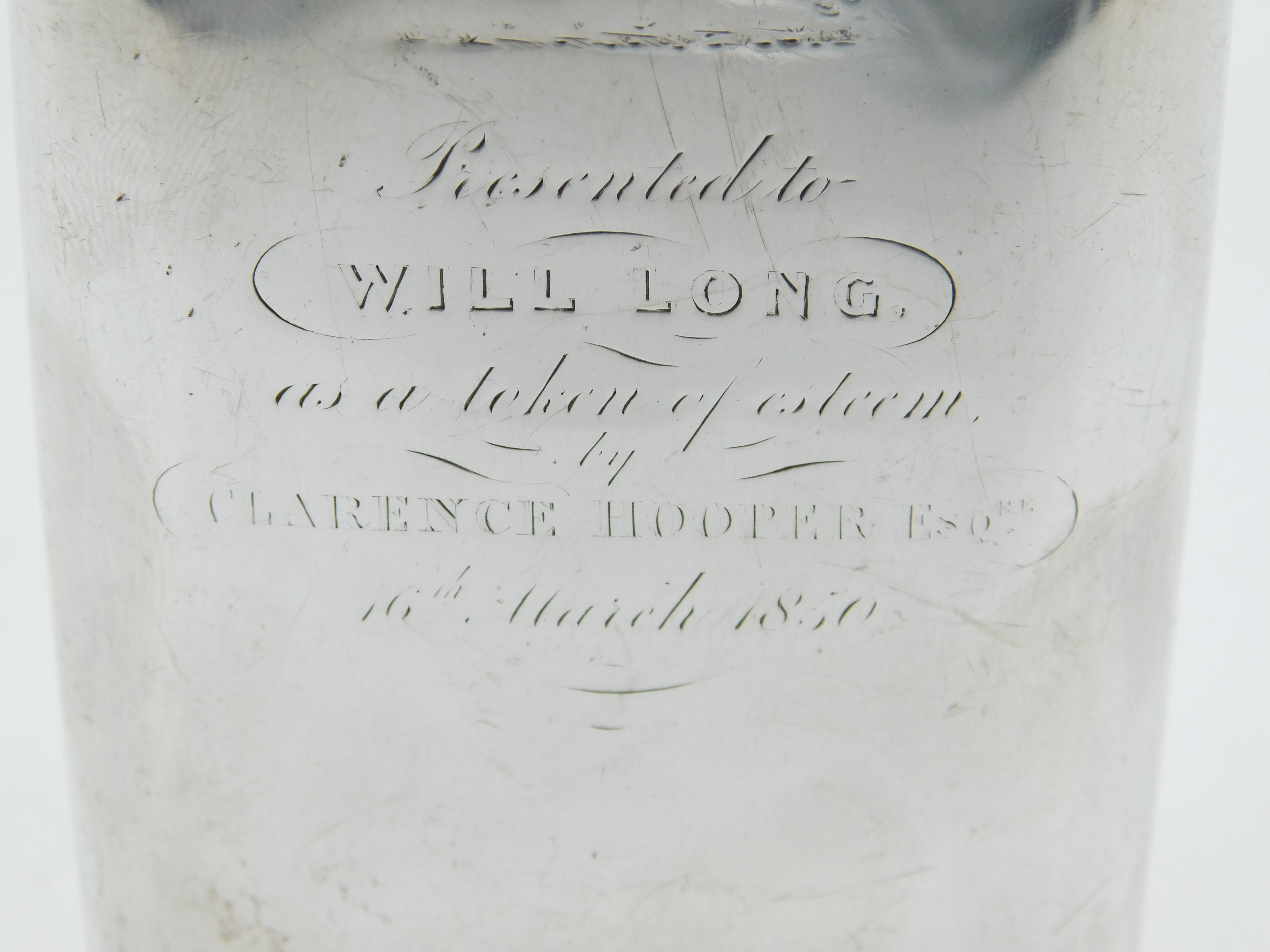 Sterling Silver Beaufort Hunt Hip Flask Belonging to Mr Will Long Antique c1850