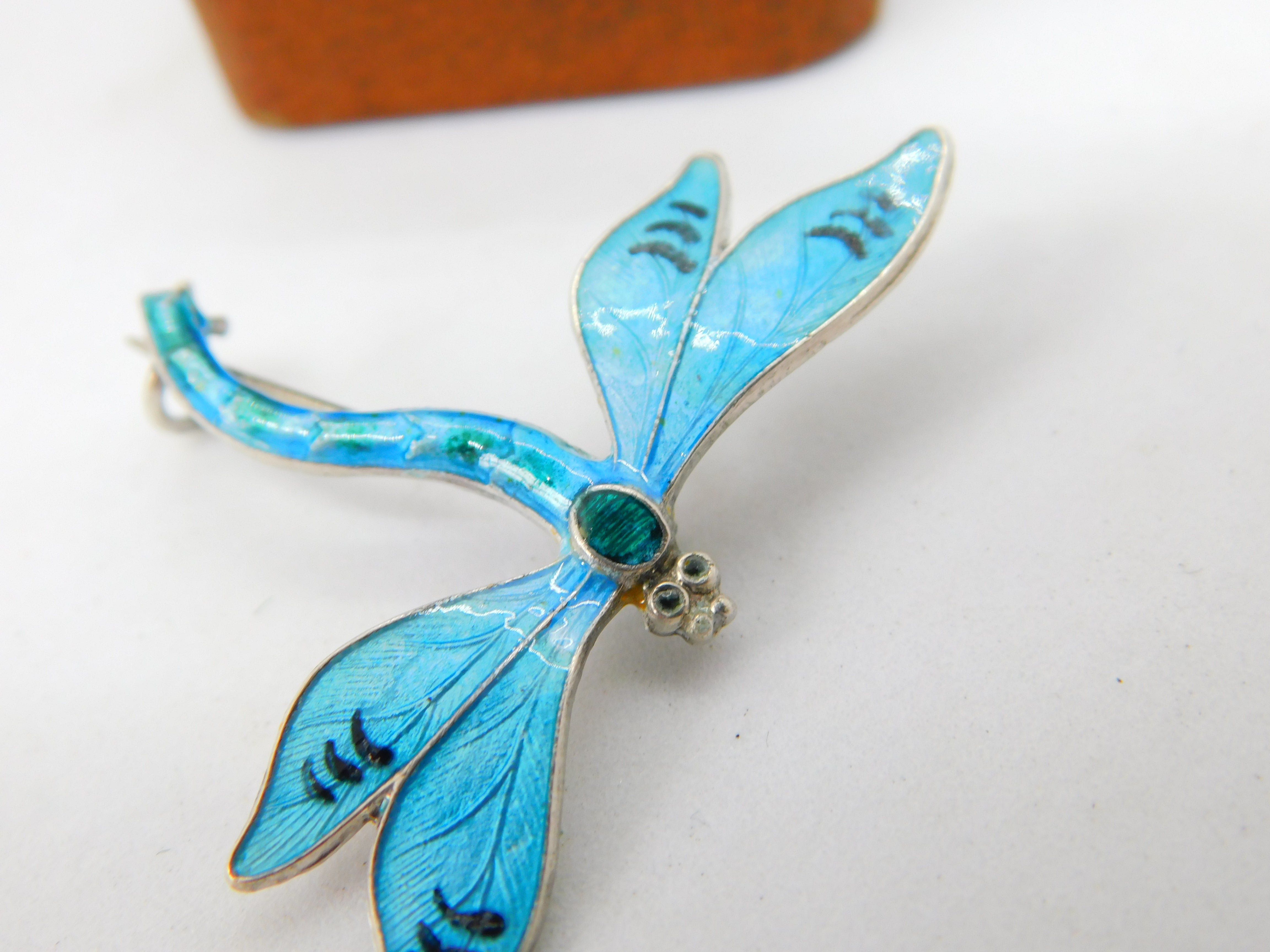 Sterling Silver Blue Enamel Dragonfly Insect Brooch 1916 Antique Birmingham