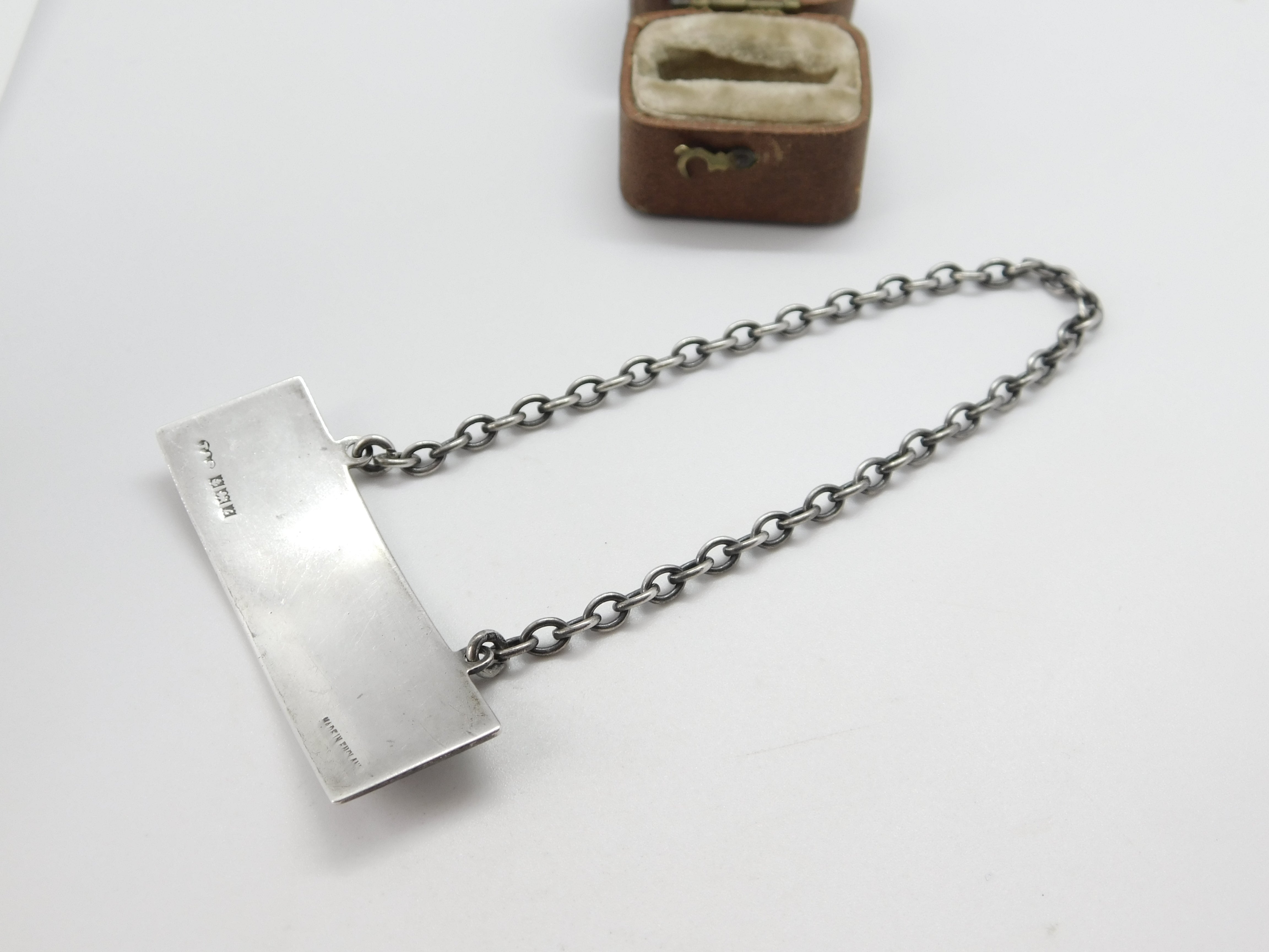 Sterling Silver & Blue Enamel Sherry Decanter Label 1960 Birmingham Vintage