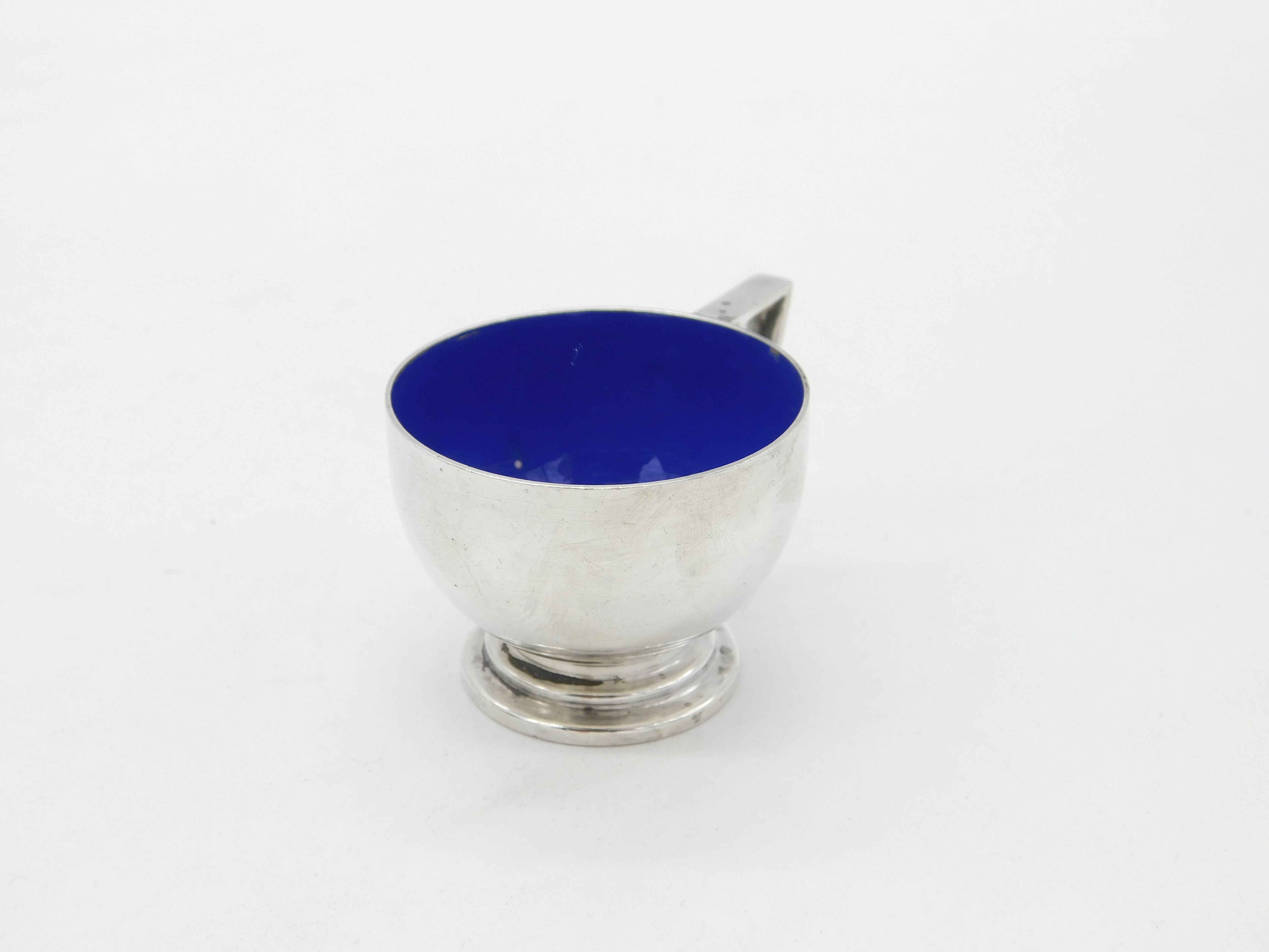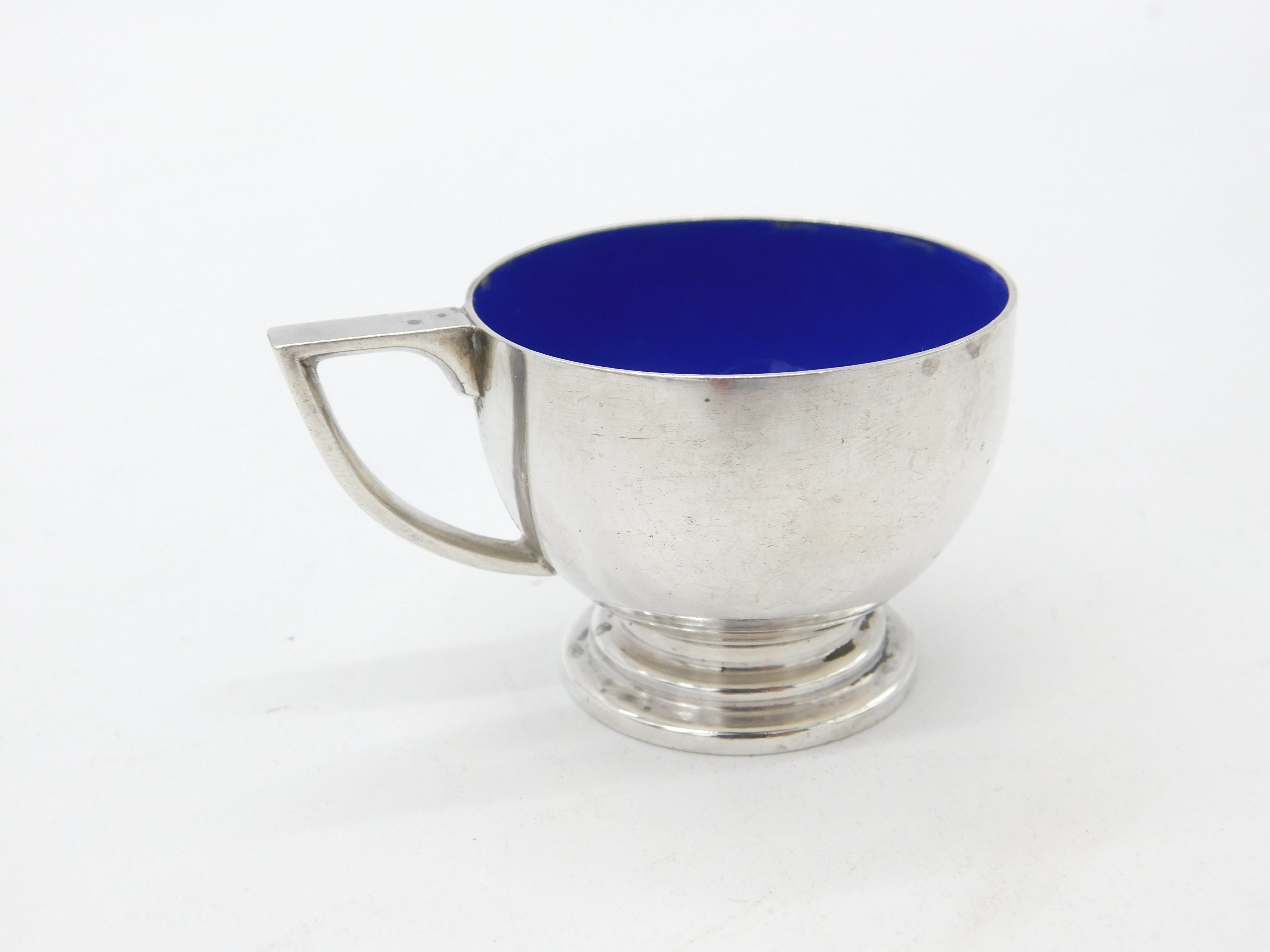 Sterling Silver & Blue Enamel Small Teacup 1934 Birmingham Hukin & Heath