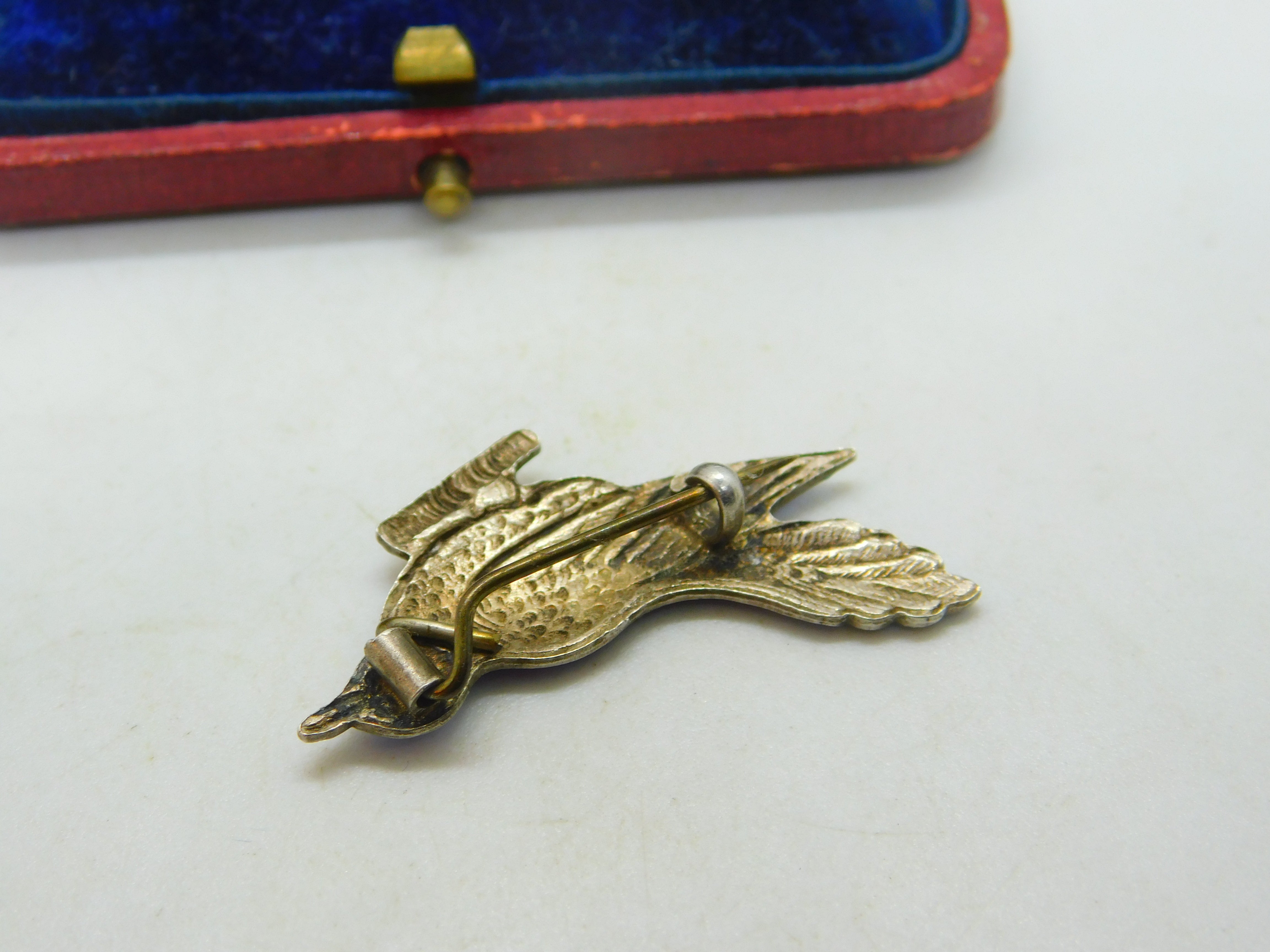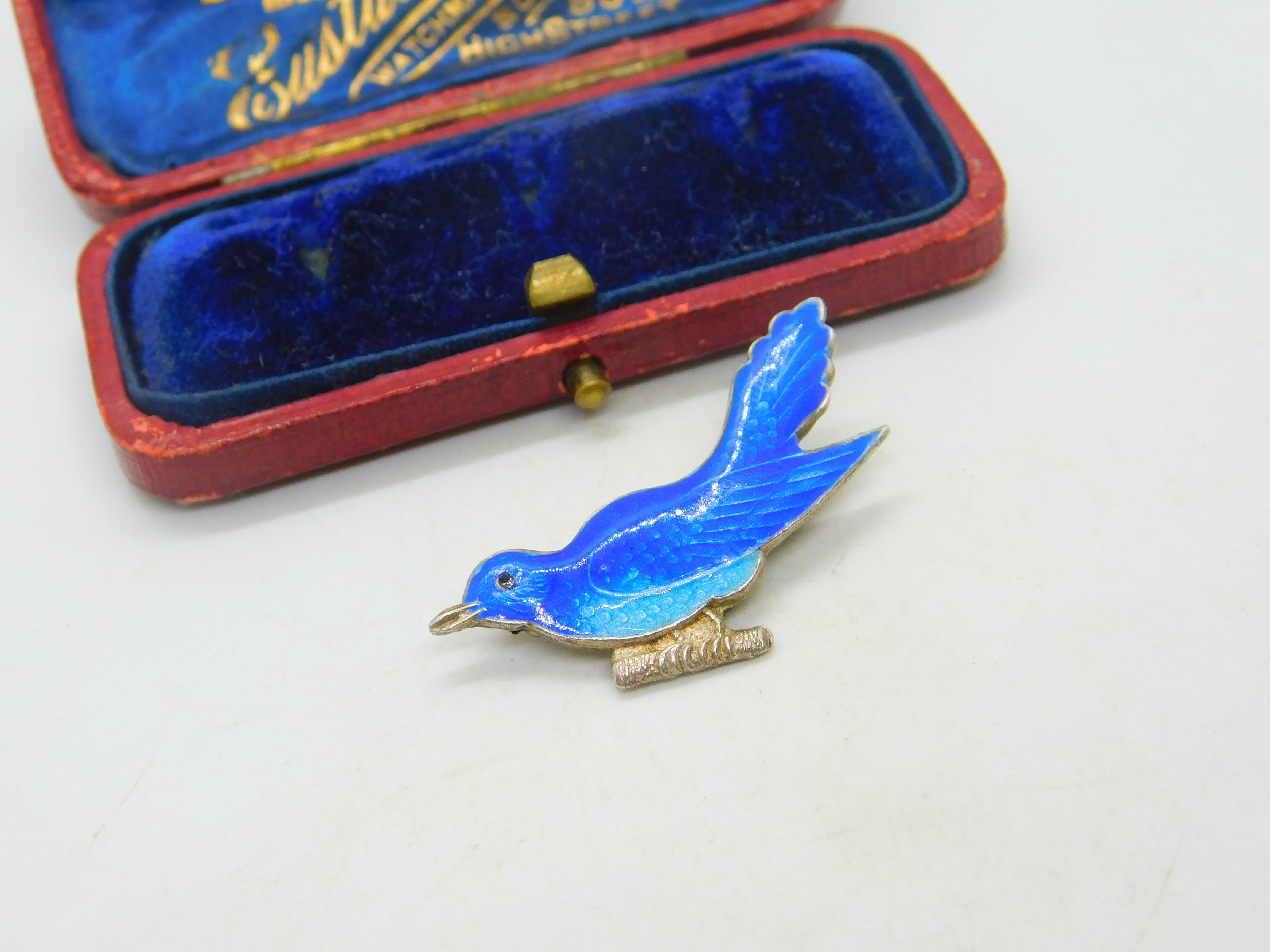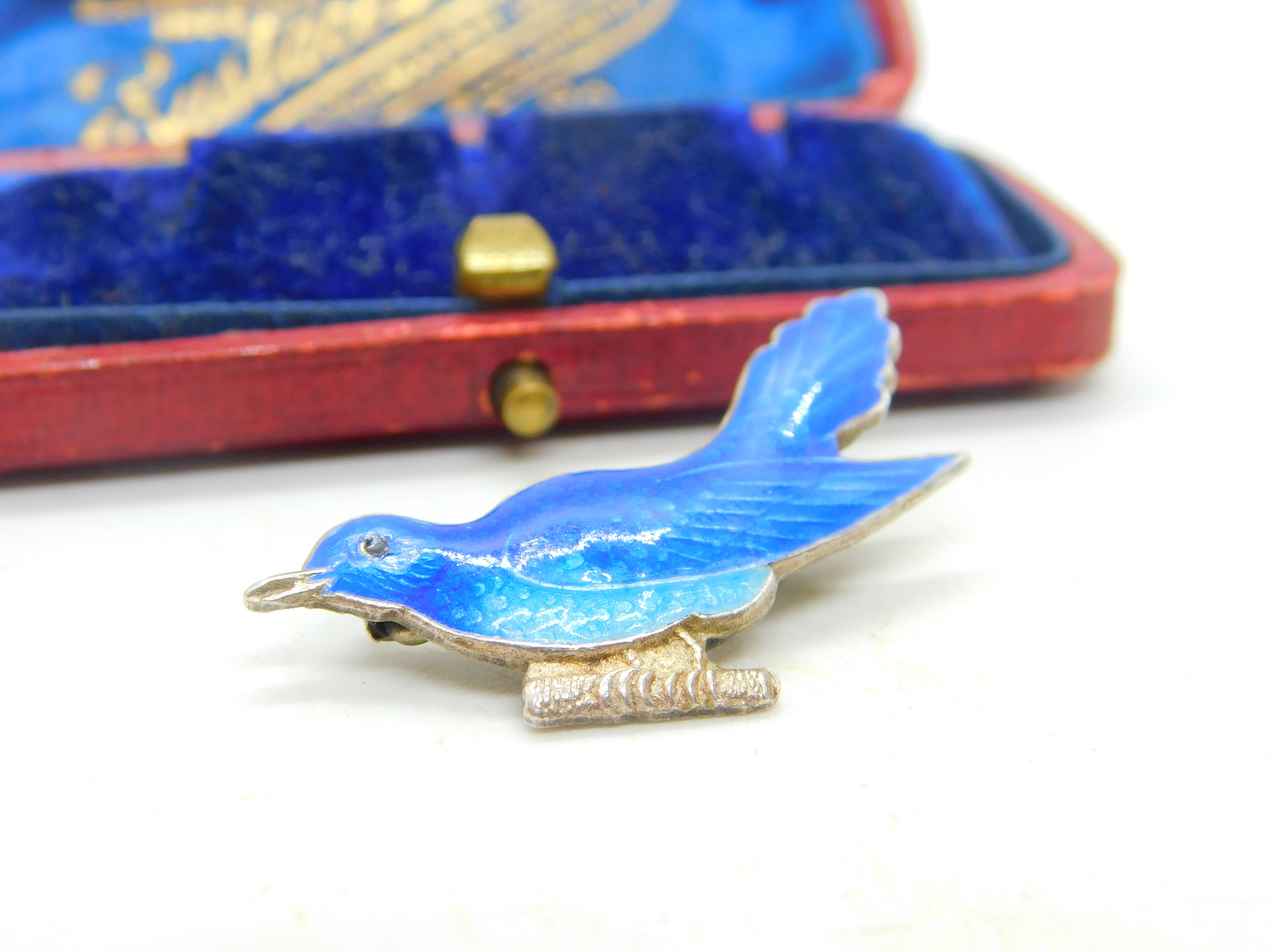 Sterling Silver & Blue Enamel Swallow Sweetheart Brooch Antique c1920 Art Deco