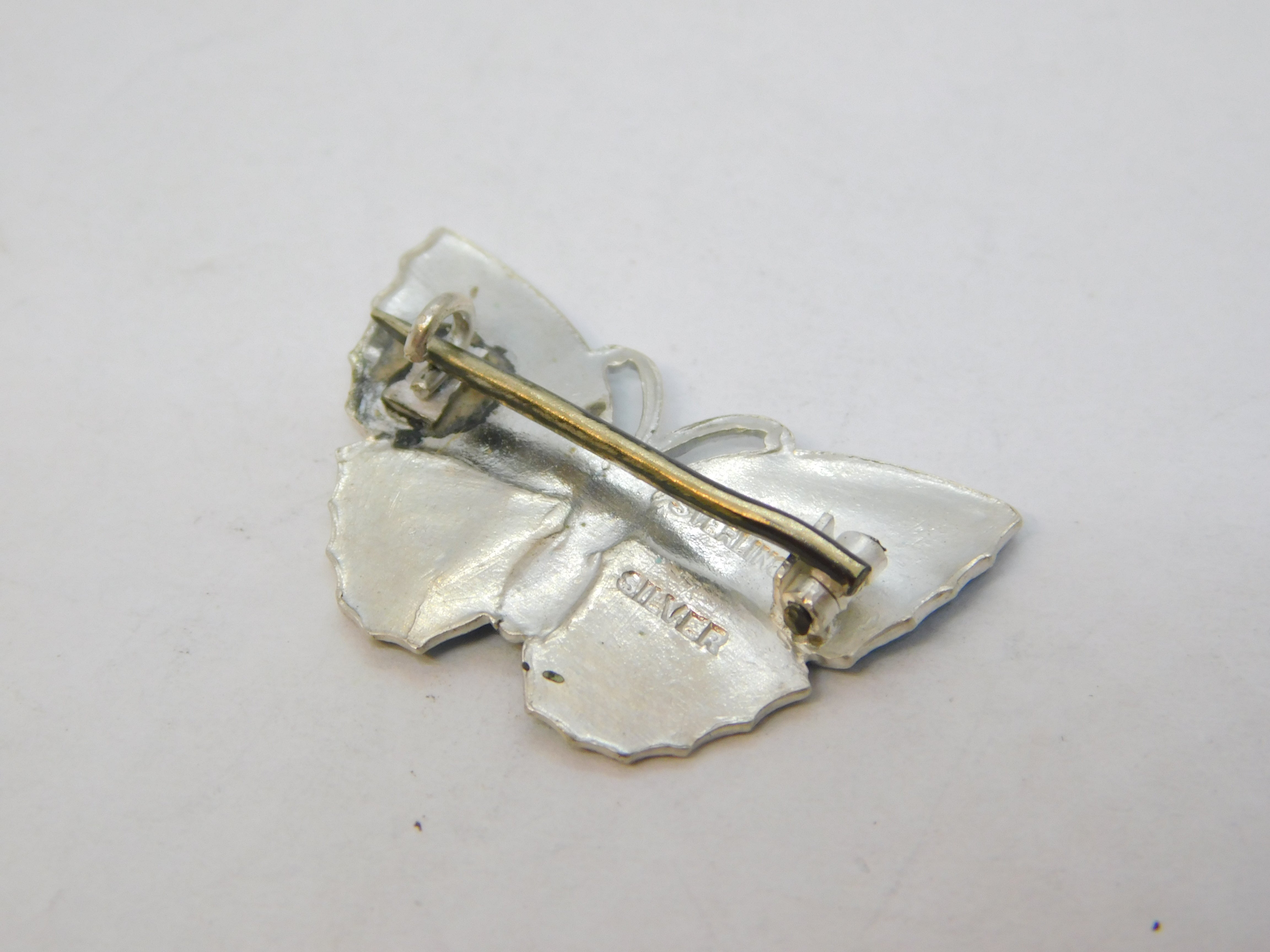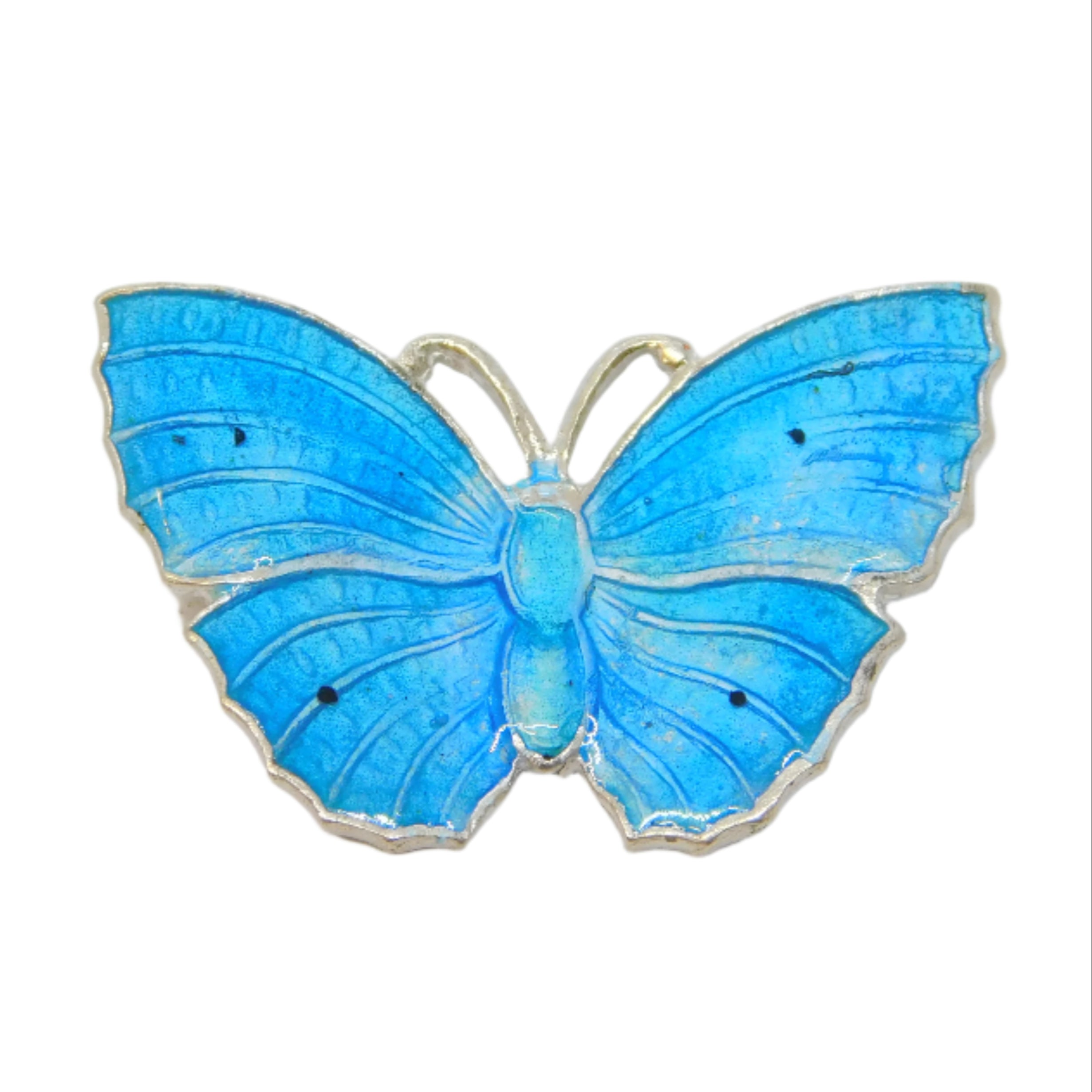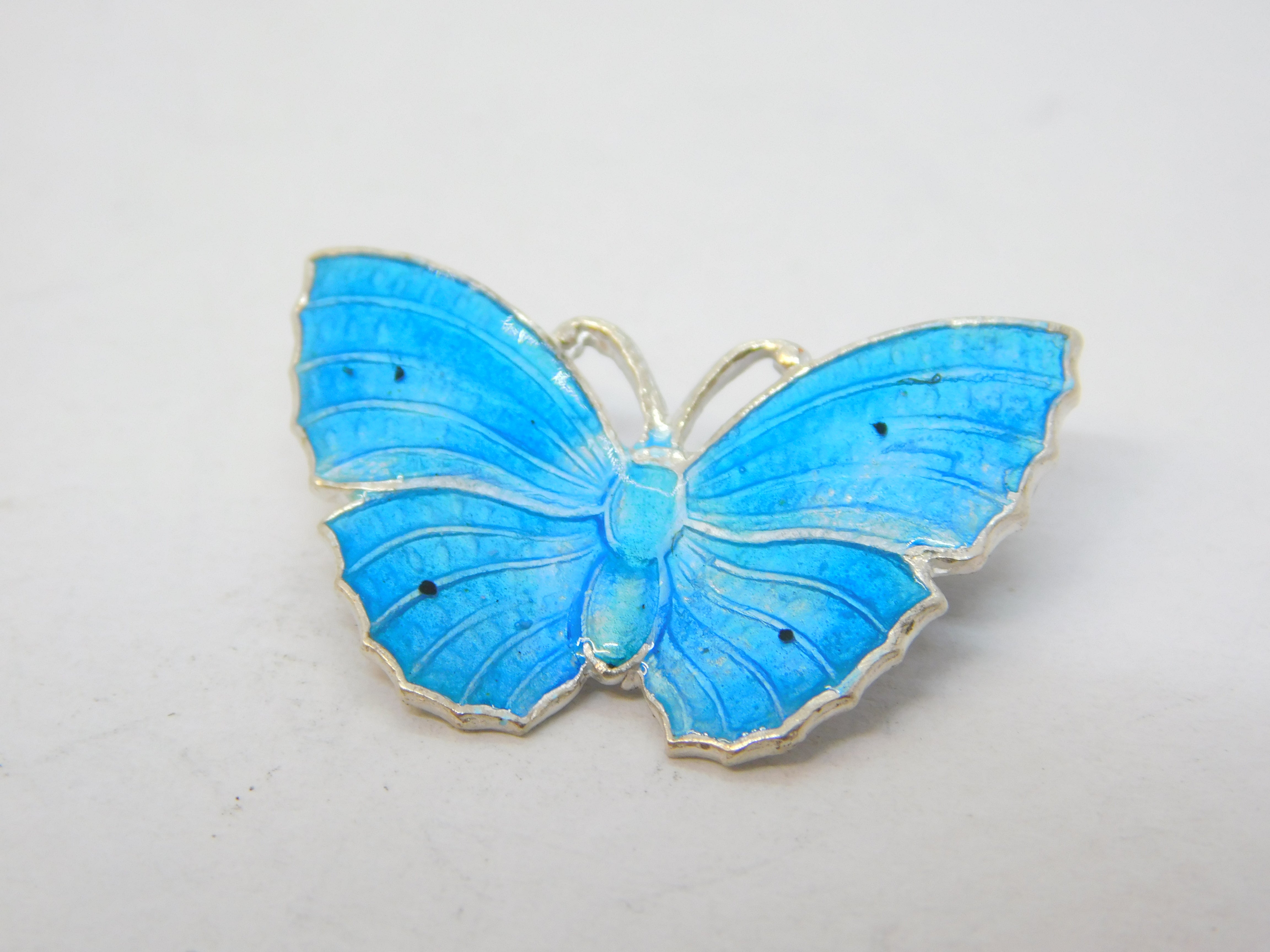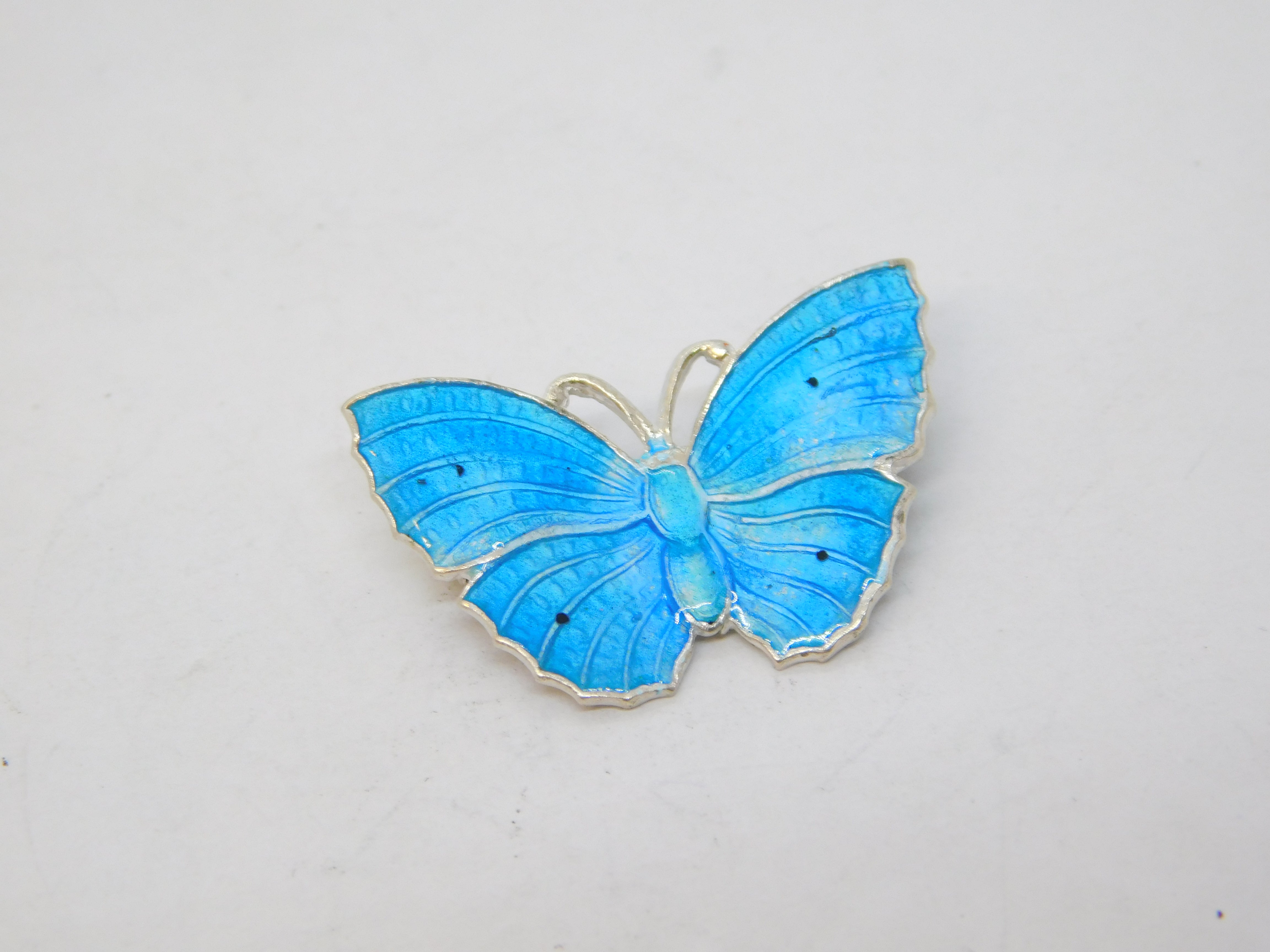 Sterling Silver Blue Guilloche Enamel Butterfly Brooch Antique c1920 Art Deco