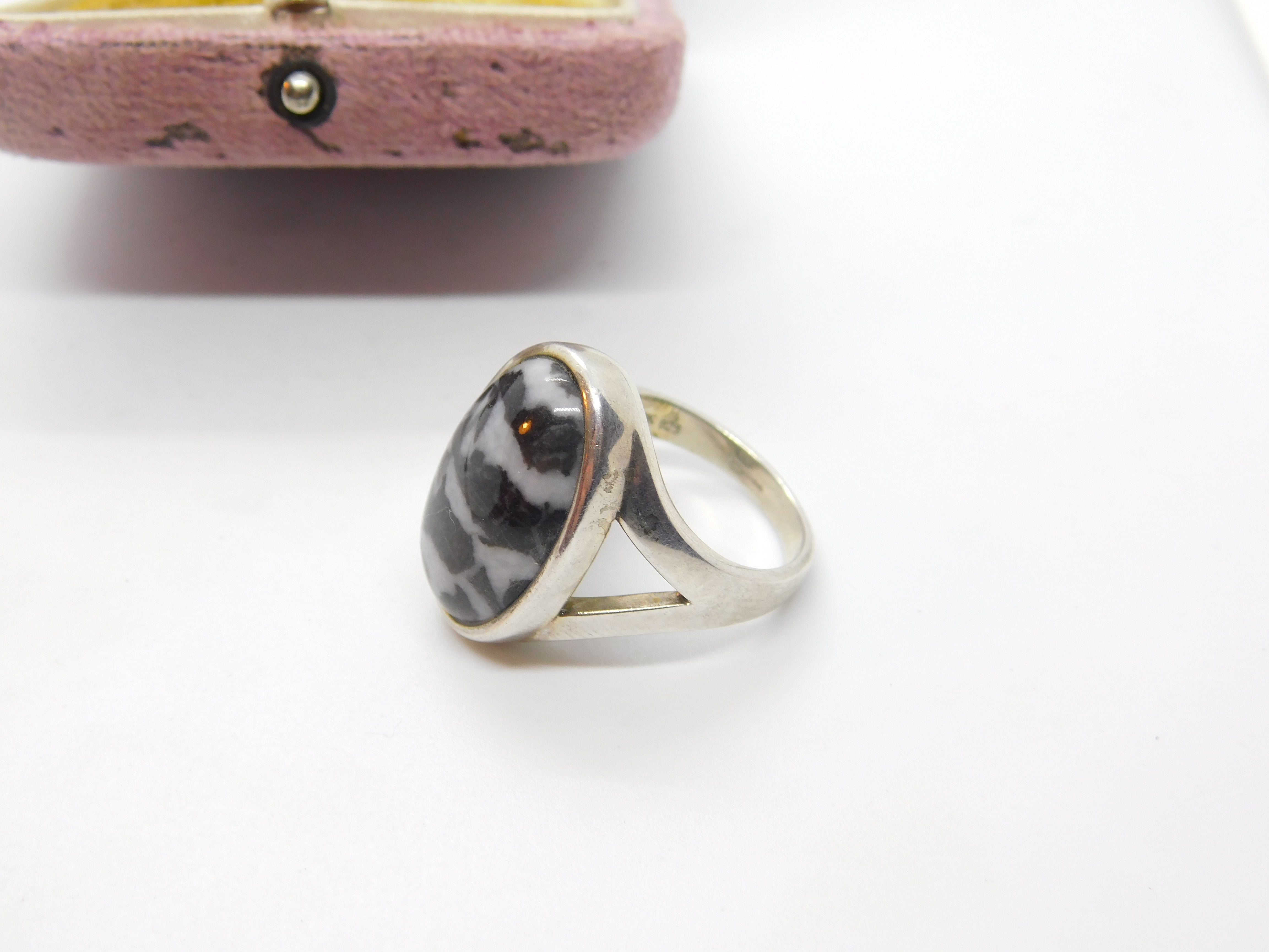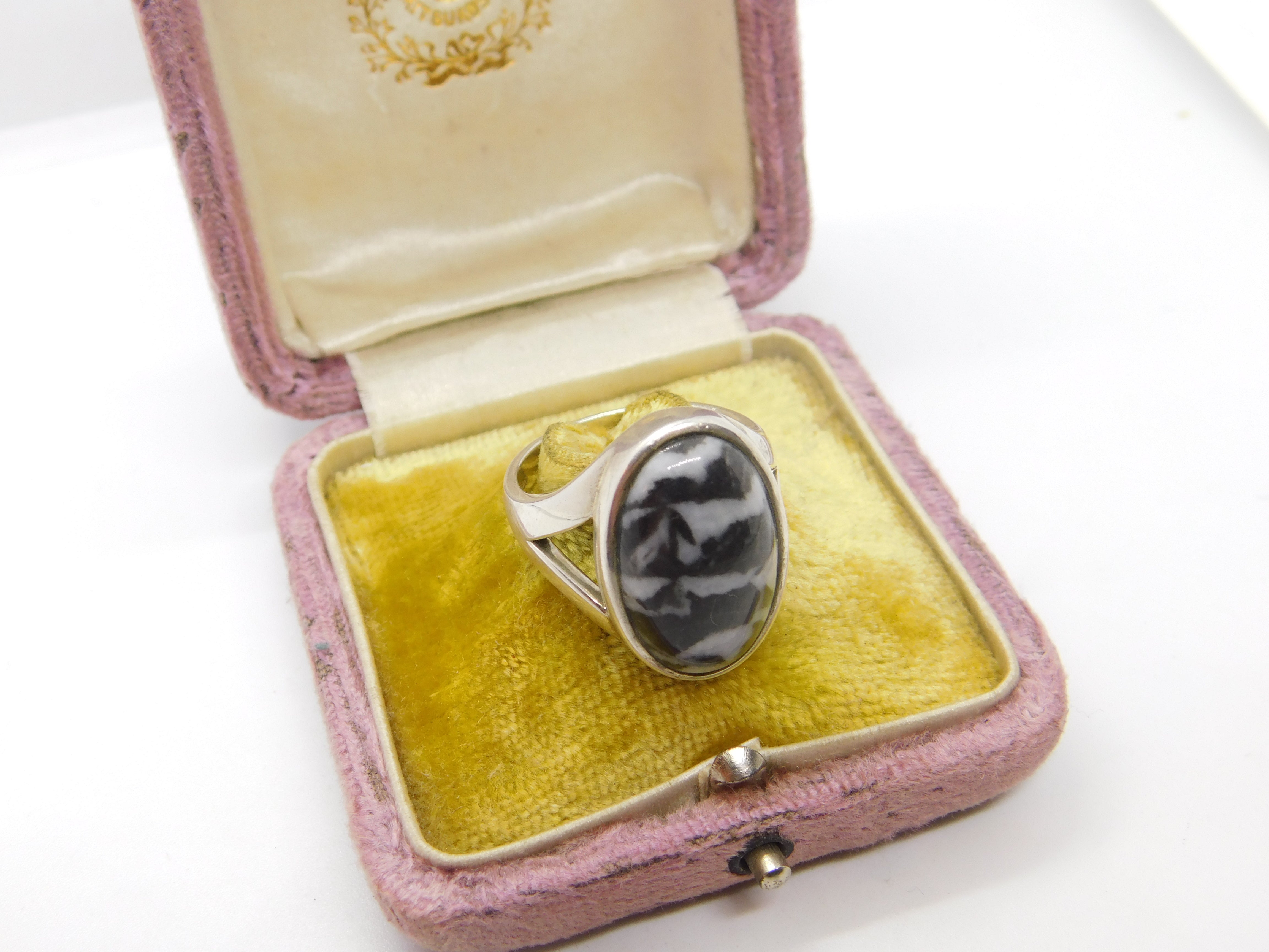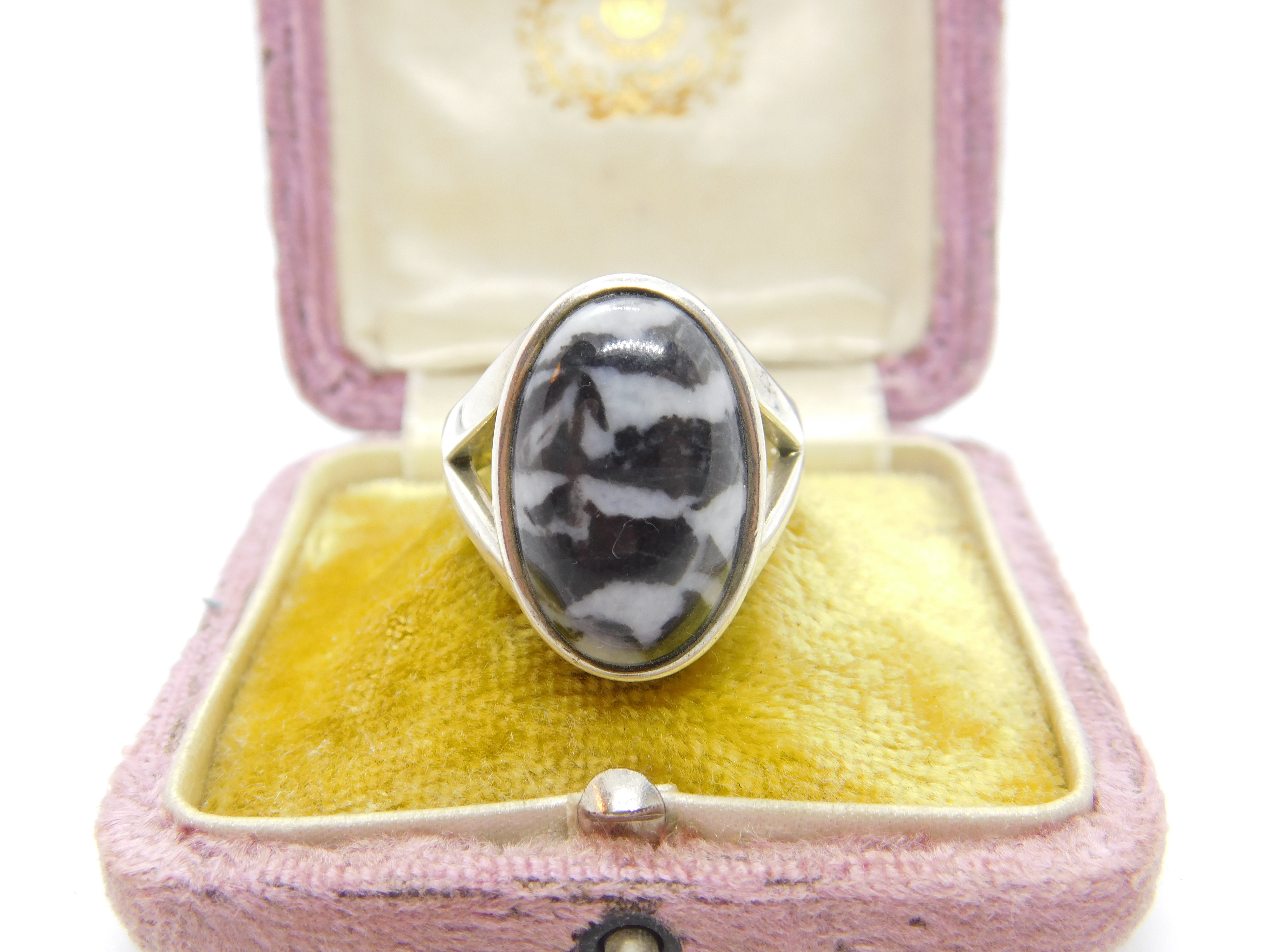Sterling Silver & Cabochon Zebra Marble Signet Ring Vintage 2007 Birmingham