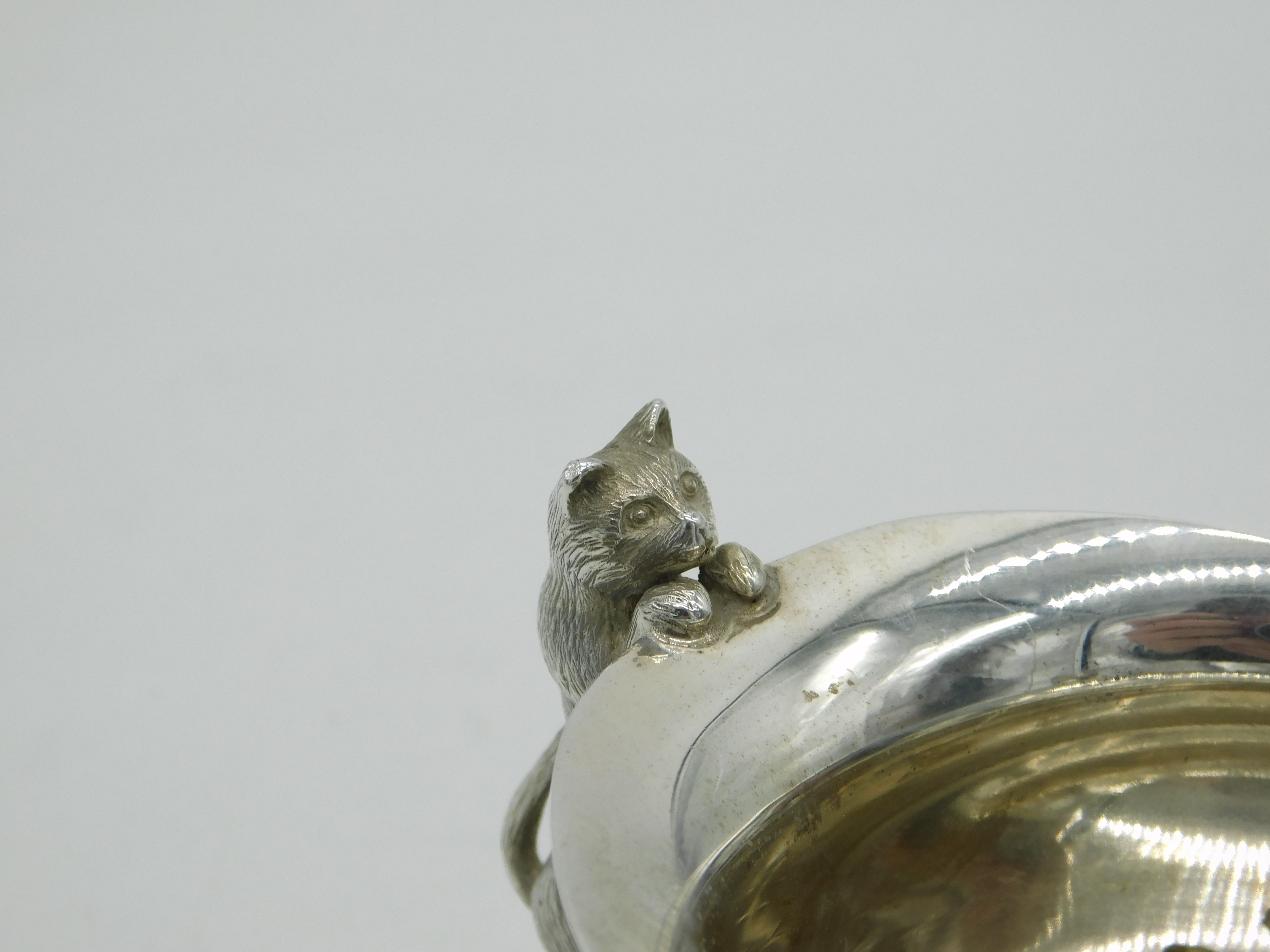 Sterling Silver Cat Kitten Handled Sugar Bowl Vintage 1994 Garrard & Co. London
