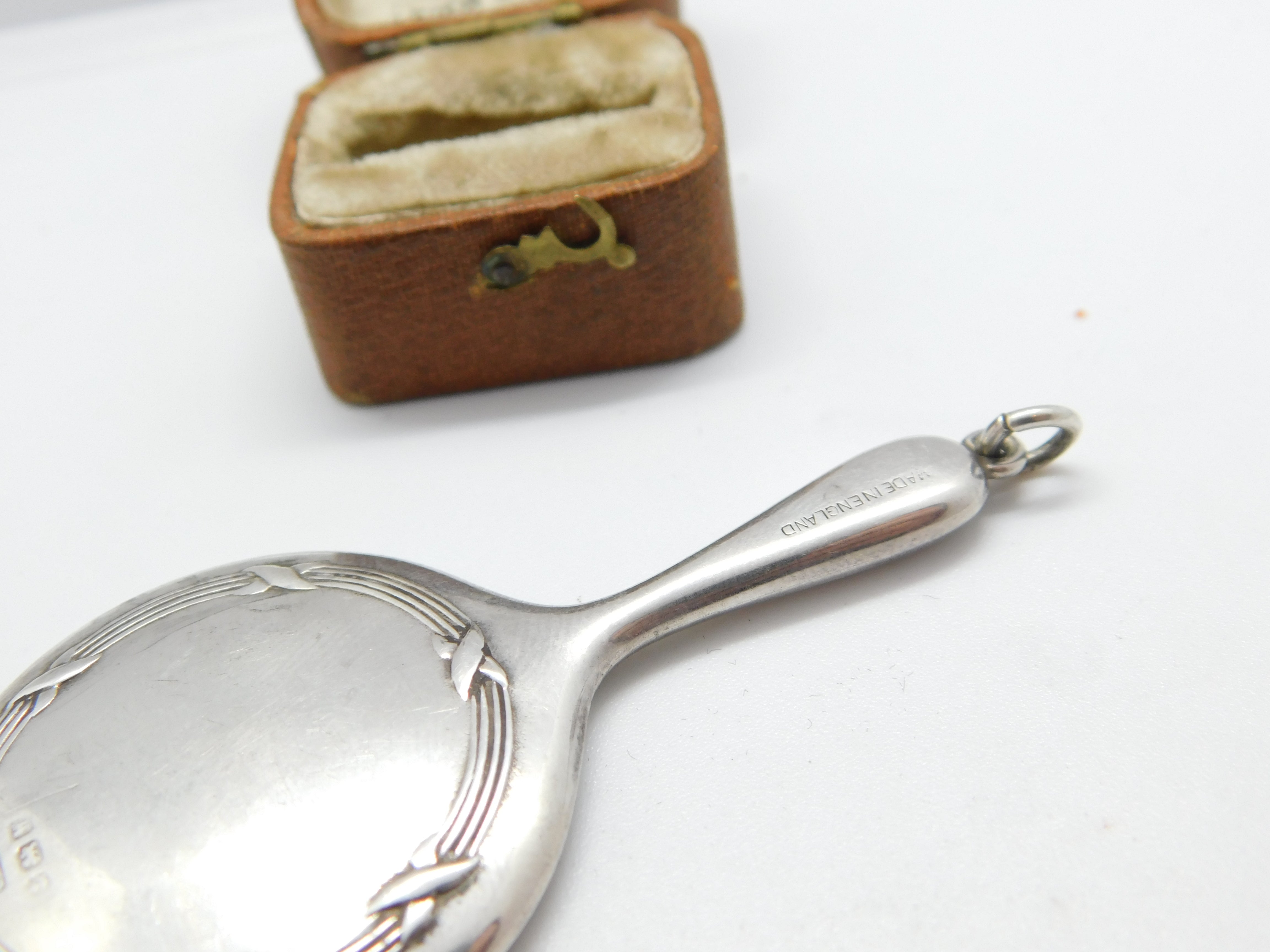 Sterling Silver Chatelaine Mirror Fob Pendant 1921 Birmingham Antique Art Deco