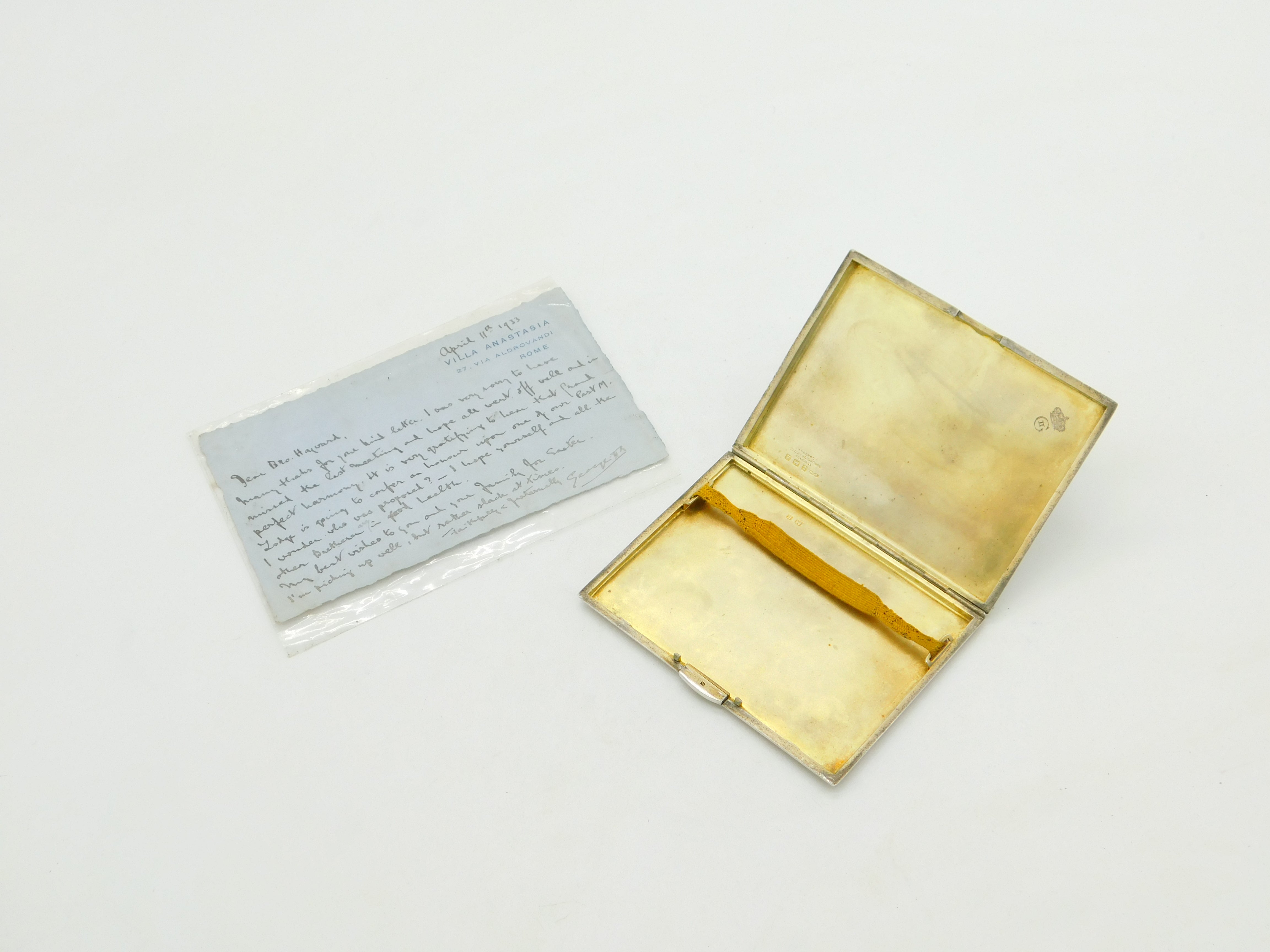 Sterling Silver Cigarette Case Owned by King George II of Greece with Signed Letter Antique 1932