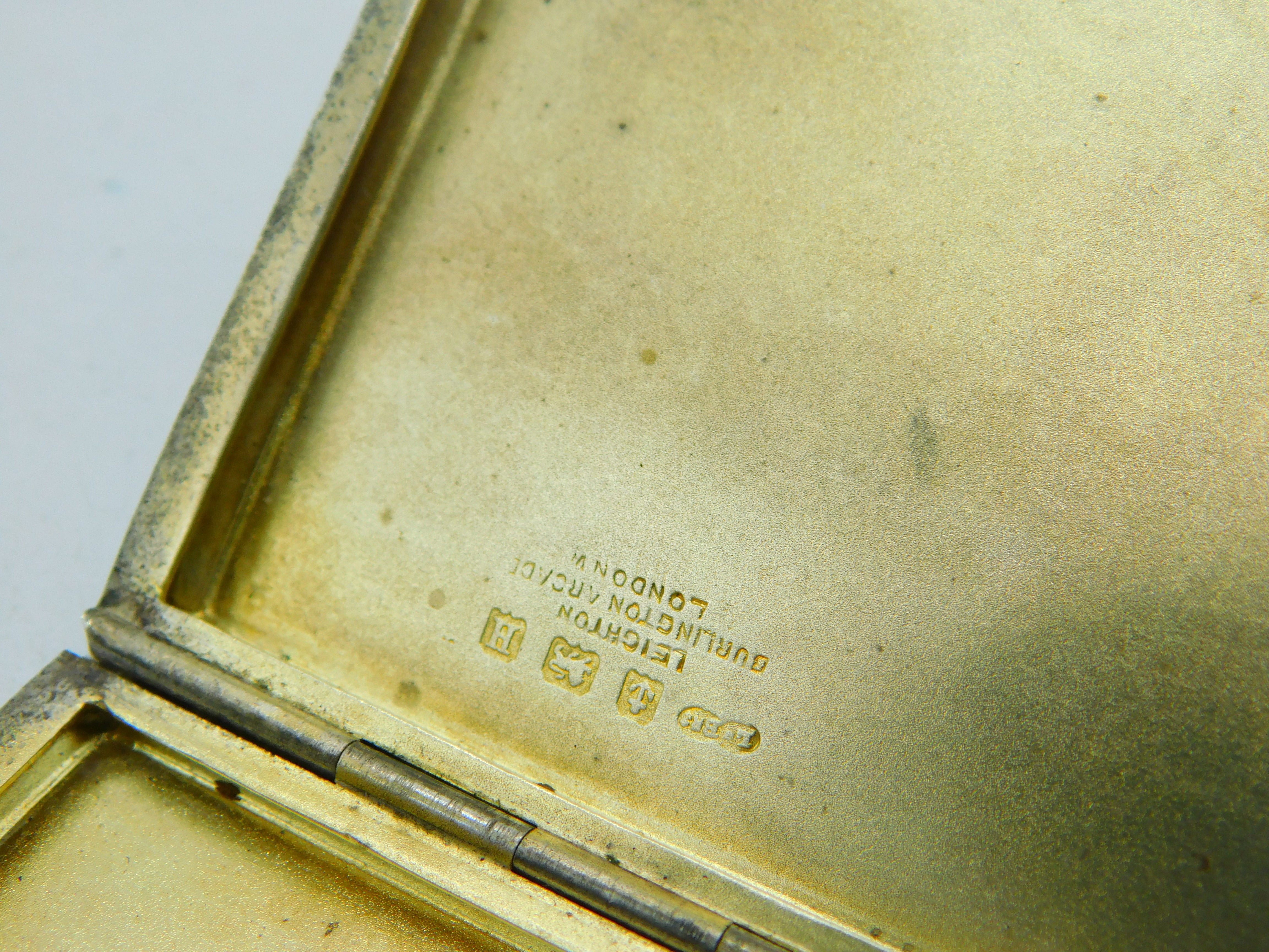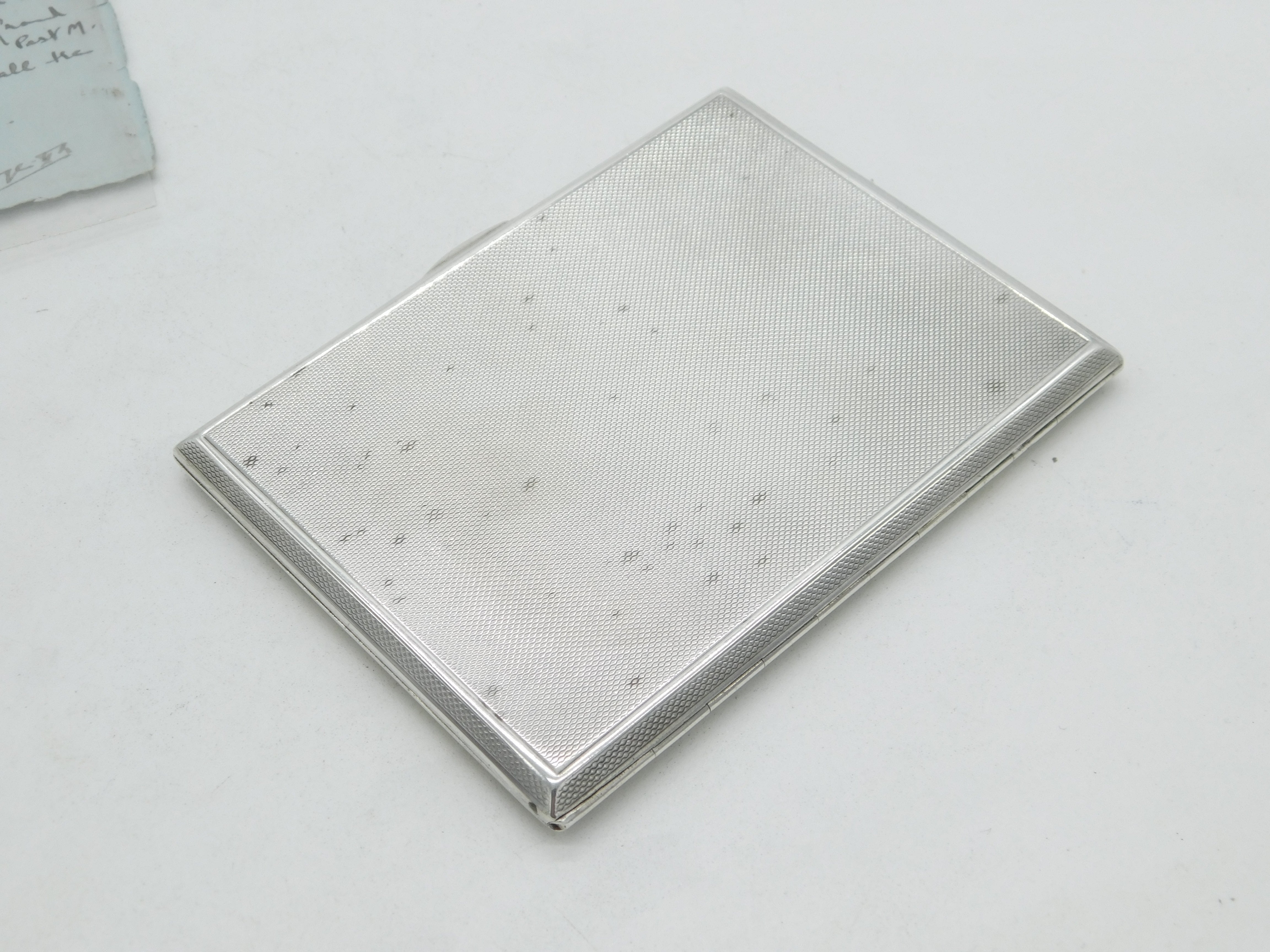 Details: A fantastic and wonderfully designed antique art deco Royal interest sterling silver engine turned cigarette case belonging to King George II of Greece engraved with the King's Royal intaglio depicting a crown over 'G. II' to the corner. Gilded to the interior and hallmarked Birmingham 1932. Forced to abdicate following the Greco-Turkish and with Greece declaring as a republic in 1924 King George II was forced into exile until monarchy was restored in 1935. This particular cigarette case is included with a handwritten letter from George II writing from Rome dated 'april 11th 1933' during his period of exile, in relation to his freemasonry lodge and the health of his friend signed off 'Faithfully & gratefully George. II'. A truly unique collection that would make a superb addition to any collection with lovely provenance.
