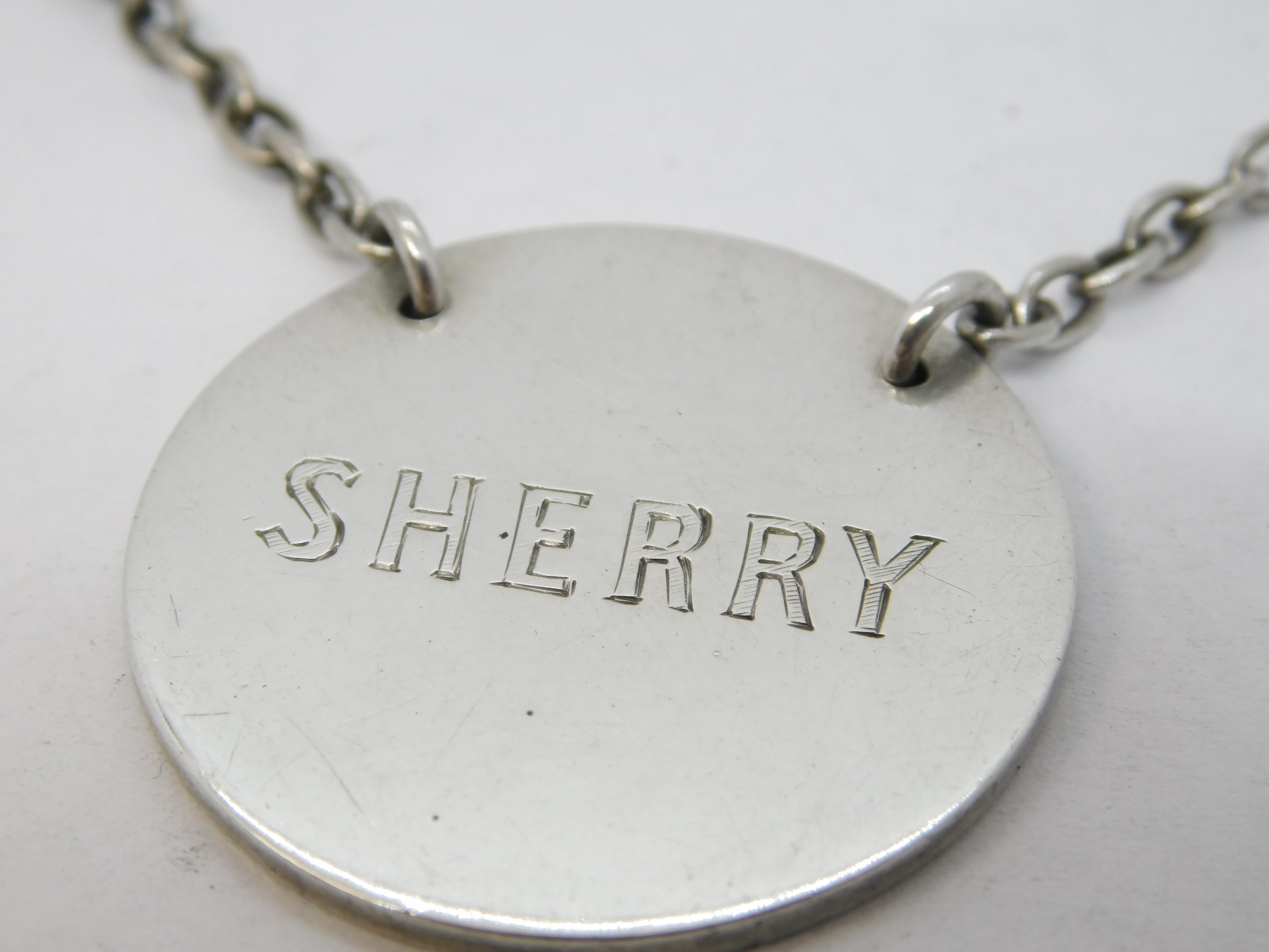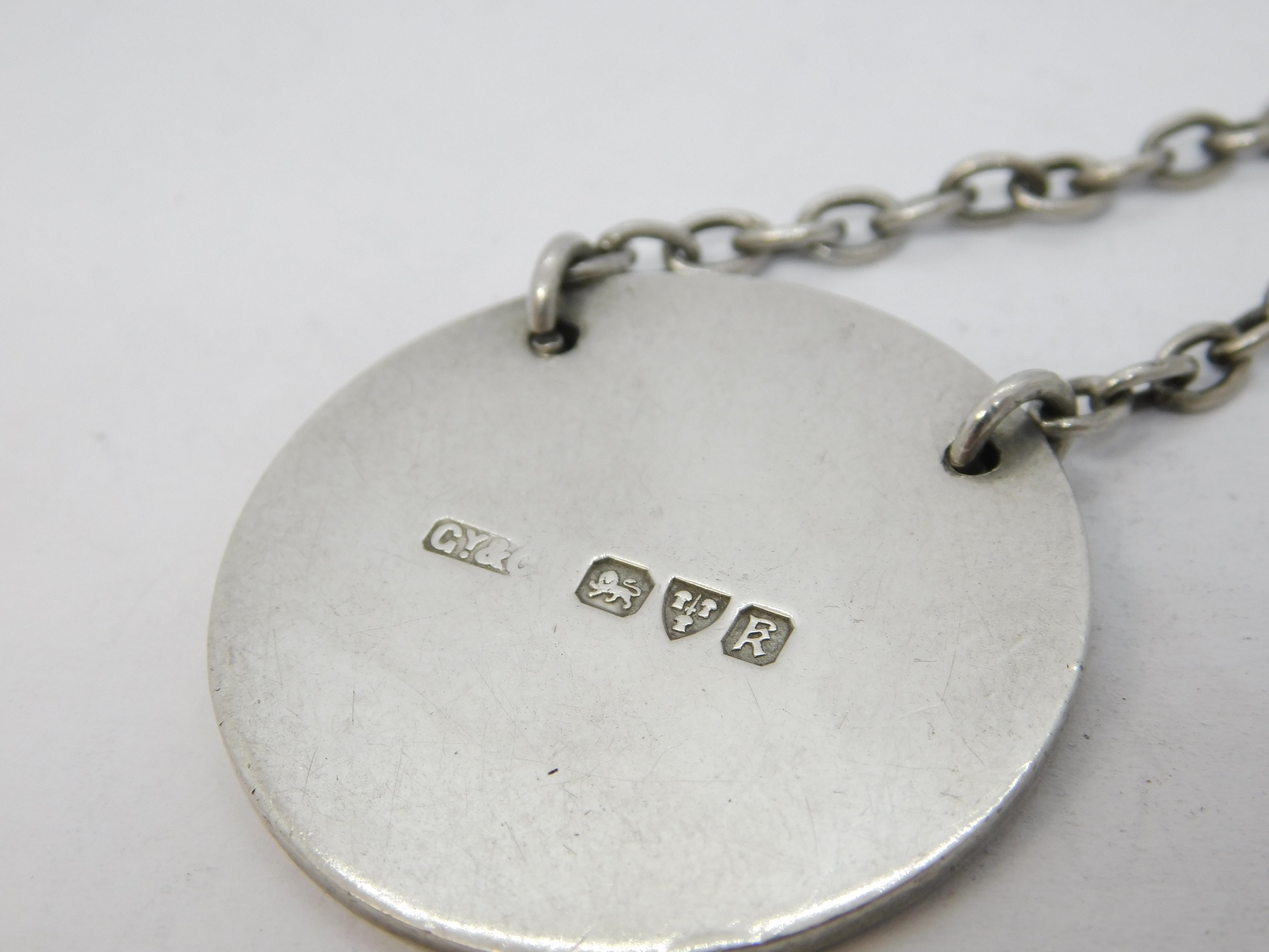 Sterling Silver Circular Sherry Decanter Label Antique 1935 Chester Art Deco