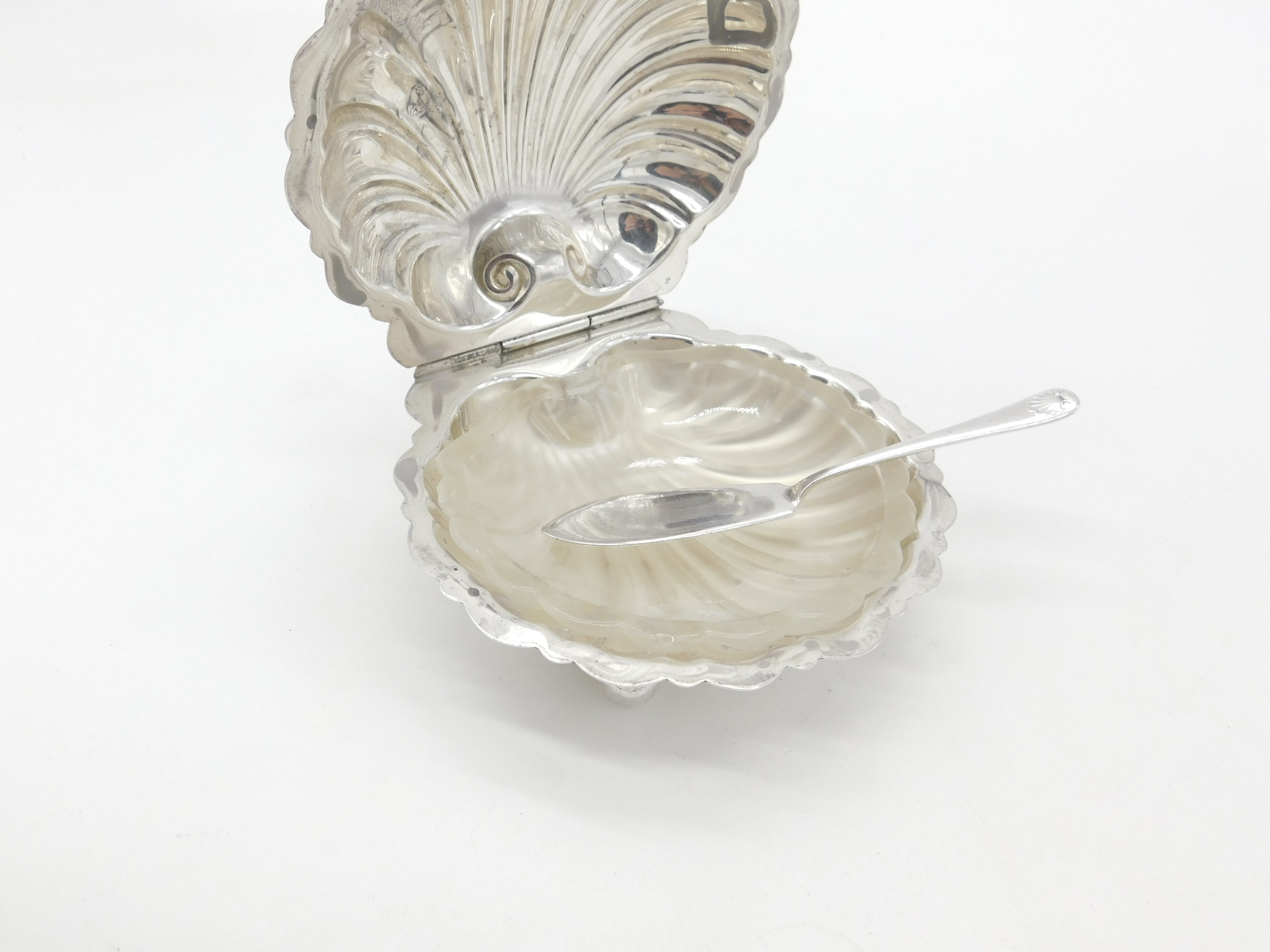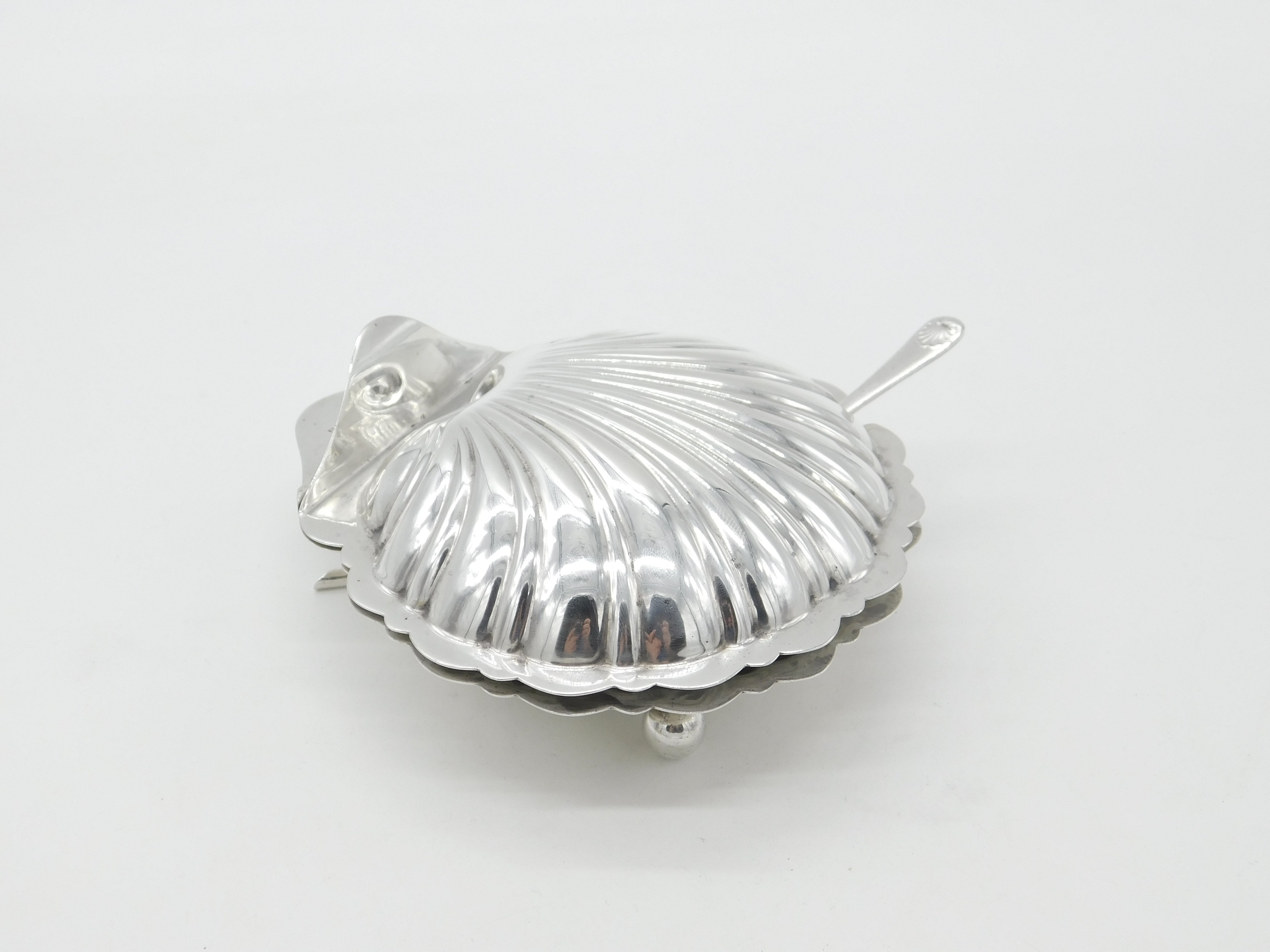 Sterling Silver Clam Shell Form Butter Dish & Knife 1926 Birmingham Antique
