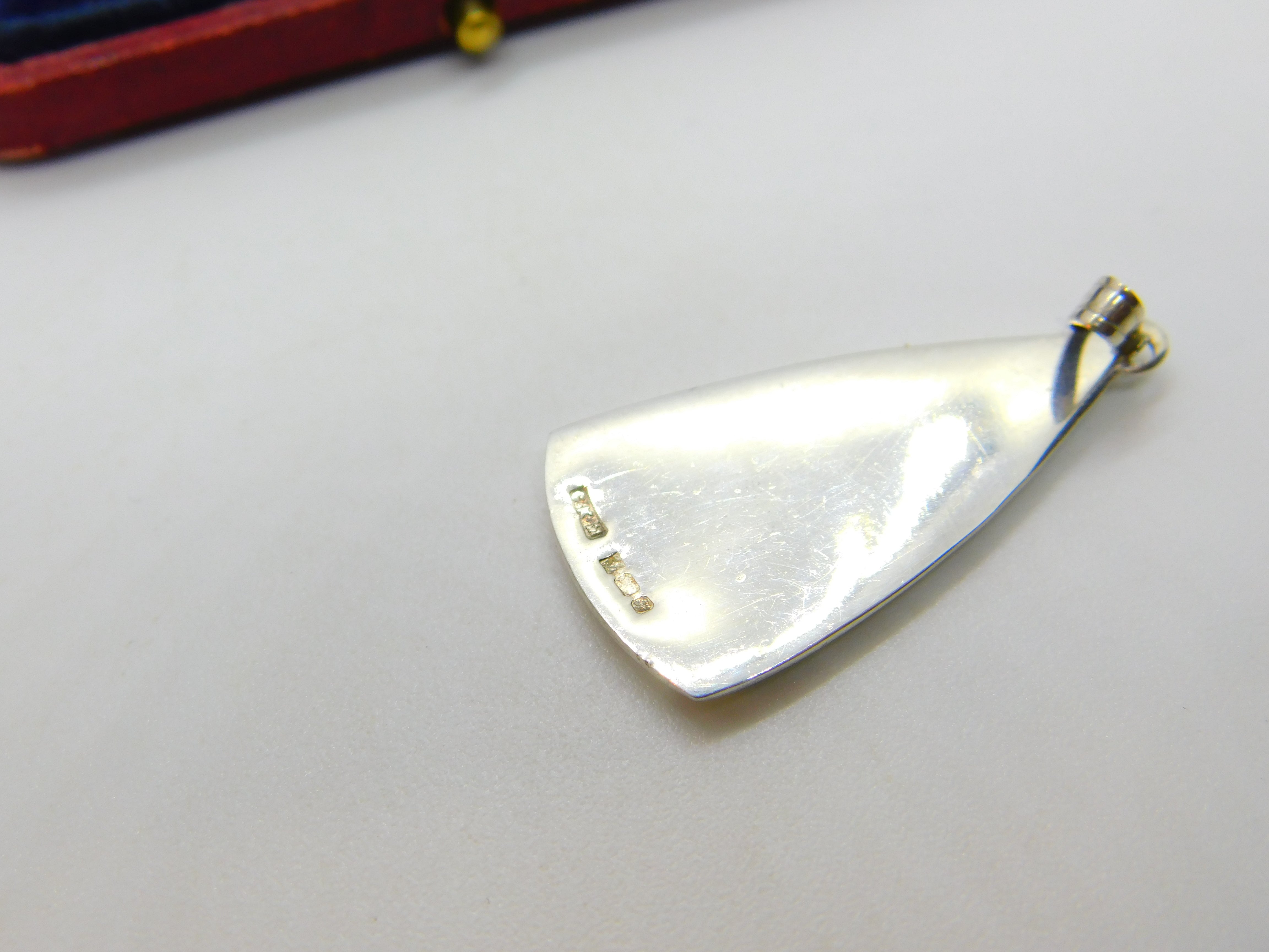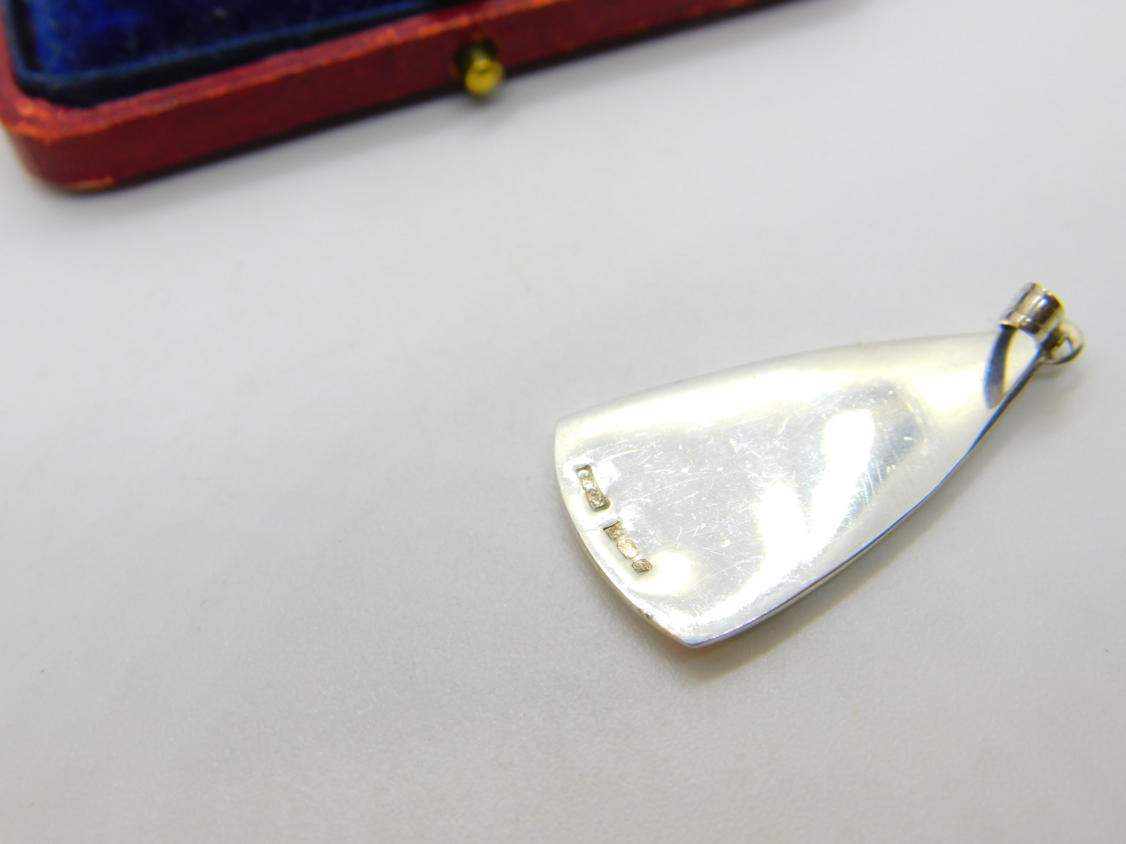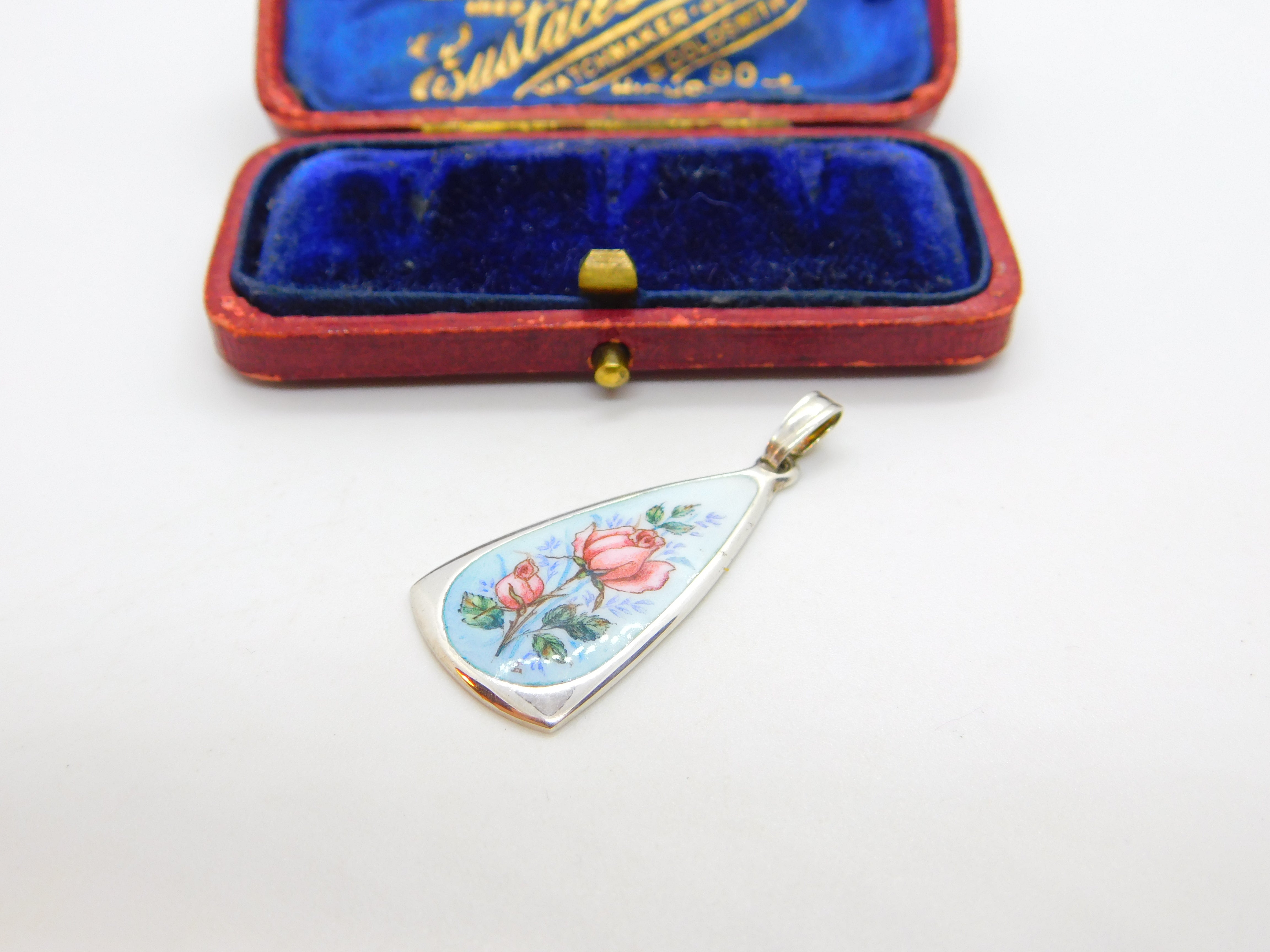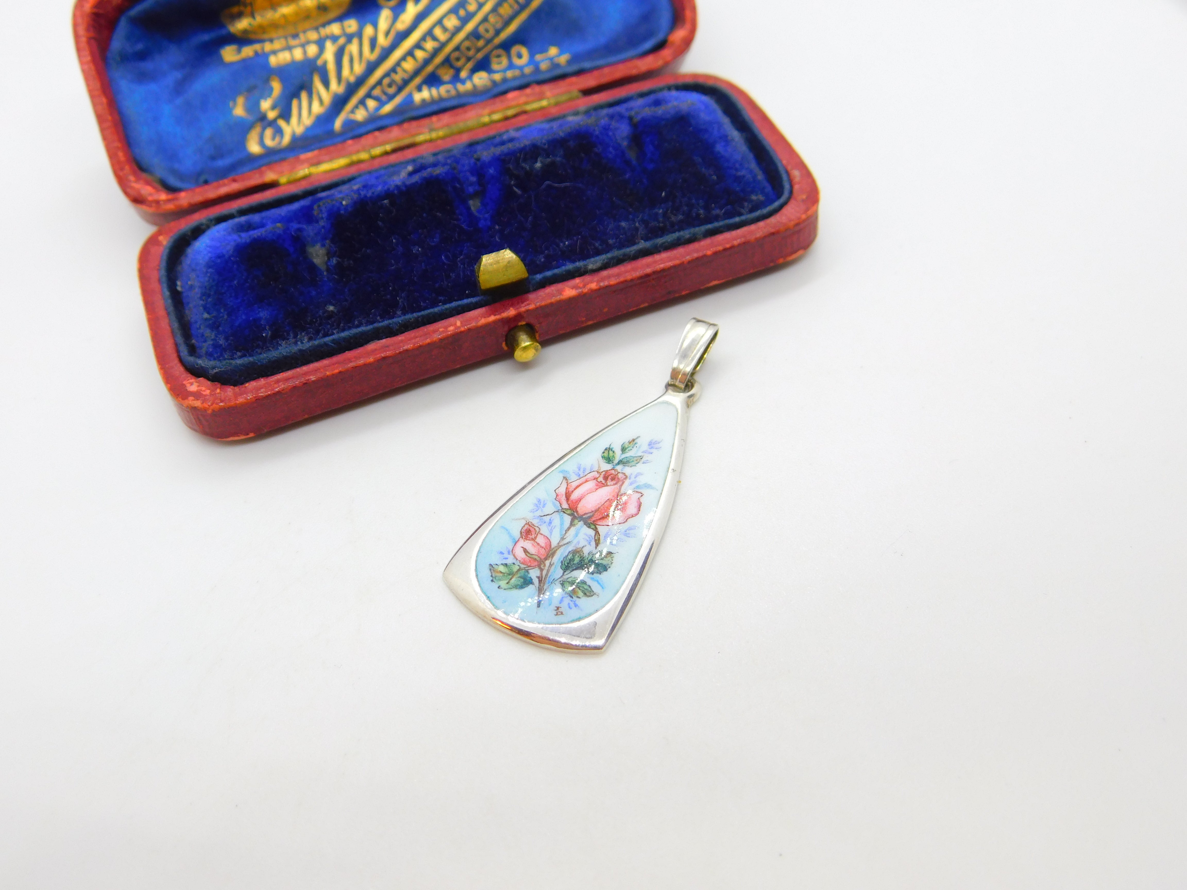 Sterling Silver & Colourful Enamel Rose Flower Drop Pendant 1983 Birmingham