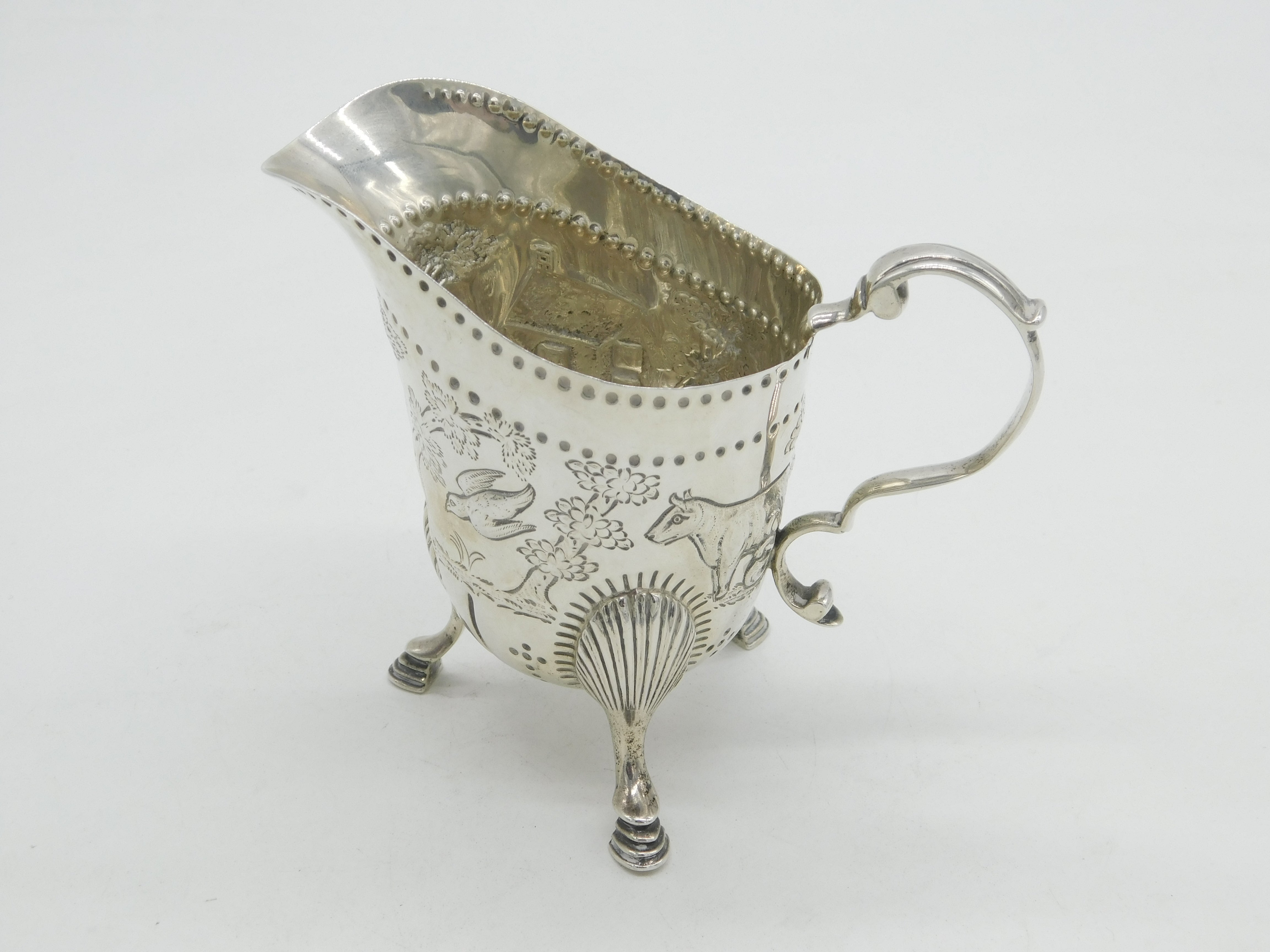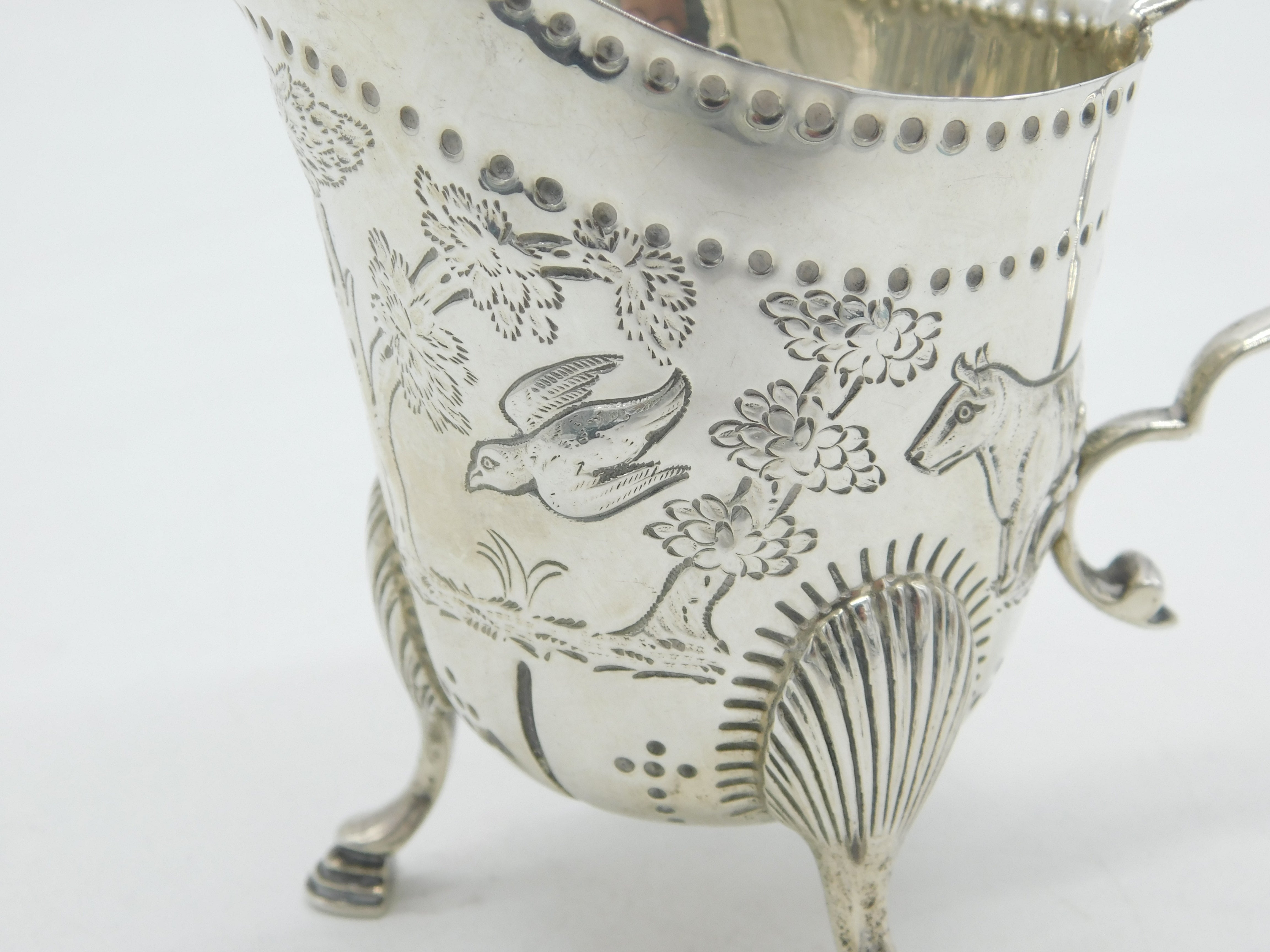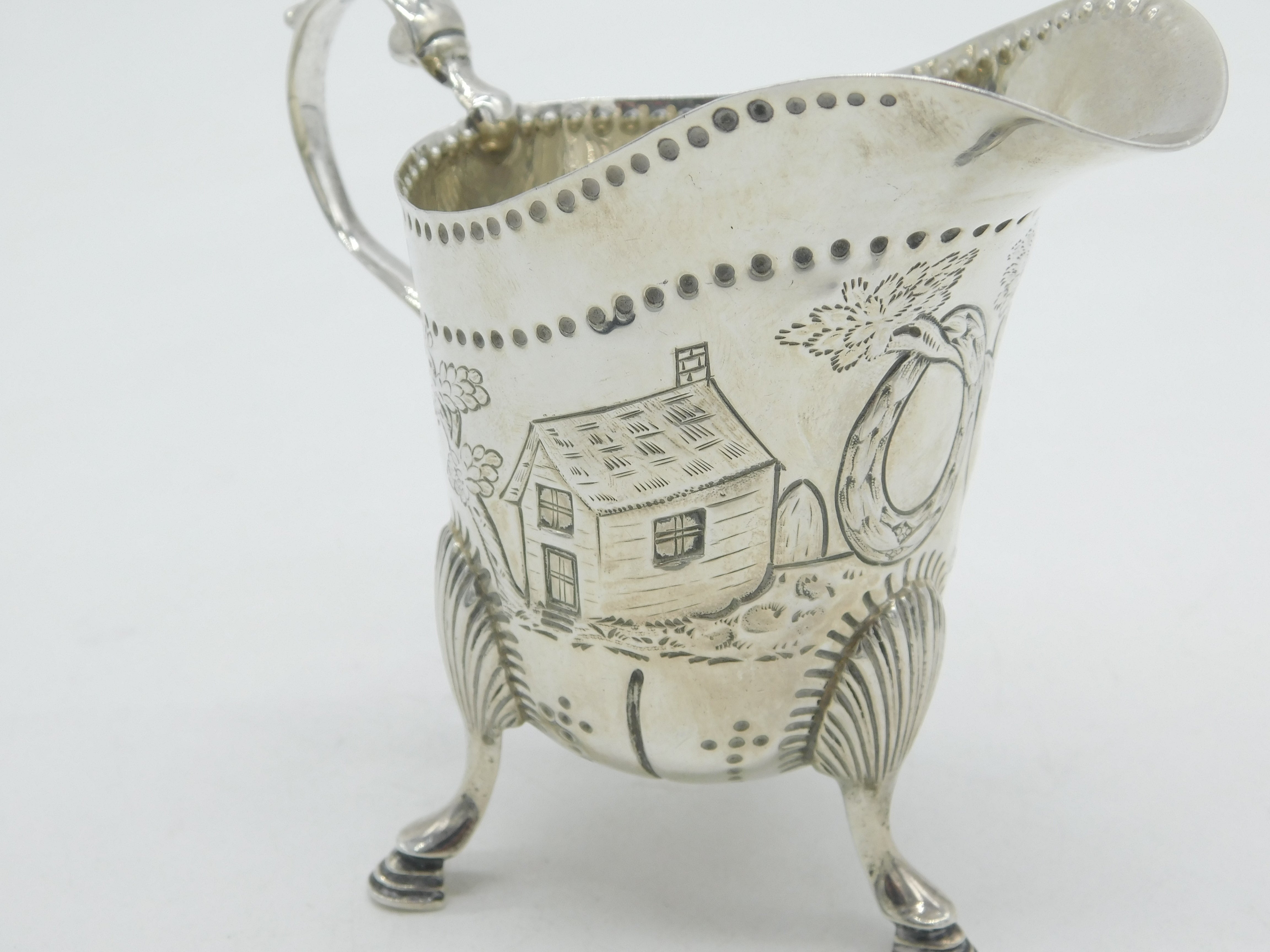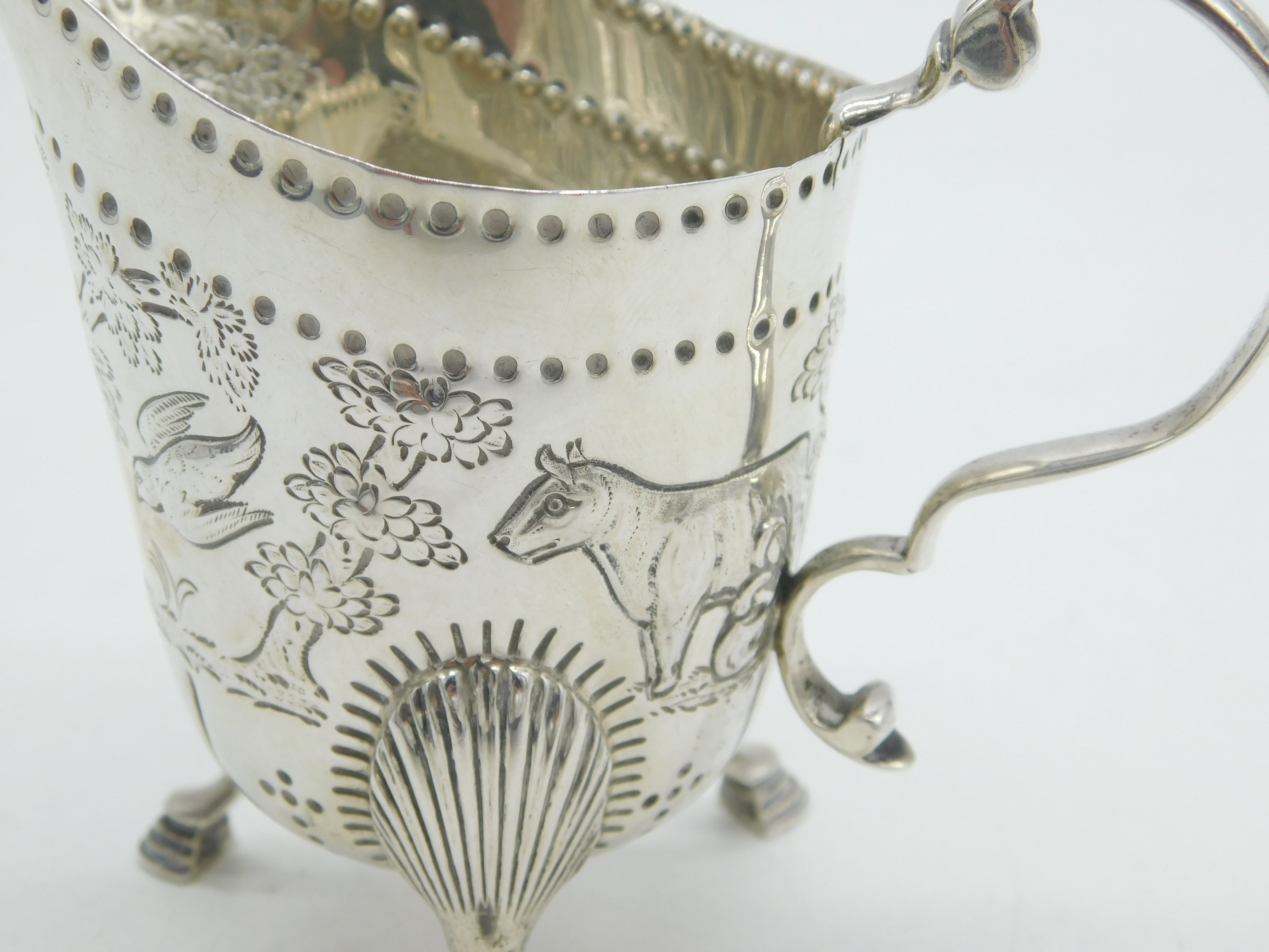Sterling Silver Countryside Pattern Cows & Birds Cream Jug Antique 1928 London
