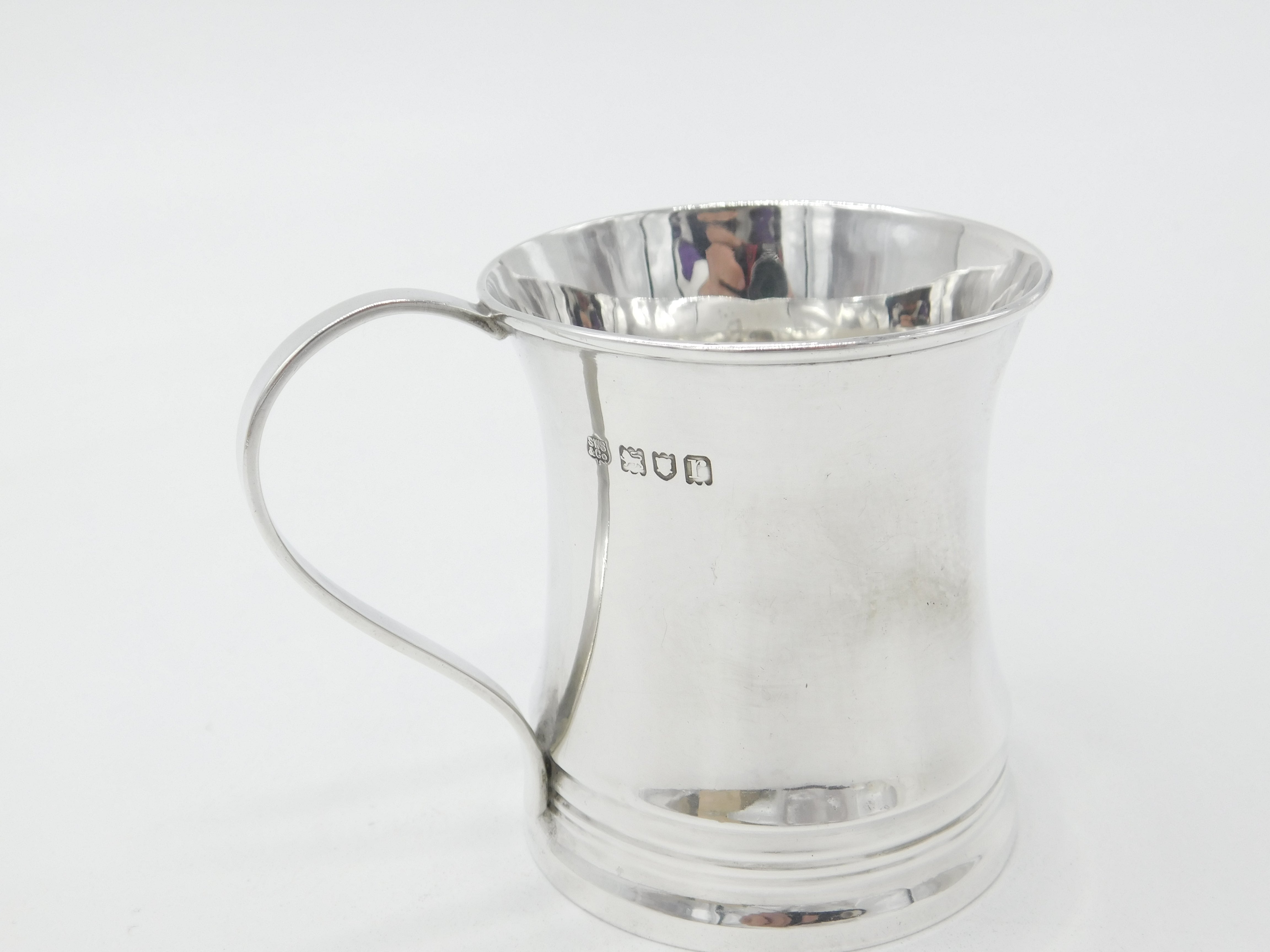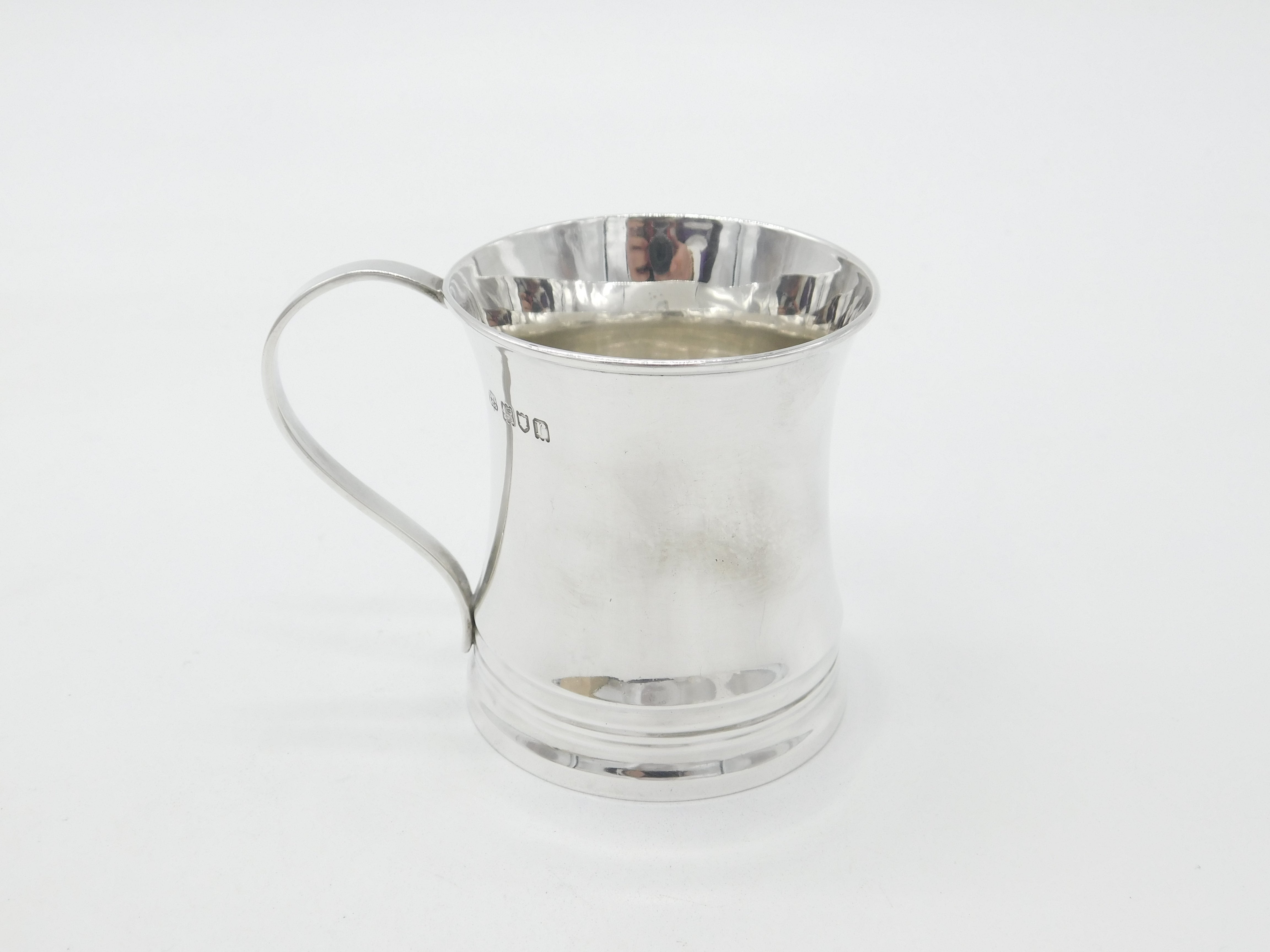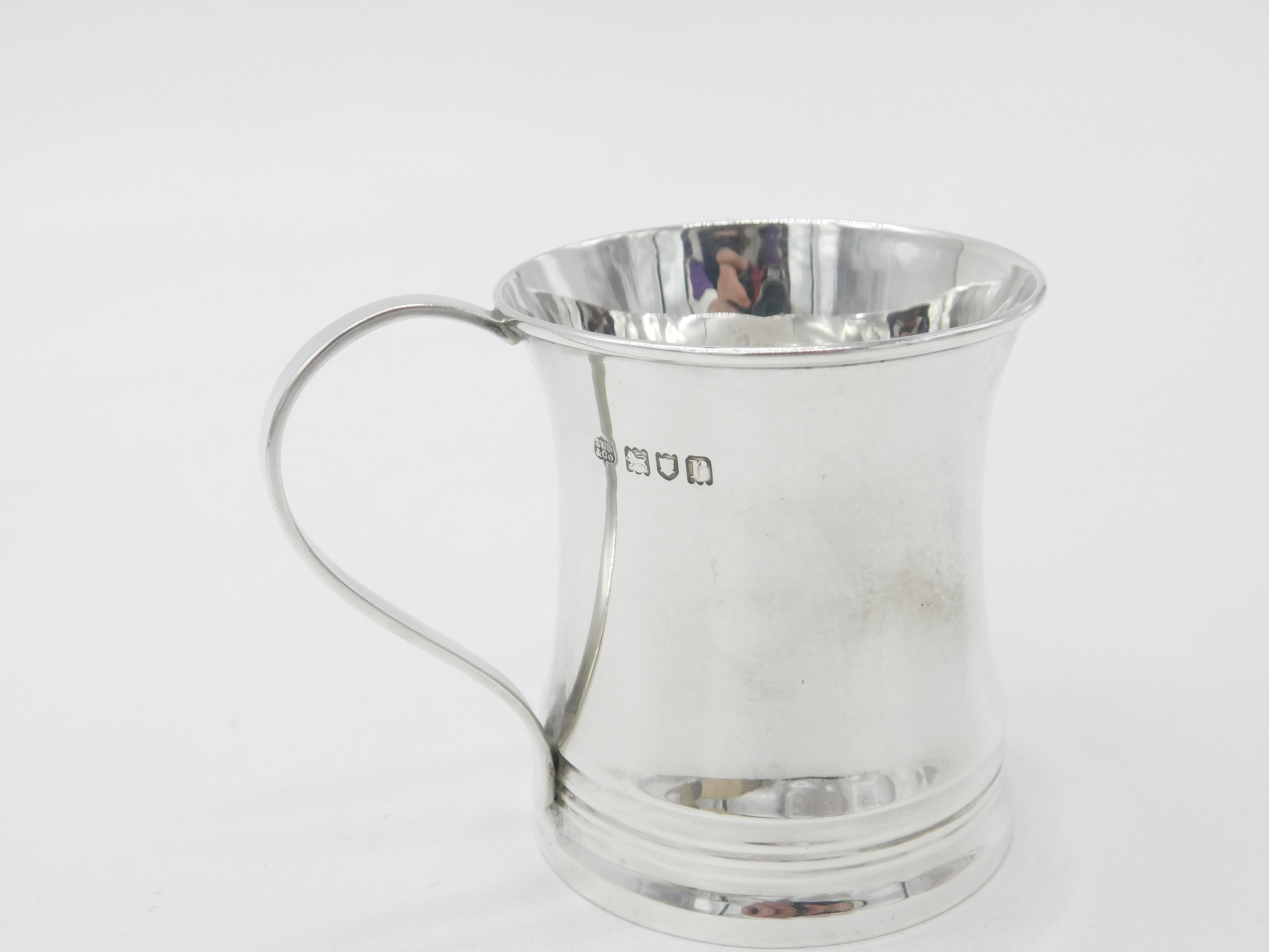 Sterling Silver Curved Form Christening Mug Tankard 1912 London Antique