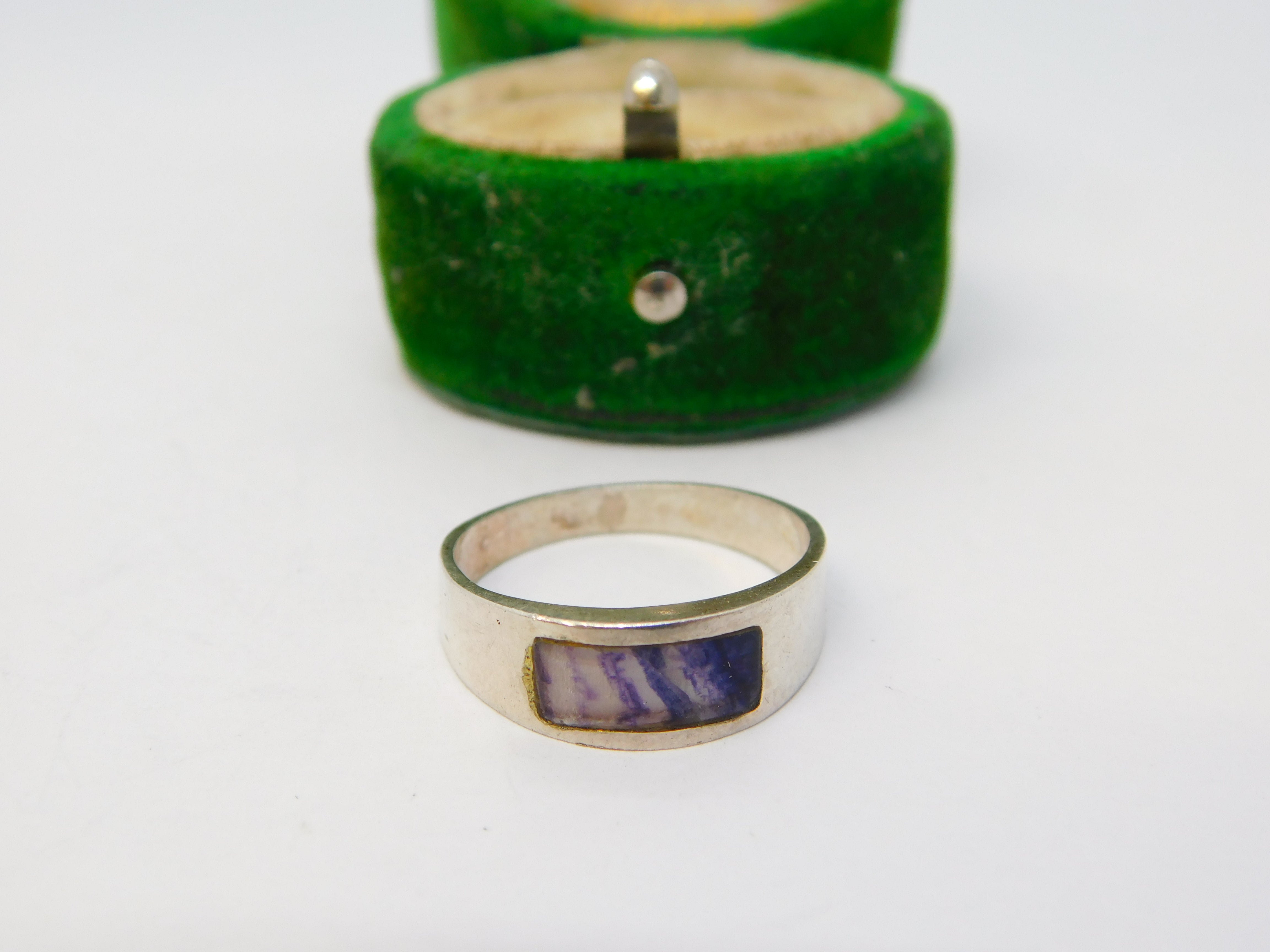 Sterling Silver & Derbyshire Blue John Set Dress Ring Vintage c1970