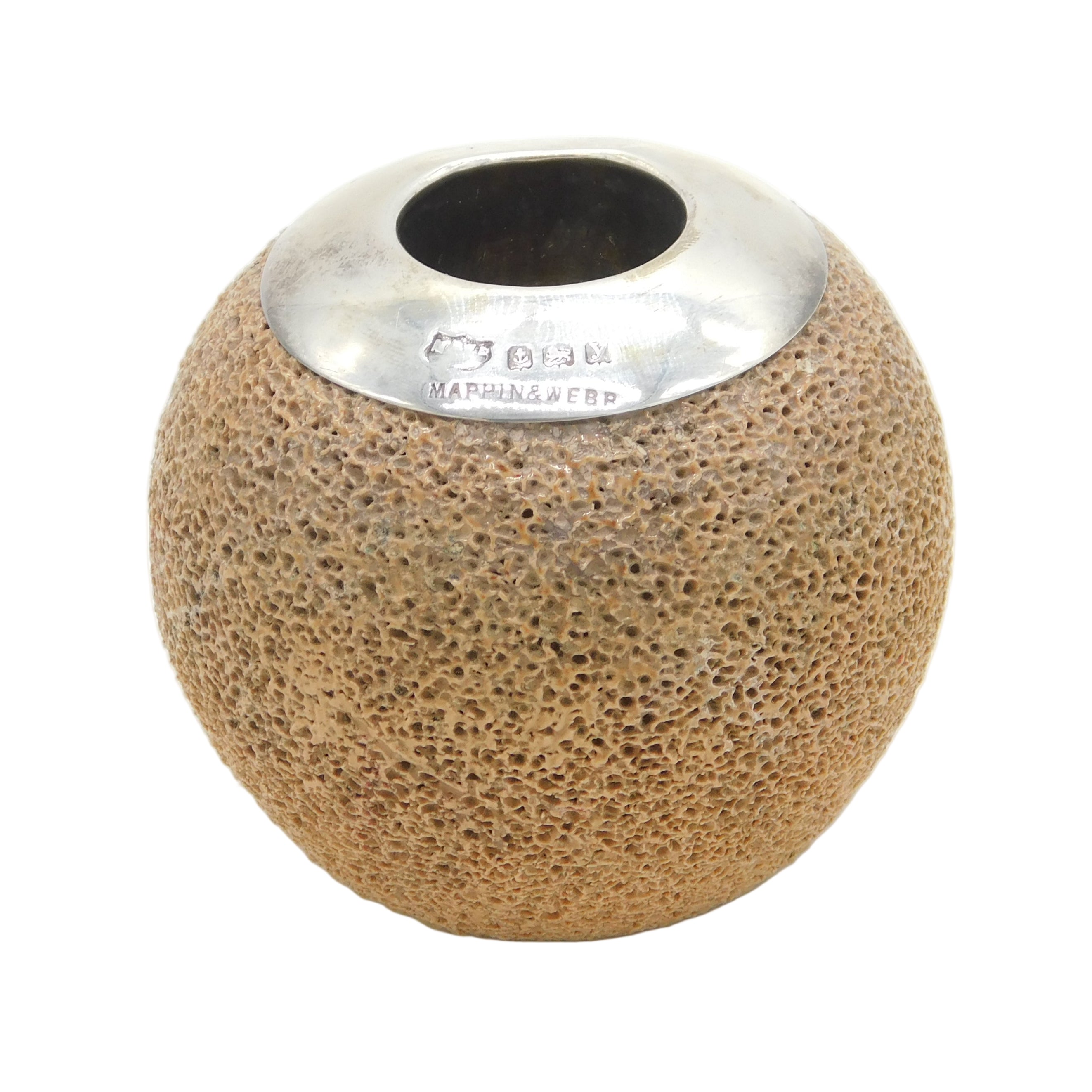 Details: A fantastic and wonderfully designed antique art deco sterling silver mounted Royal Doulton Stoneware match stick holder and striker with lovely detailing hallmarked Birmingham 1923 by Mappin & Webb. This is a wonderful item that would make a perfect gift or addition to any collection. We are more than happy to provide XRF reports for items upon request.