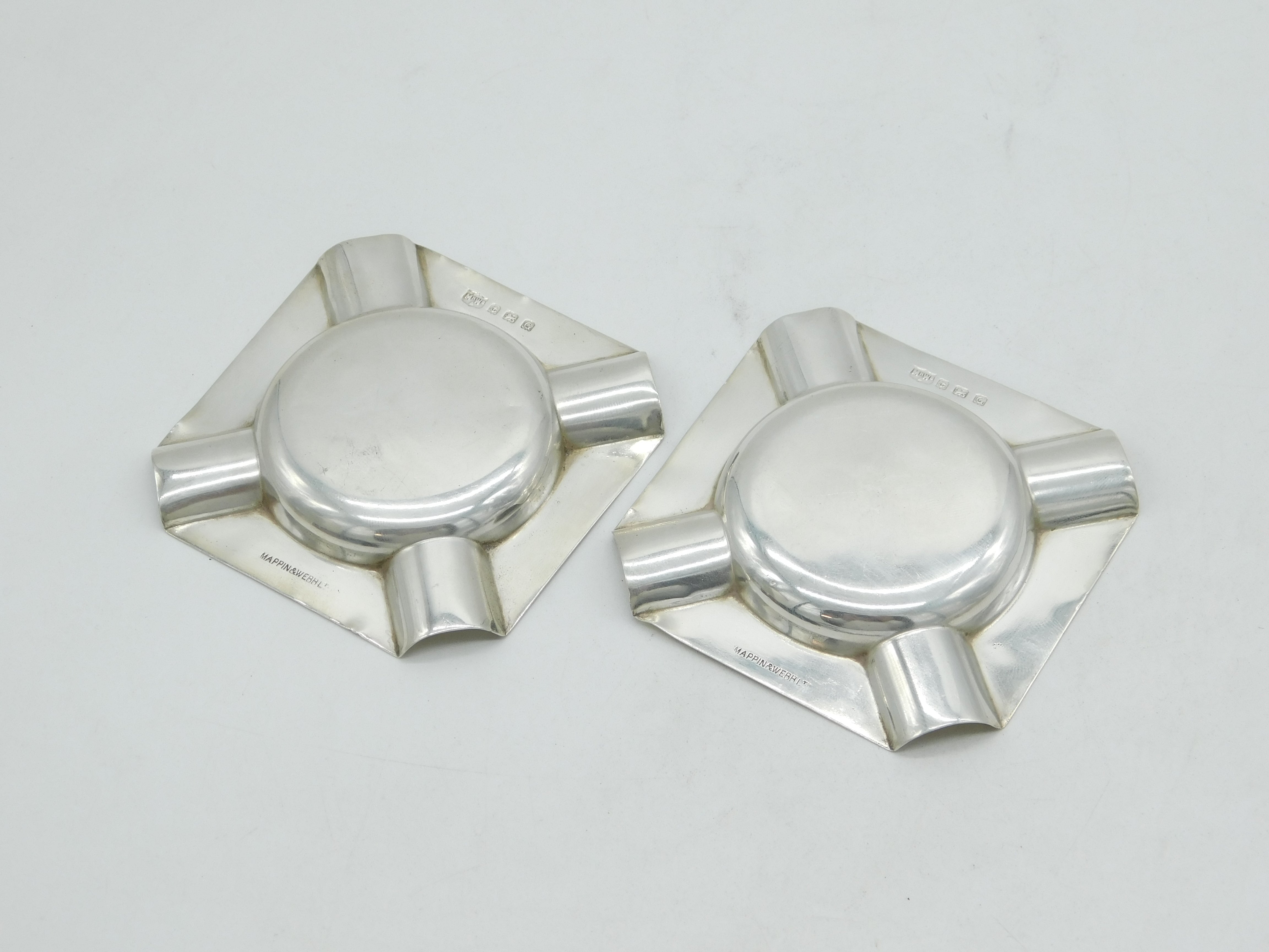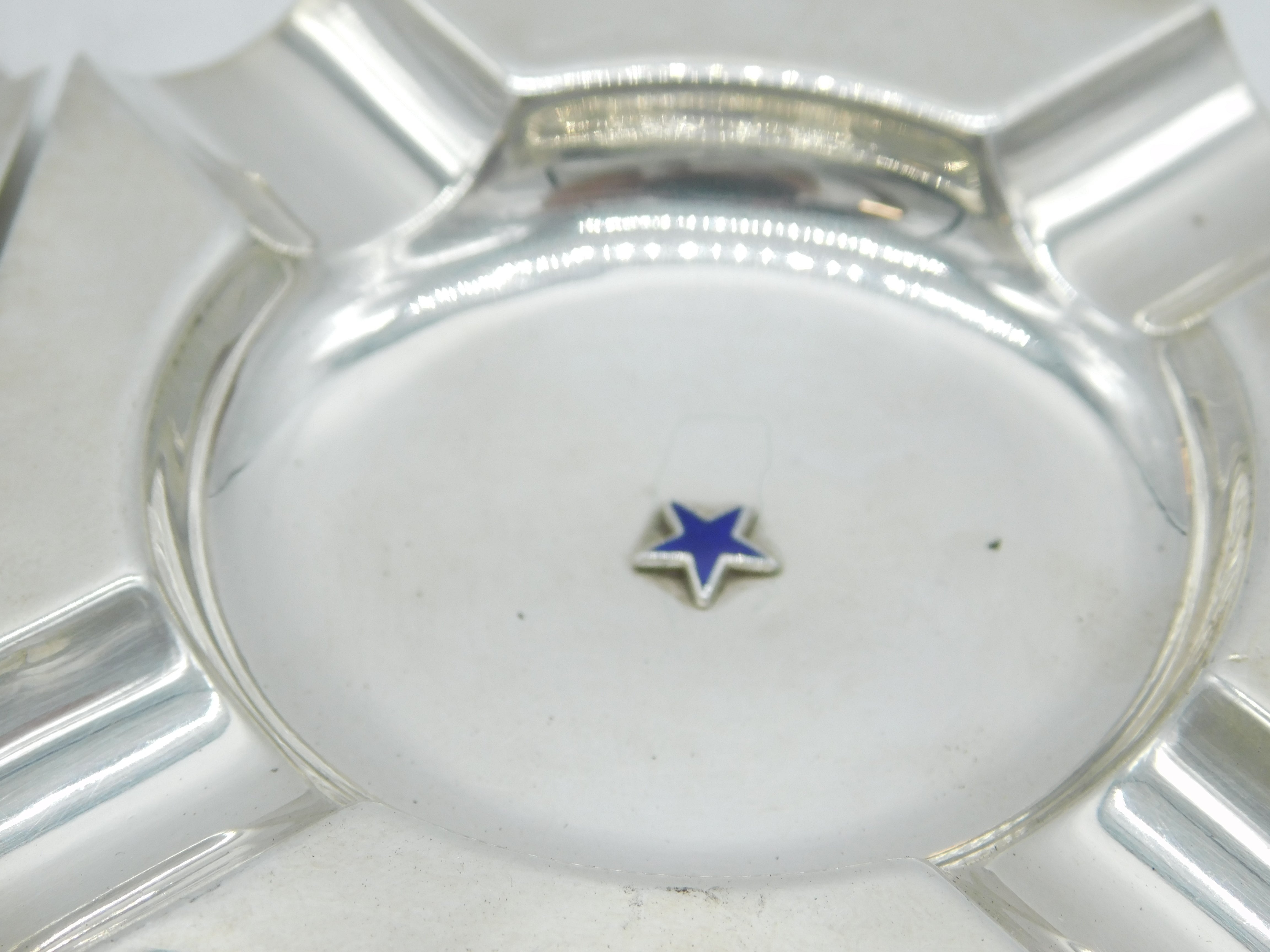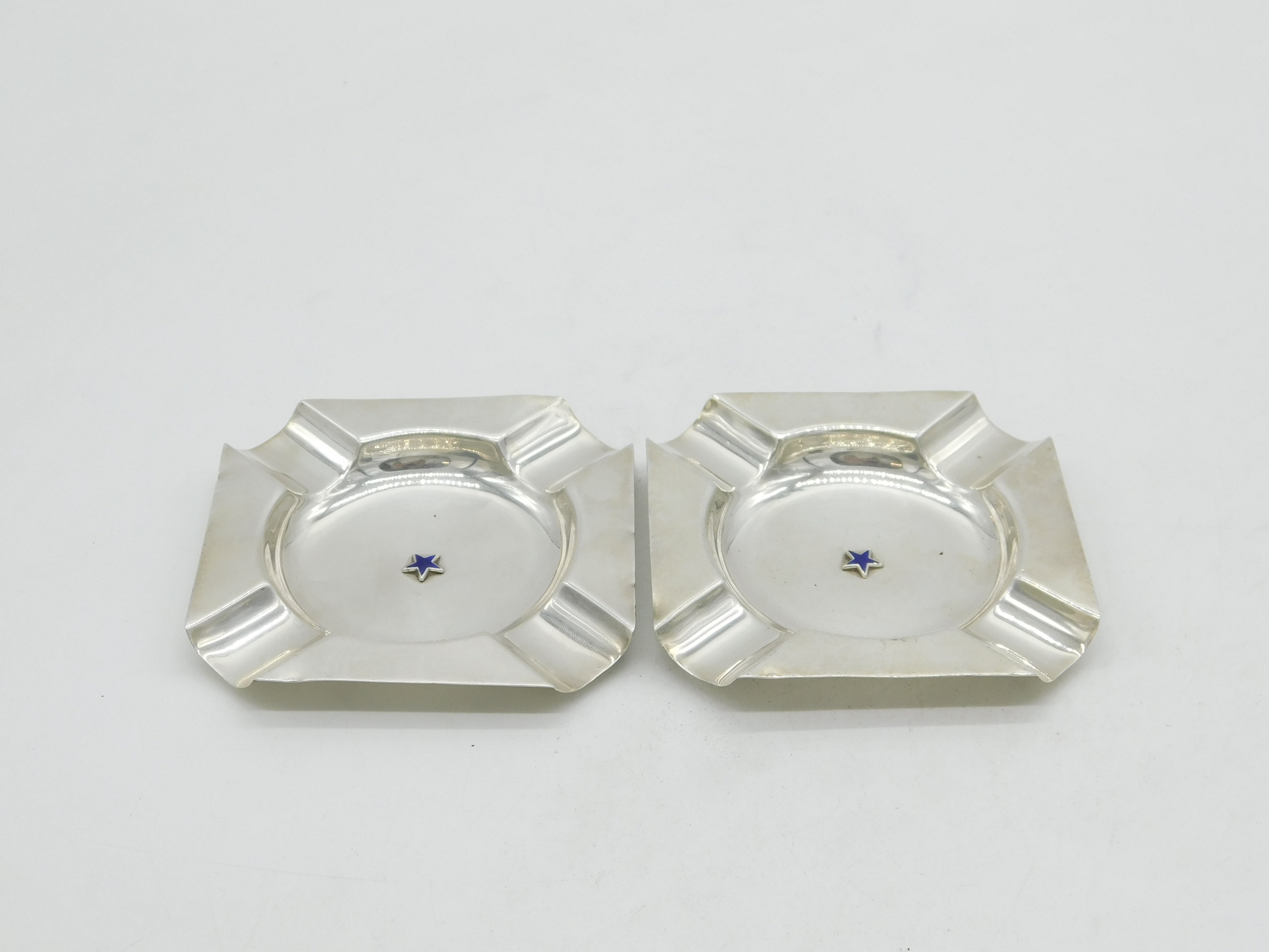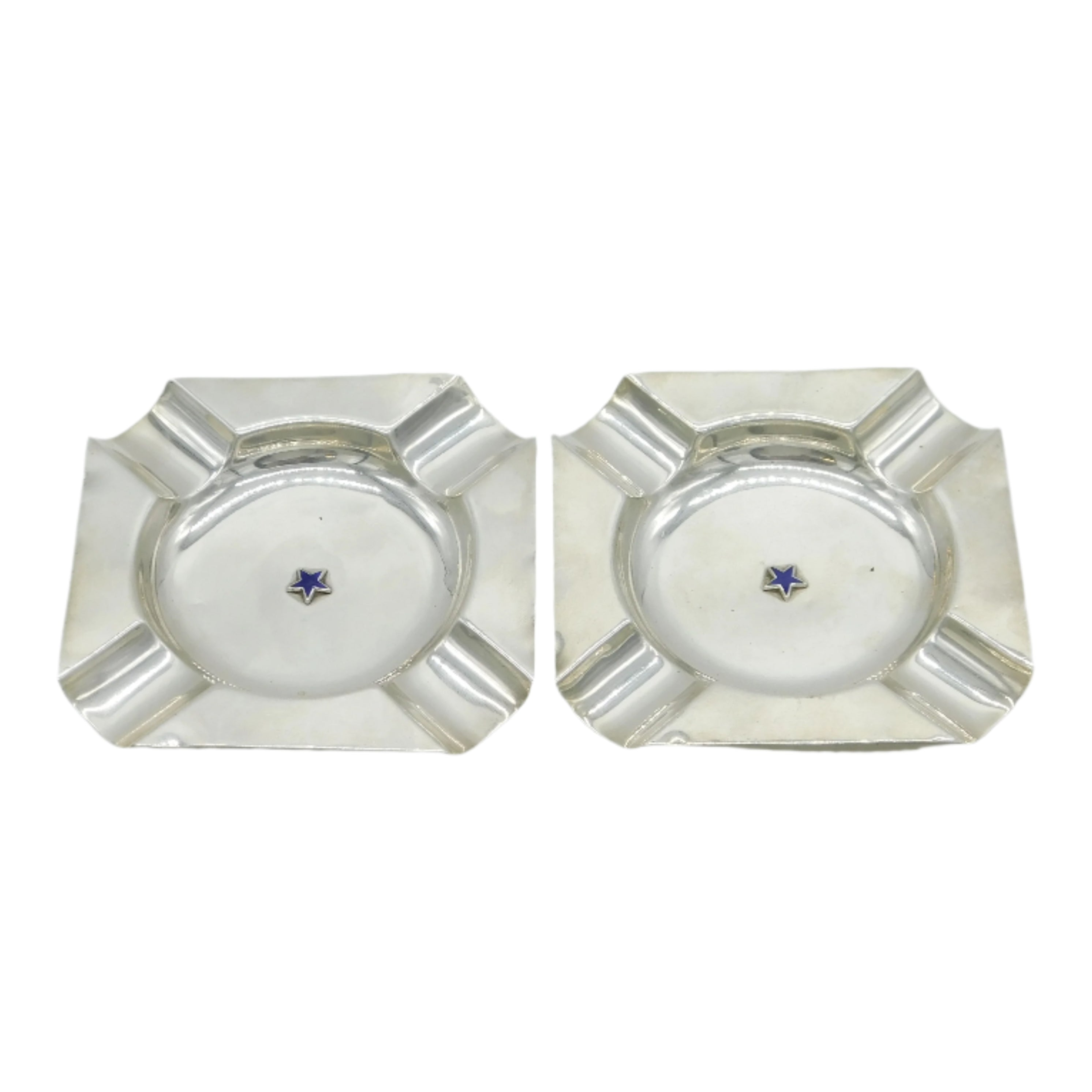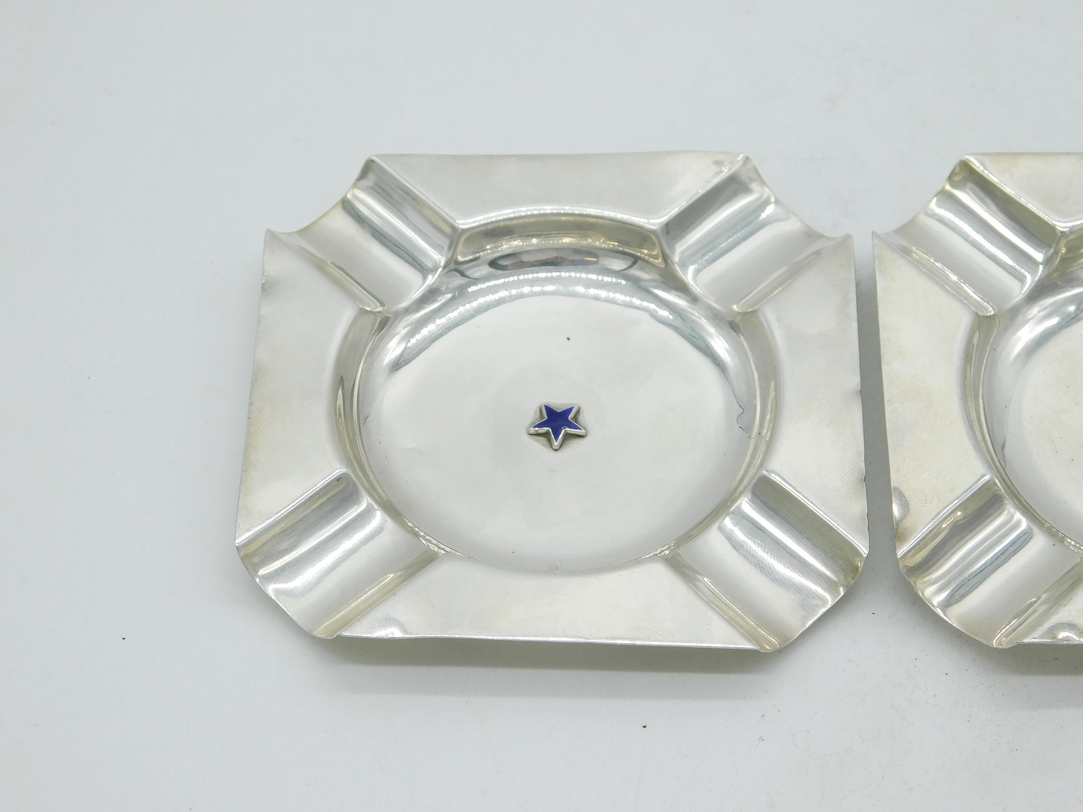 Sterling Silver & Enamel Blue Star Line Pair of Ashtrays Antique 1931 Birmingham