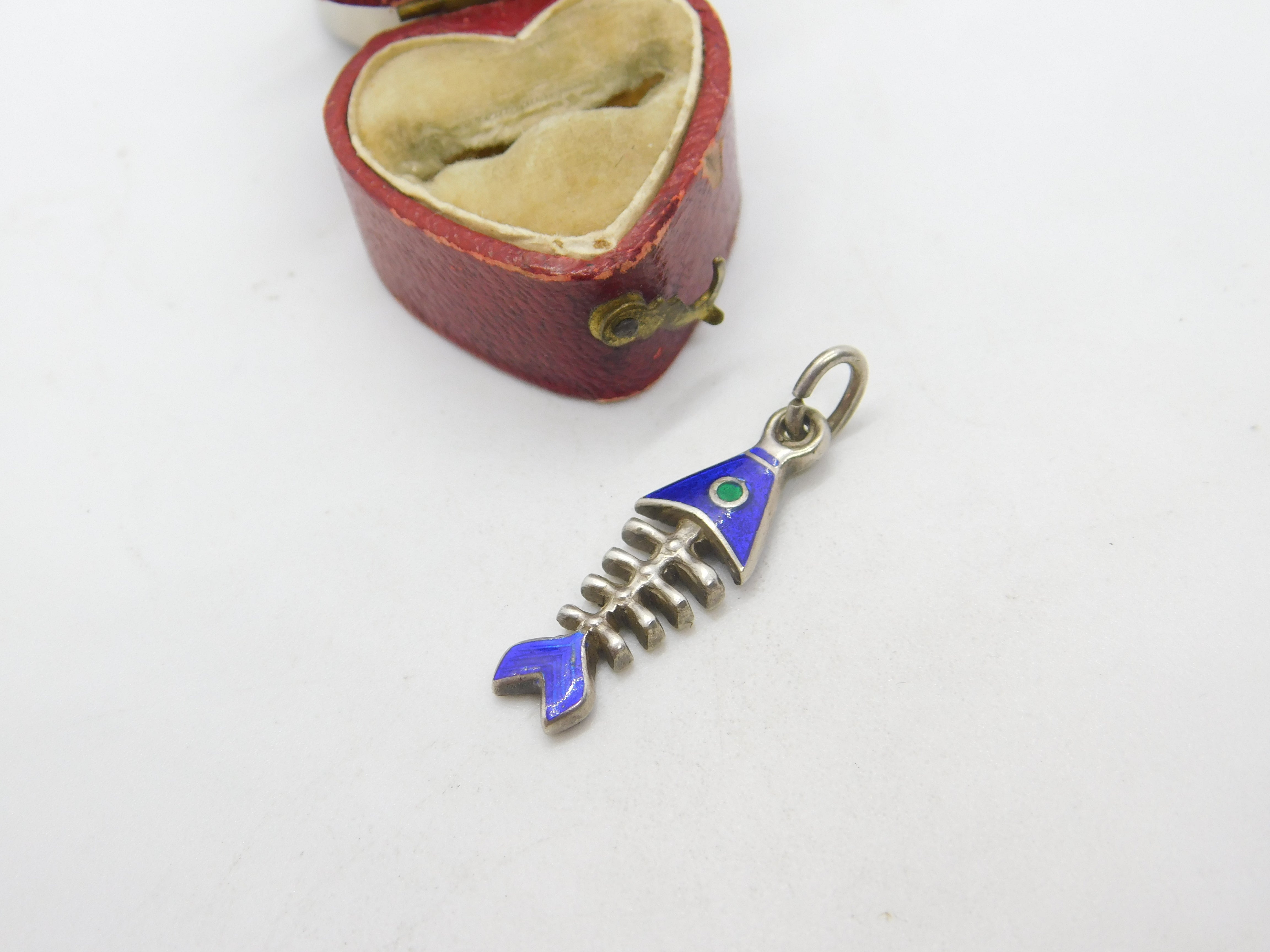 Details: A fantastic and wonderfully designed vintage sterling silver & colourful enamel fish skeleton pendant c1960. This is a wonderful item that would make a perfect gift or addition to any collection. The BOX pictured is for PRESENTATION ONLY and is NOT included in the listings but used to frame the pictures unless specifically stated otherwise.