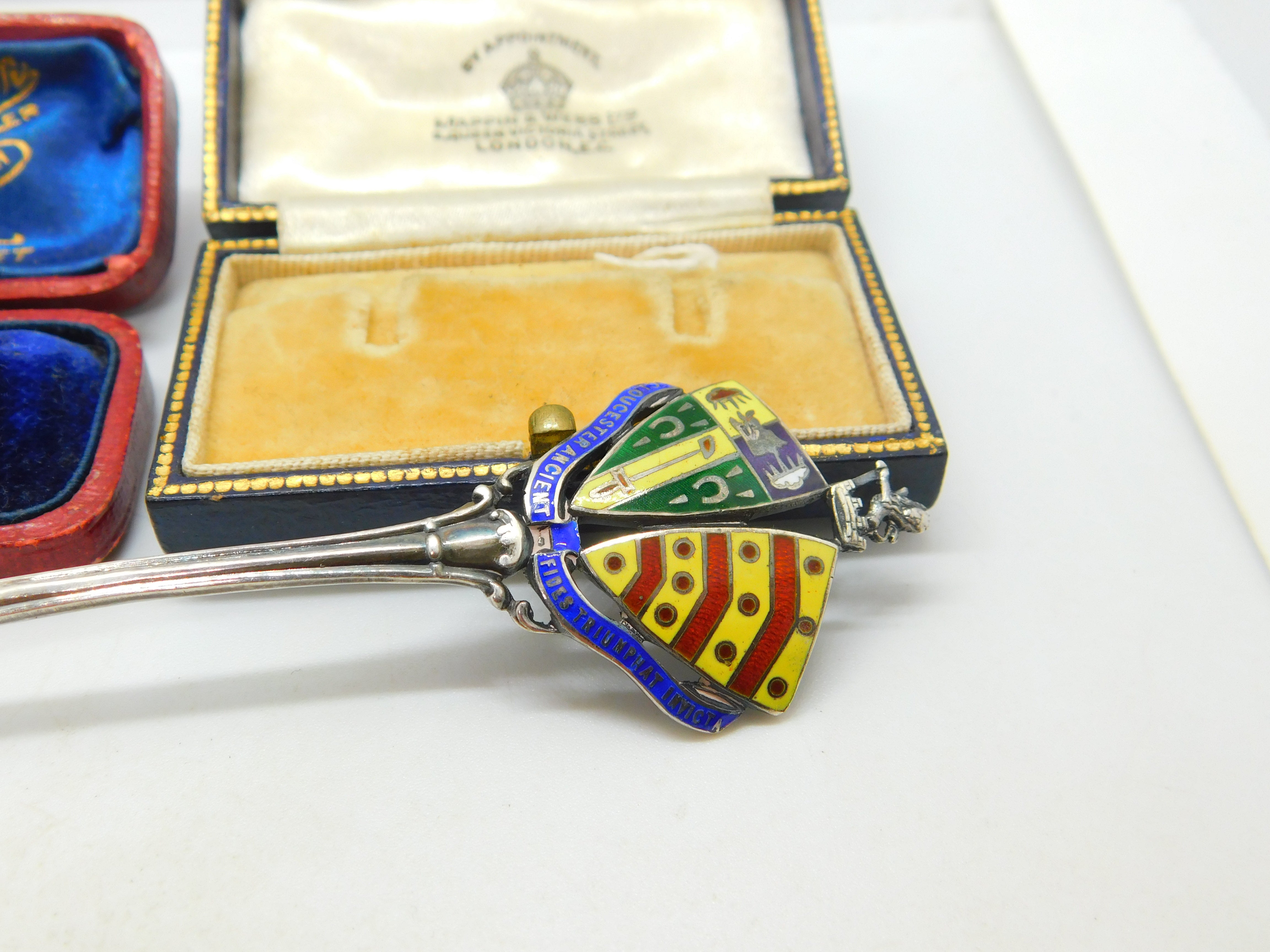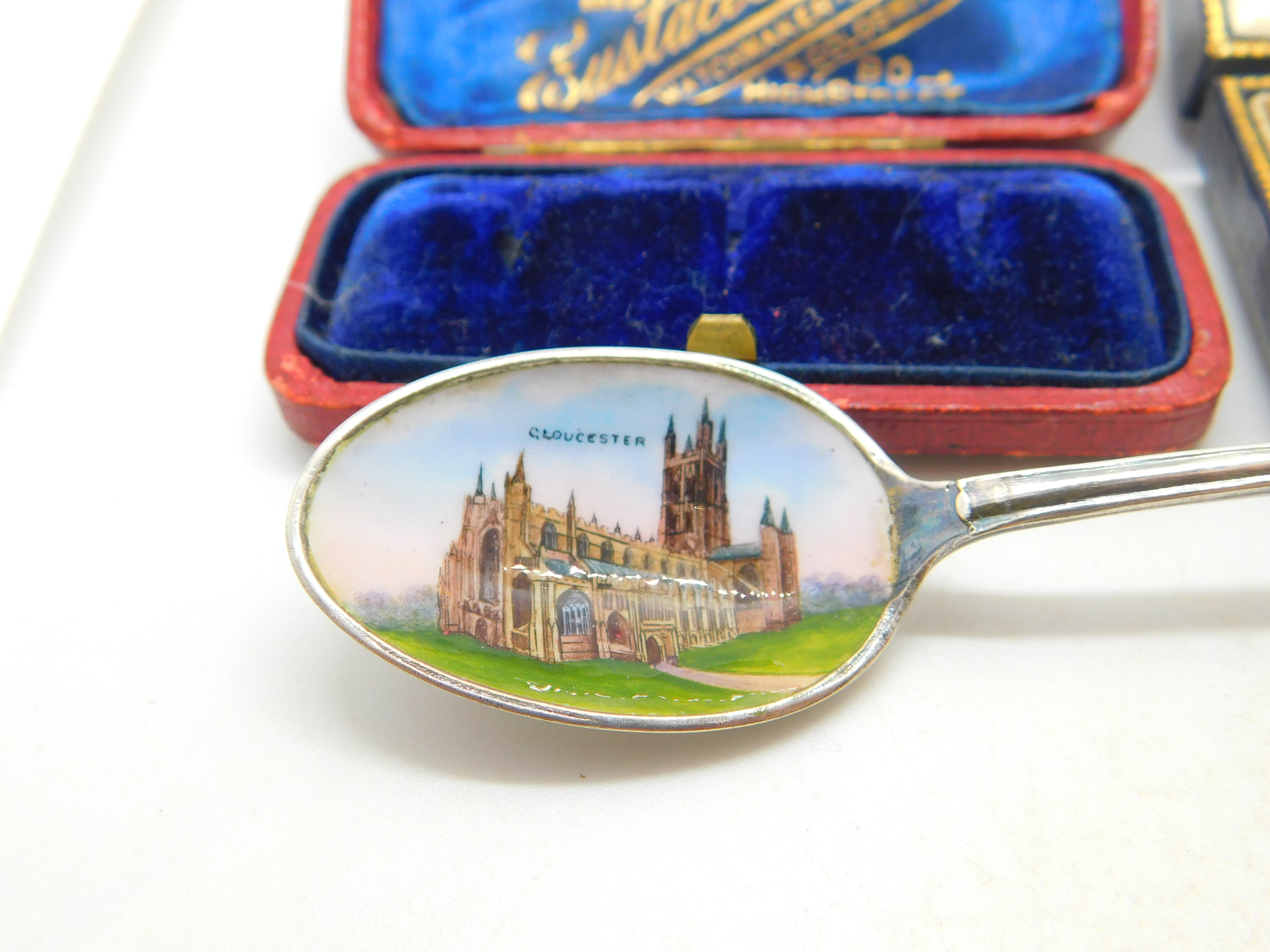 Sterling Silver & Enamel Gloucester Souvenir Spoon Antique 1912 Birmingham