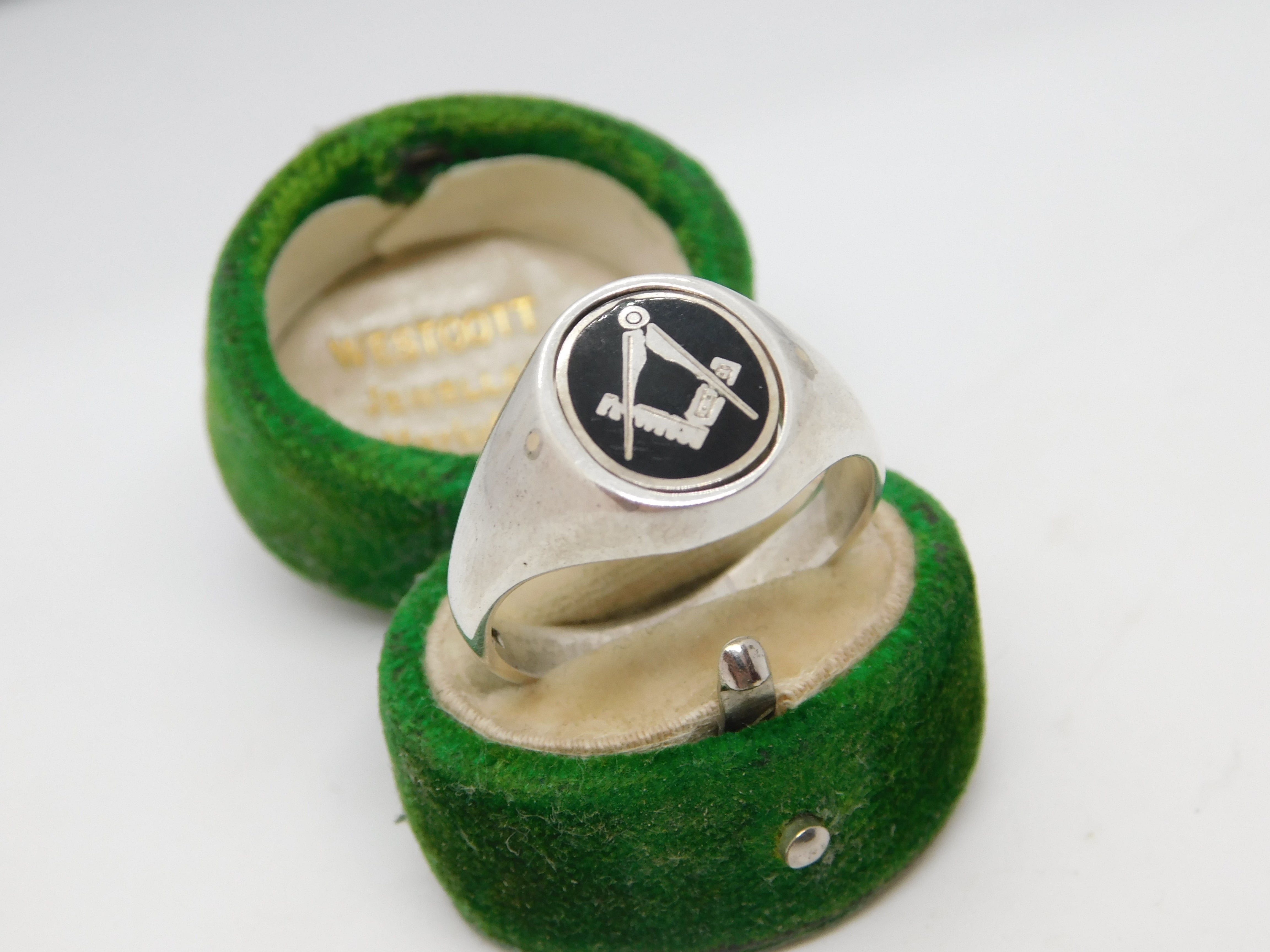 Details: A fantastic and wonderfully designed vintage sterling silver & black enamel masonic swivel spinner signet ring hallmarked Birmingham 1987 to the interior band. This is a wonderful item that would make a perfect gift or addition to any collection. The BOX pictured is for PRESENTATION ONLY and is NOT included in the listings but used to frame the pictures unless specifically stated otherwise.