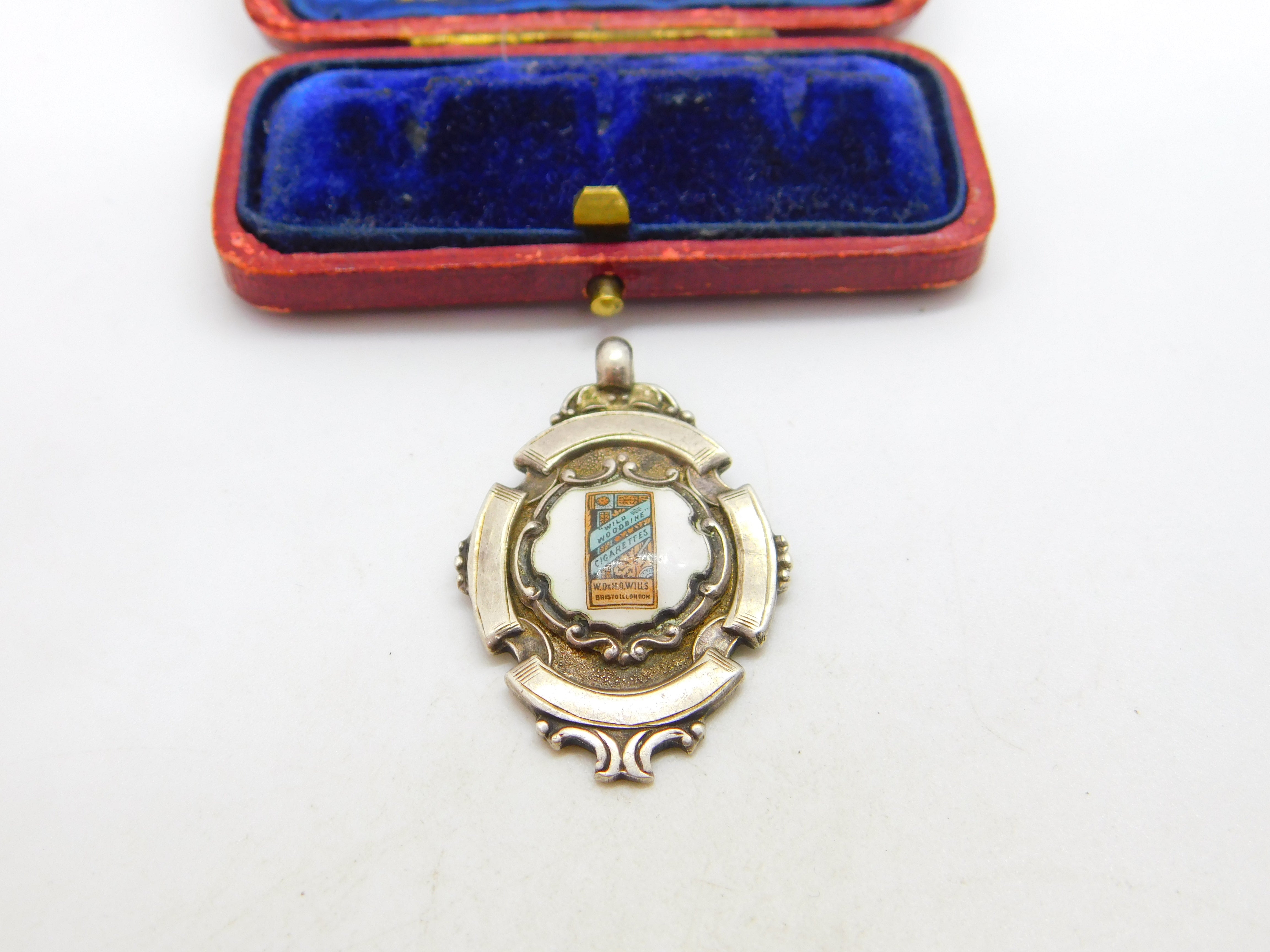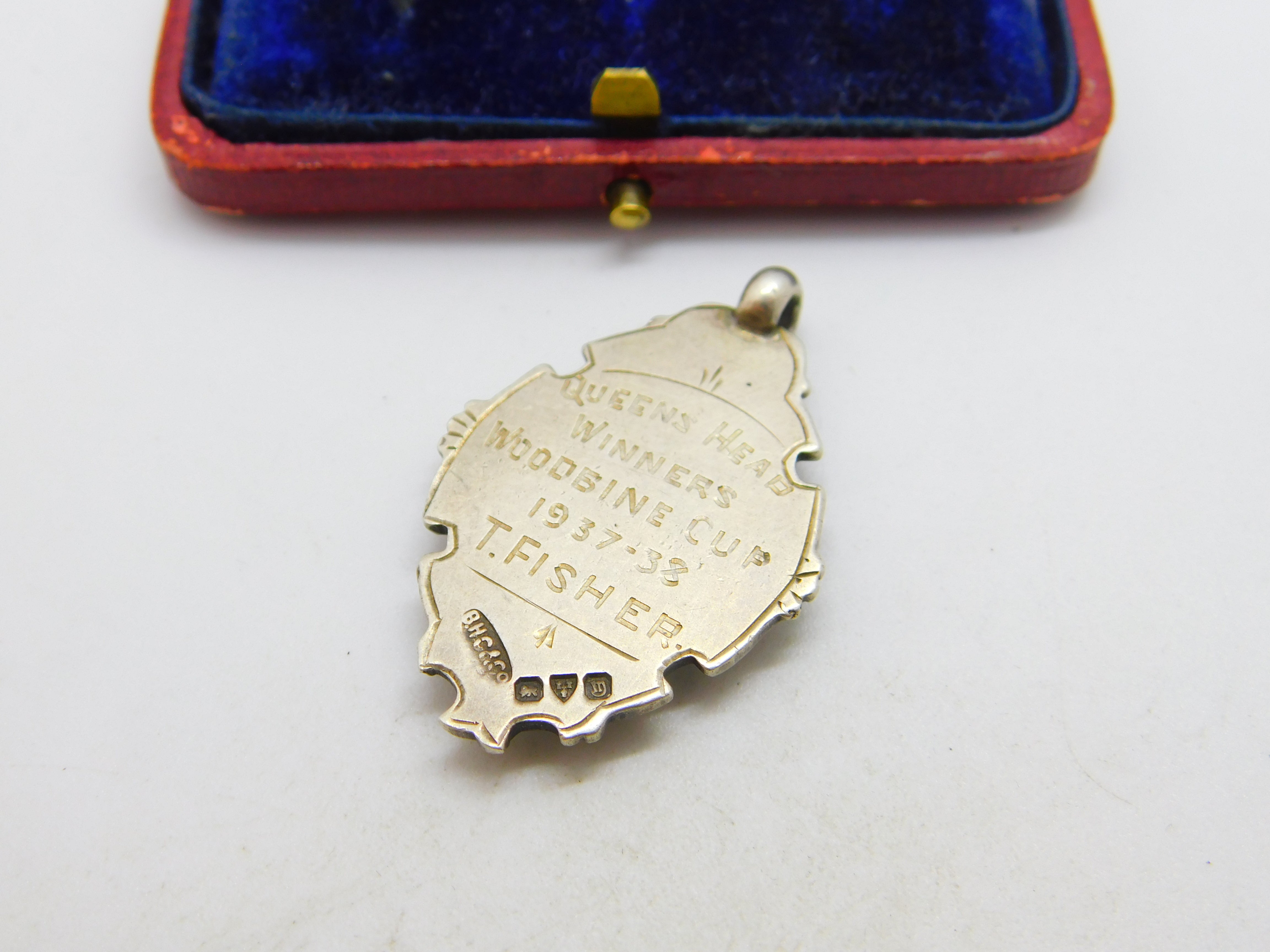 Sterling Silver Enamel Woodbine Cigarette Cup Fob Medal 1937 Chester Antique