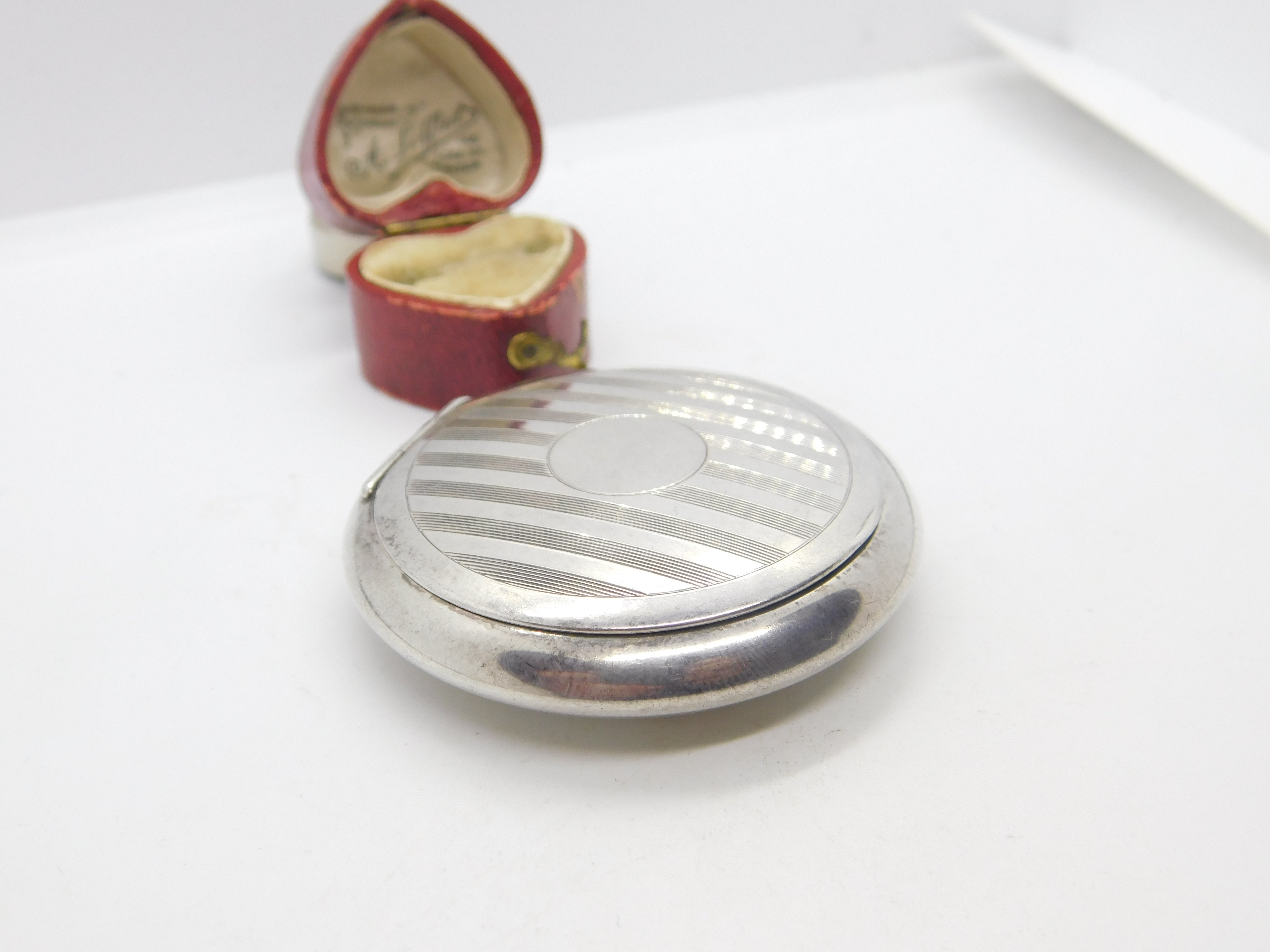 Sterling Silver Engine Turned Makeup Mirror Compact 1926 Birmingham Antique