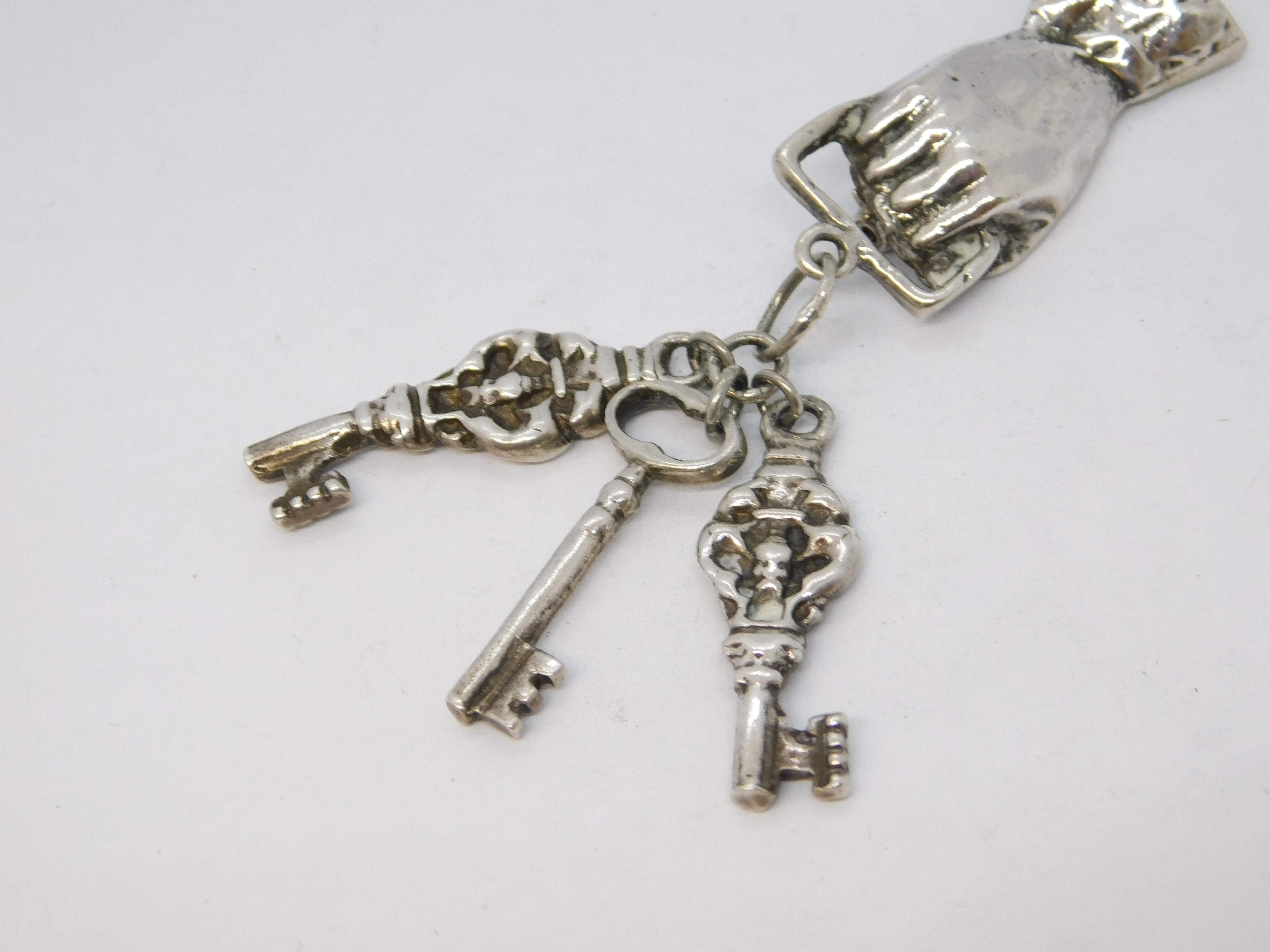 Sterling Silver Figa Hand Keys to the City Brooch Vintage 1957 Birmingham