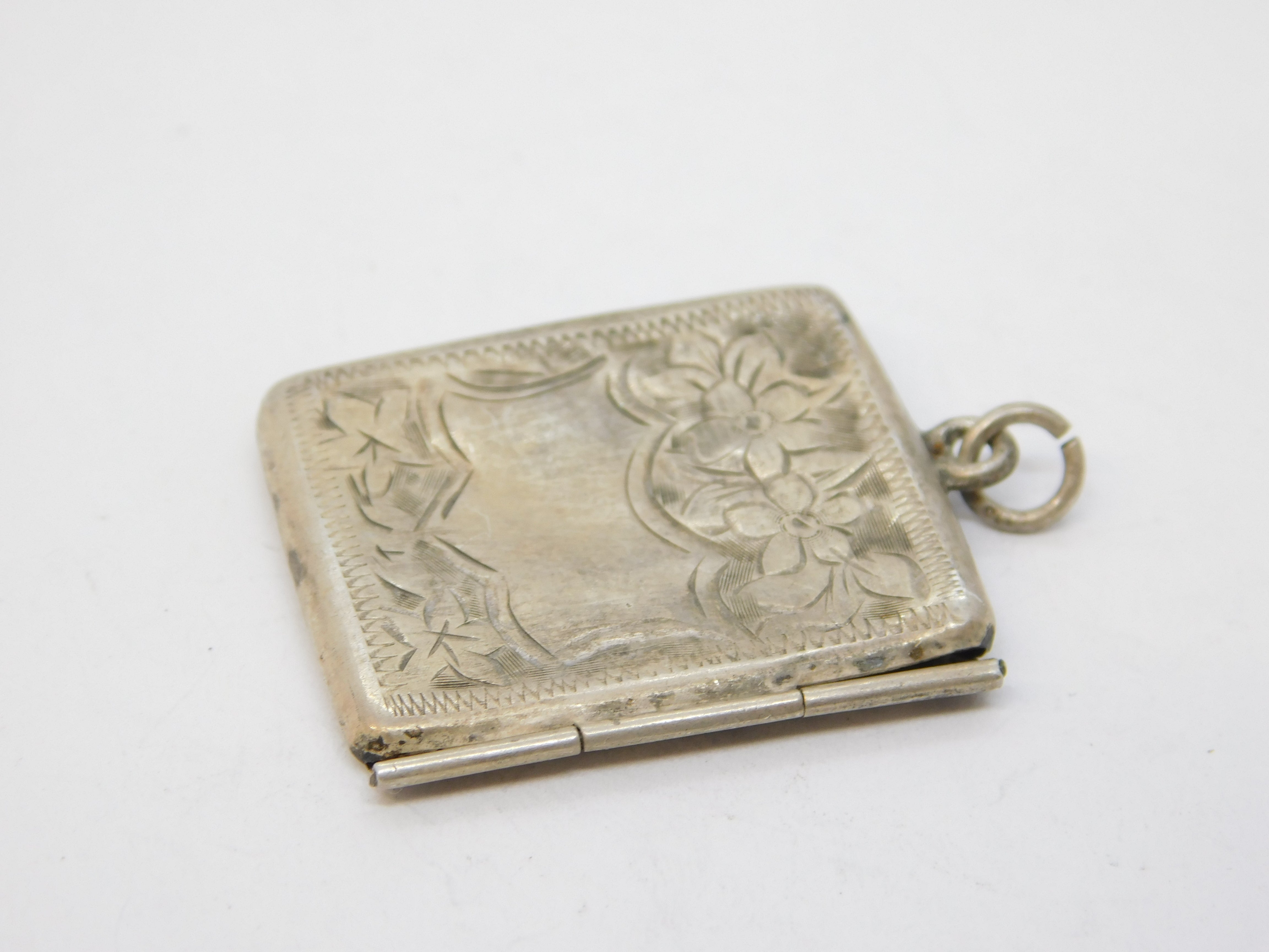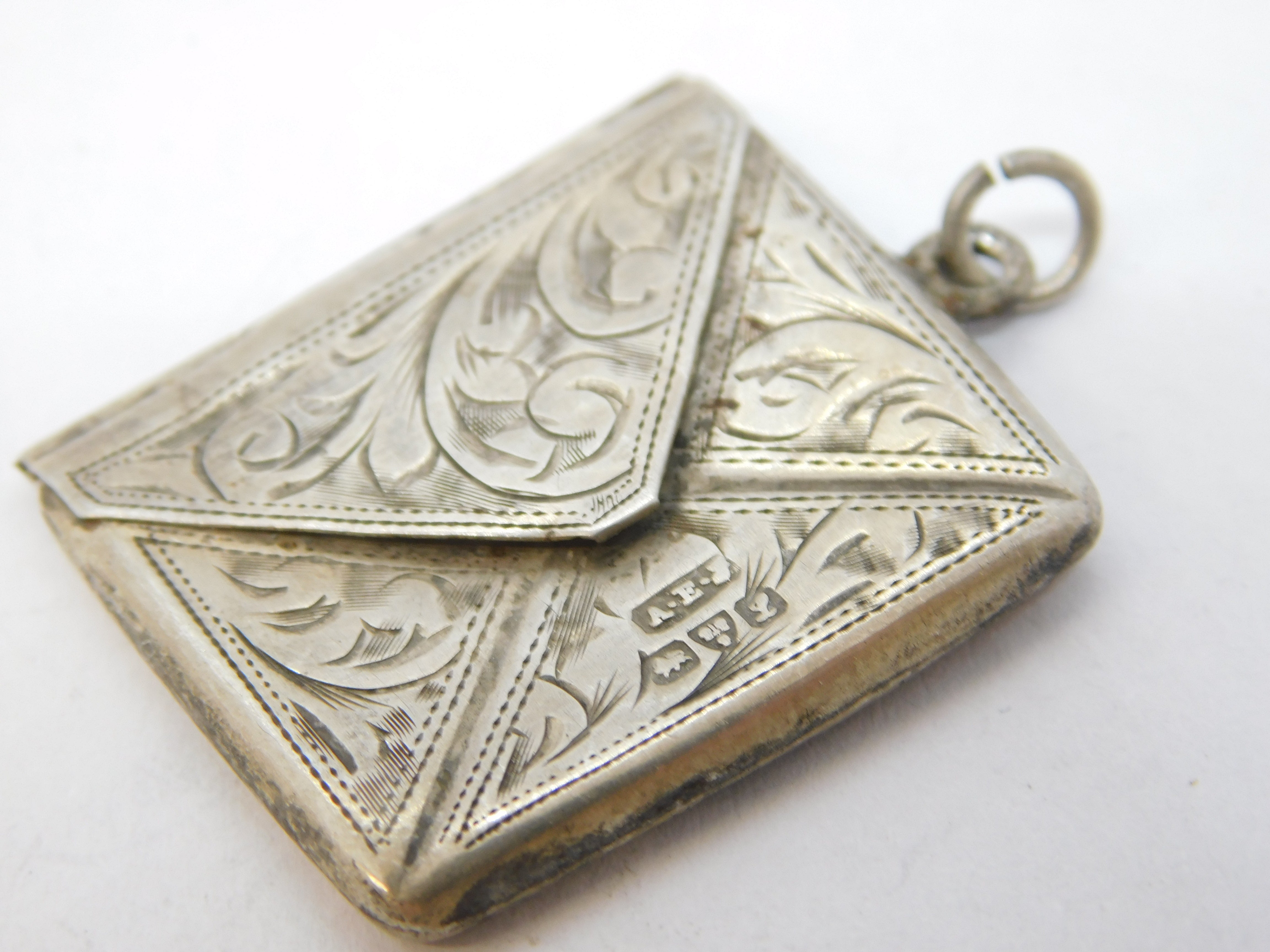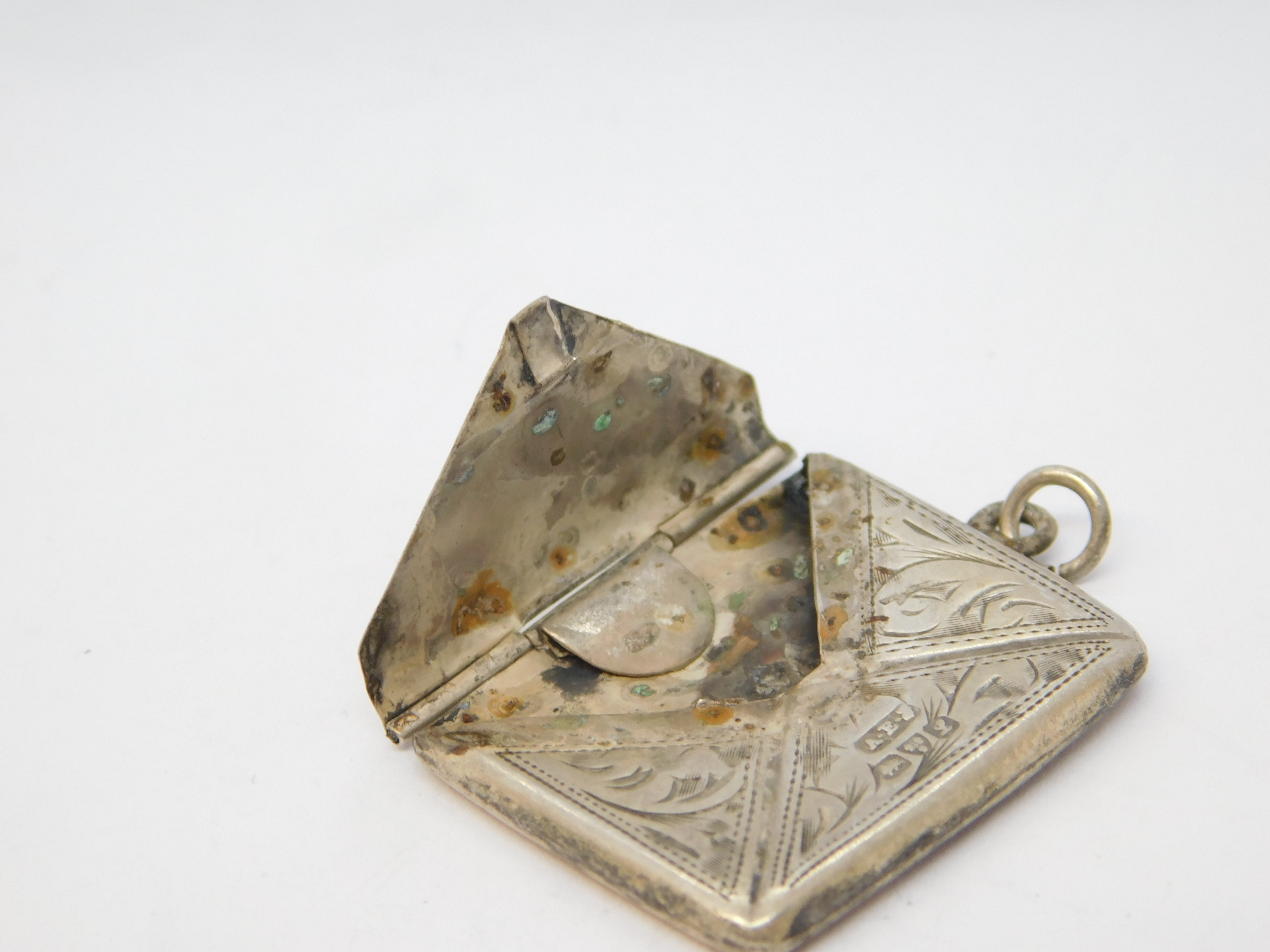 Sterling Silver Floral Pattern Envelope Stamp Fob Pendant Antique 1911 Chester