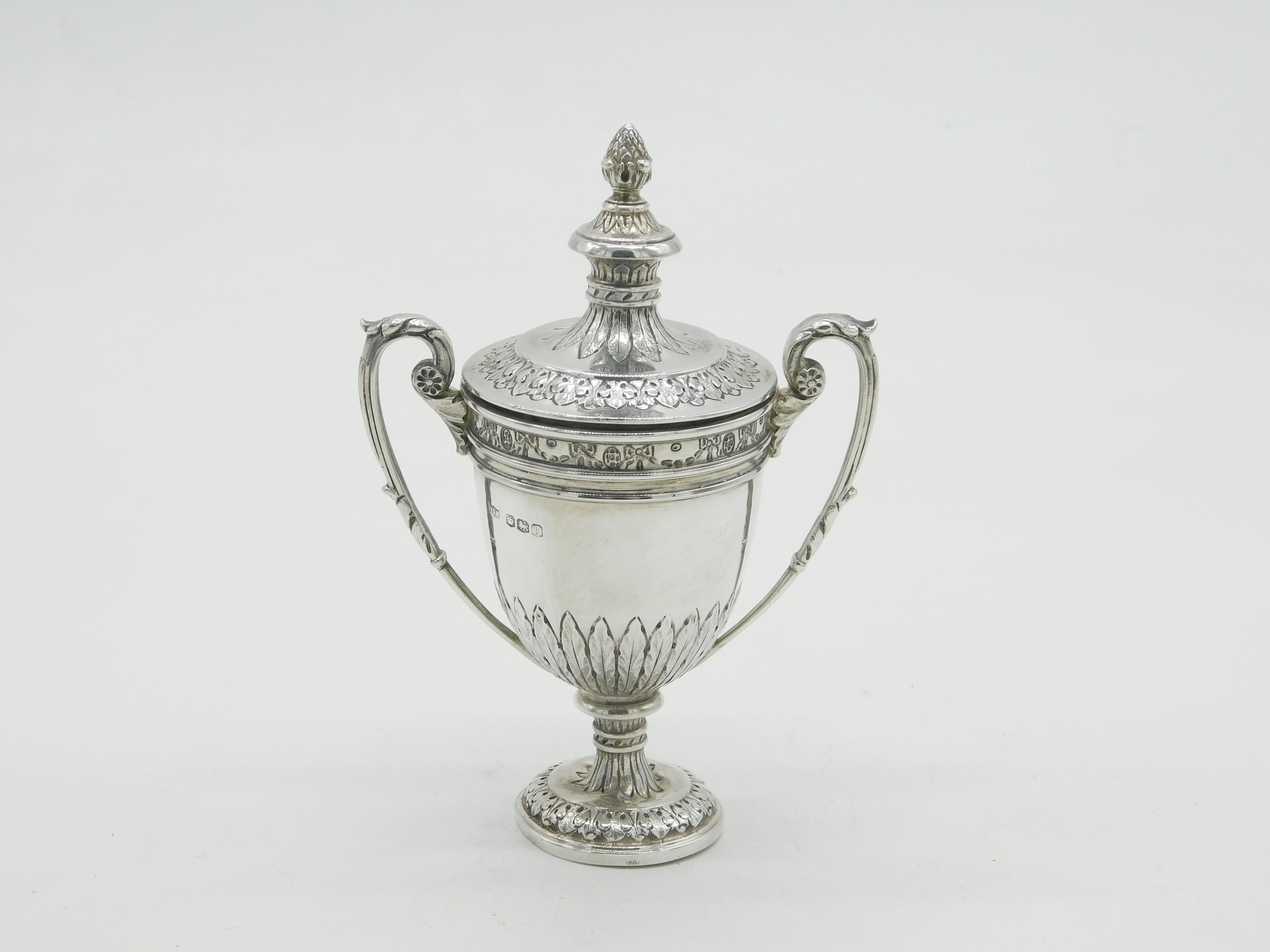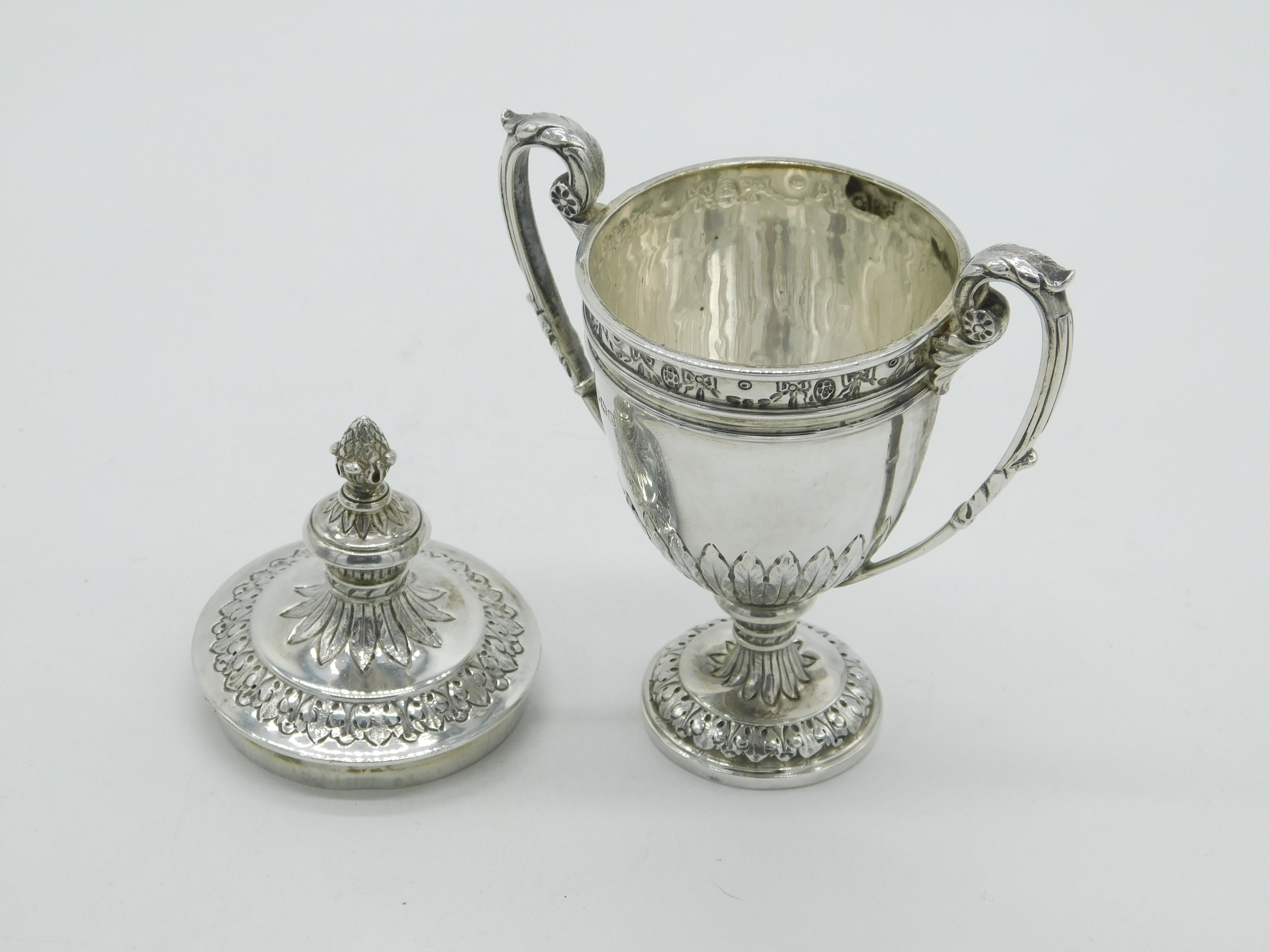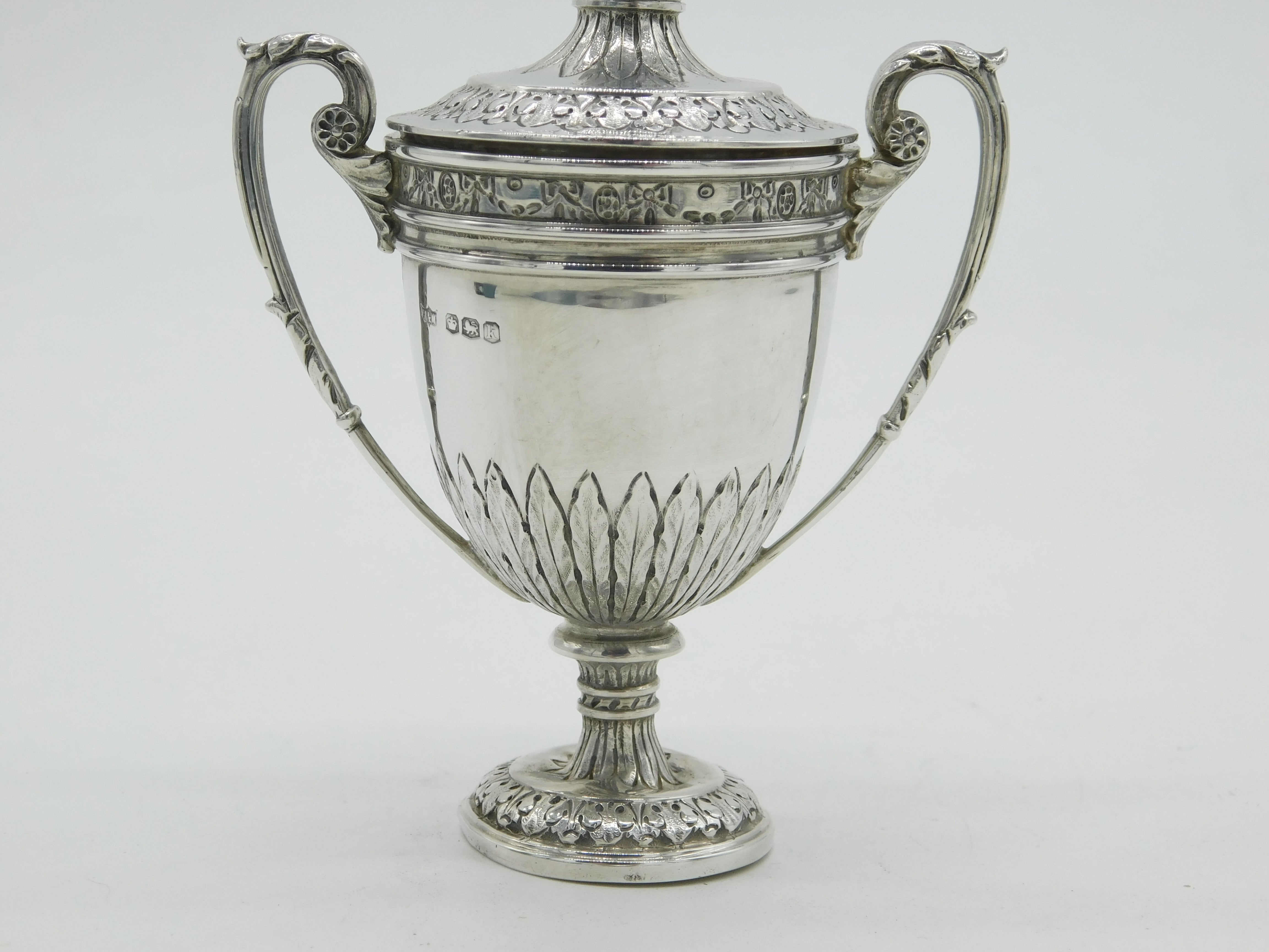 Sterling Silver Floral Pattern Small Lidded Trophy Cup Antique 1925 Sheffield