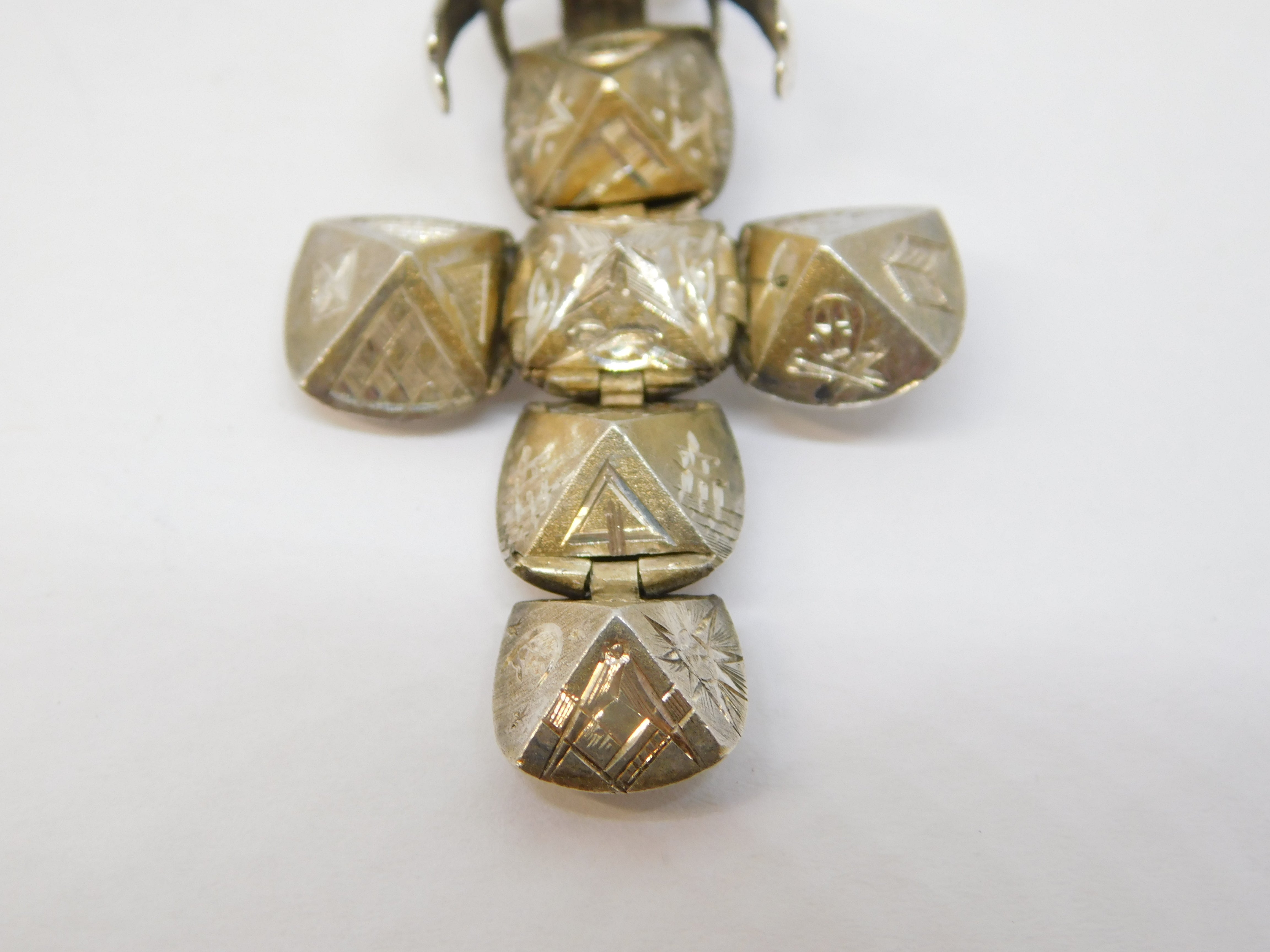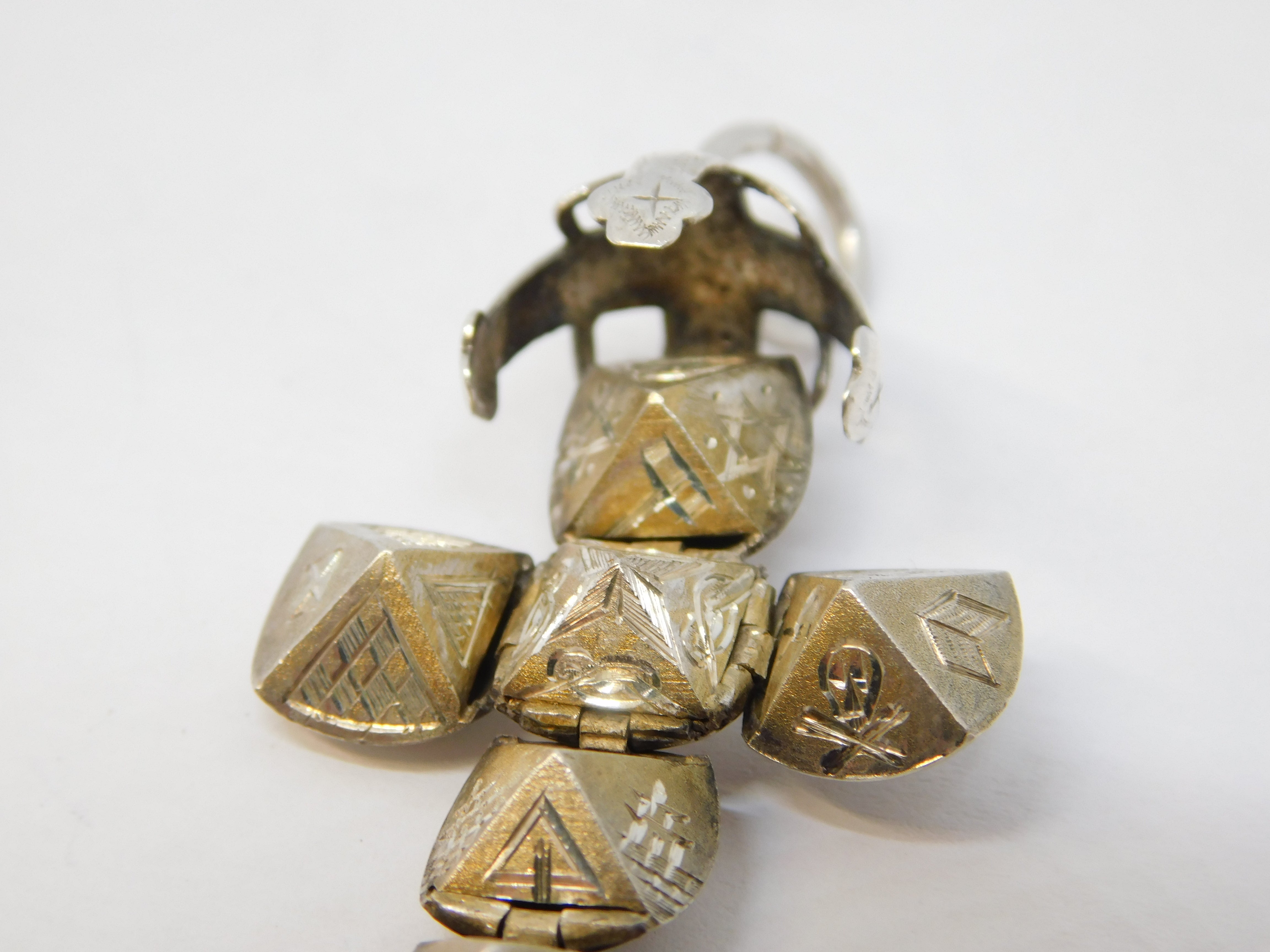 Sterling Silver Folding Masonic Ball Cross Fob Pendant Antique c1920 Art Deco