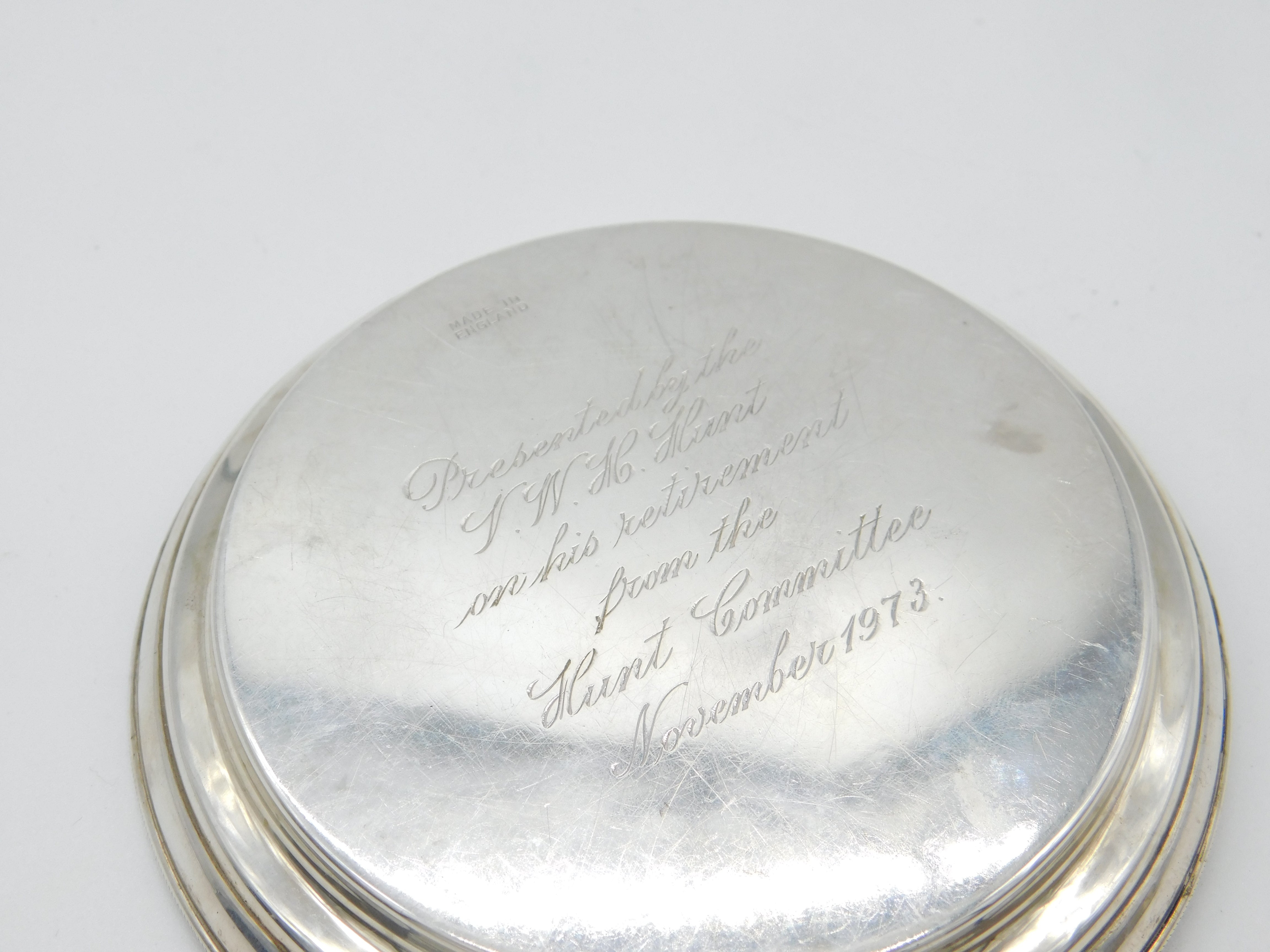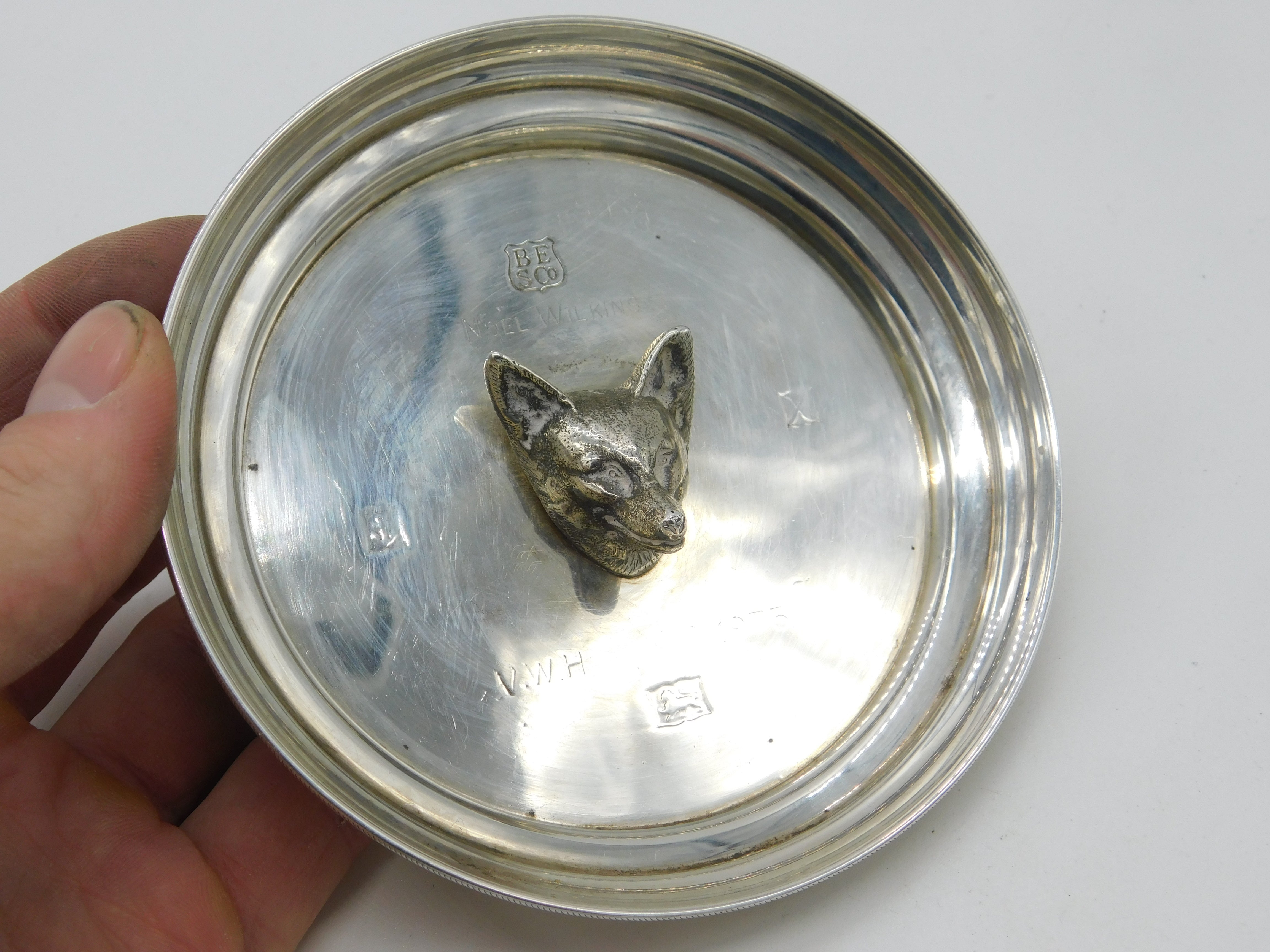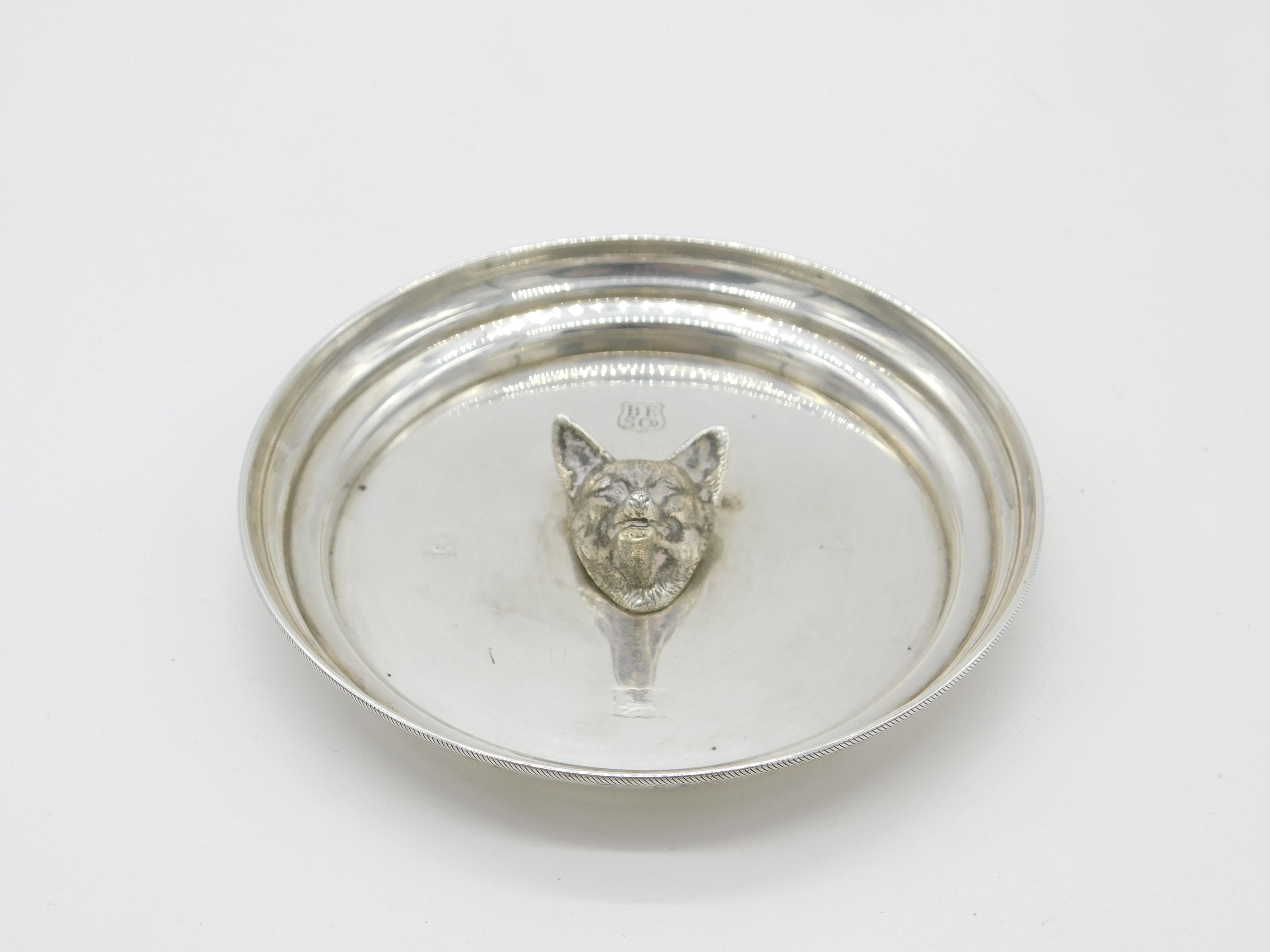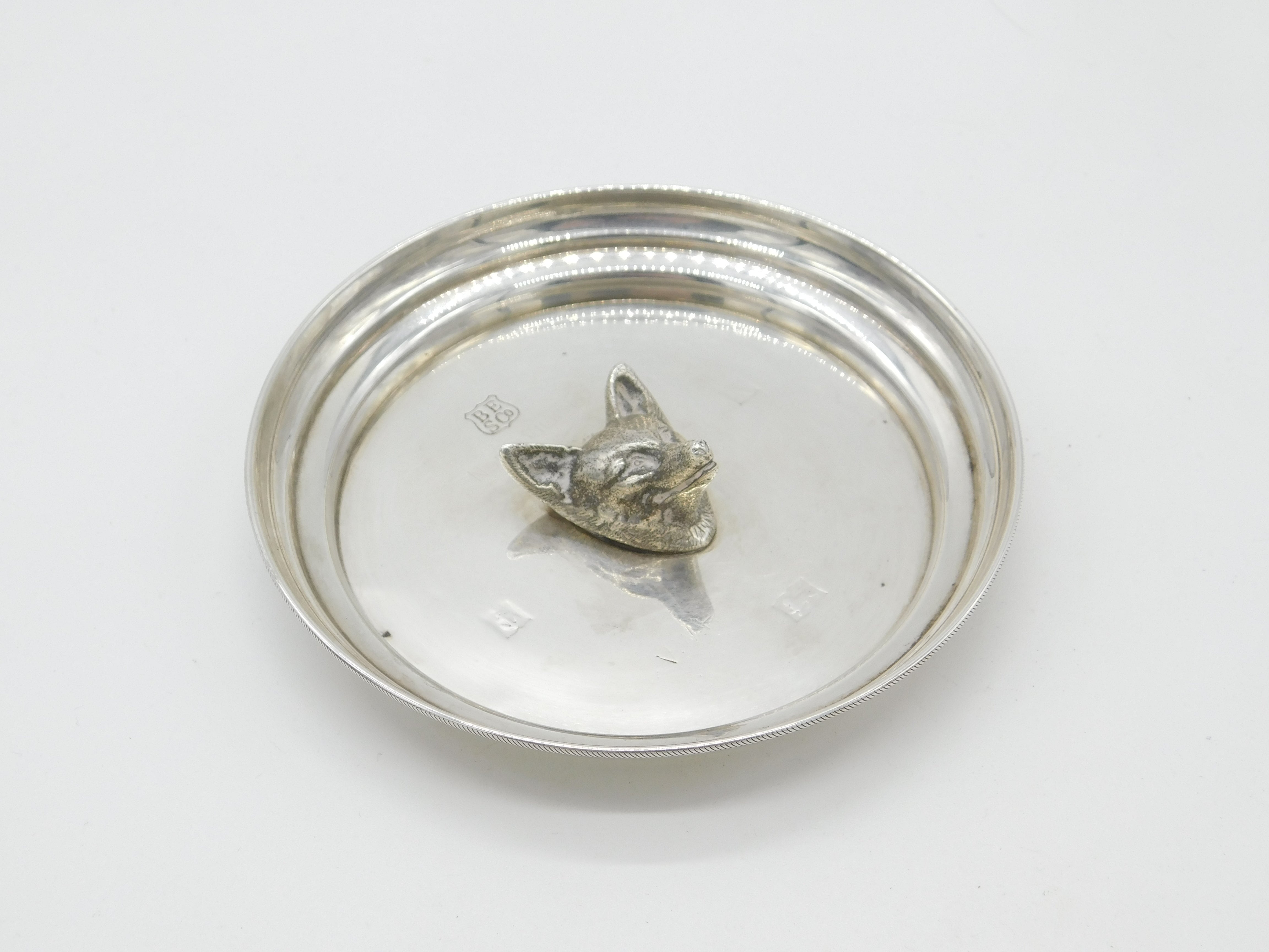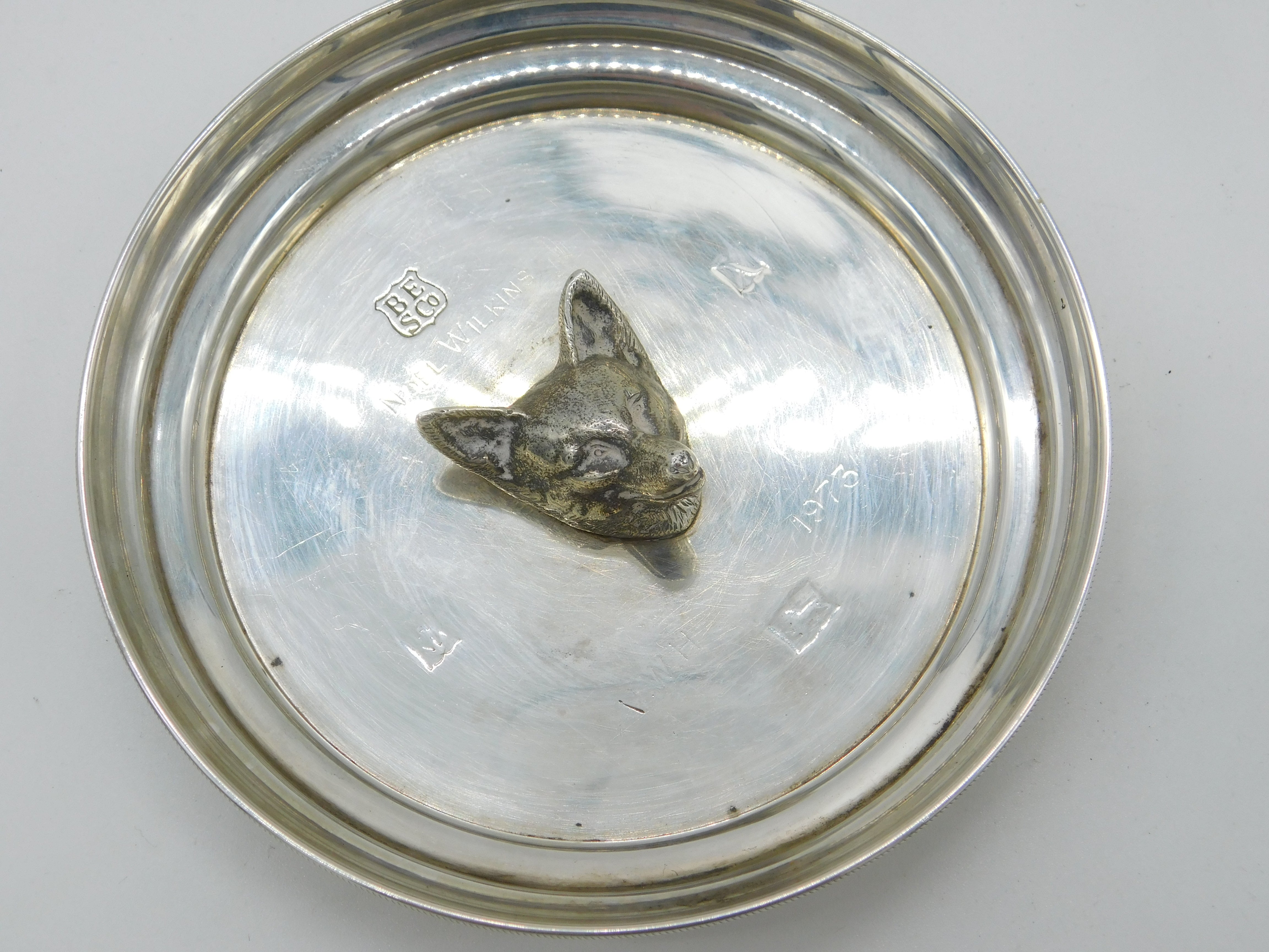 Sterling SIlver Fox Mask Ashtray VWH Hunt Service Engraving Vintage 1973